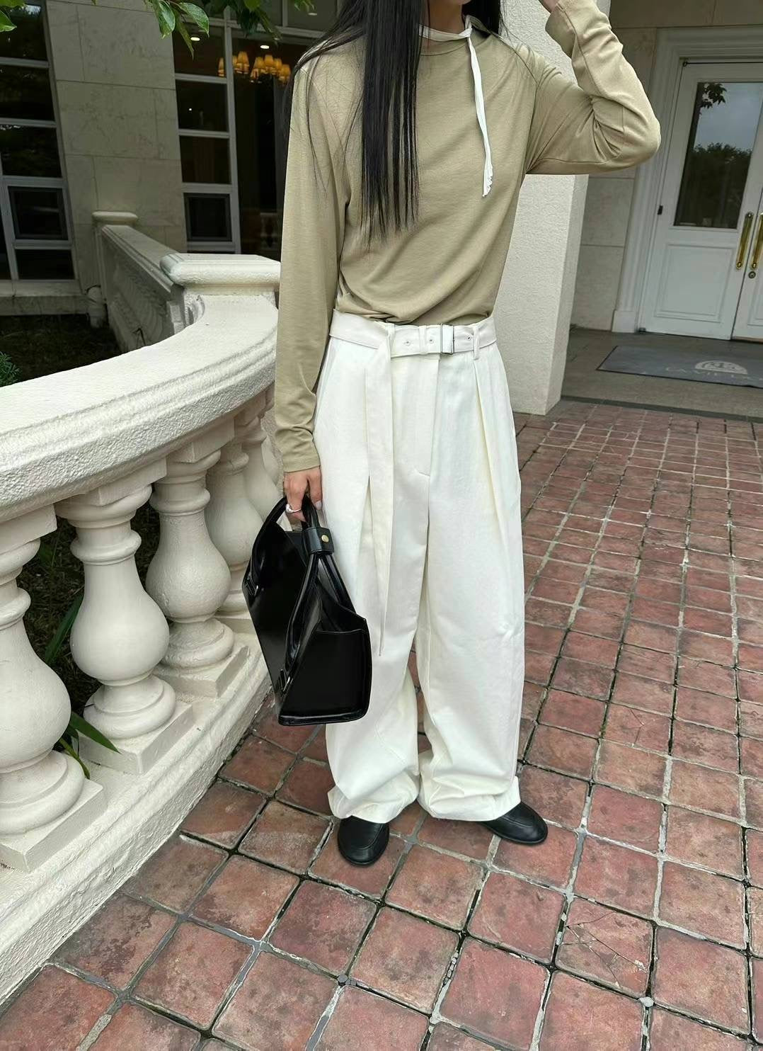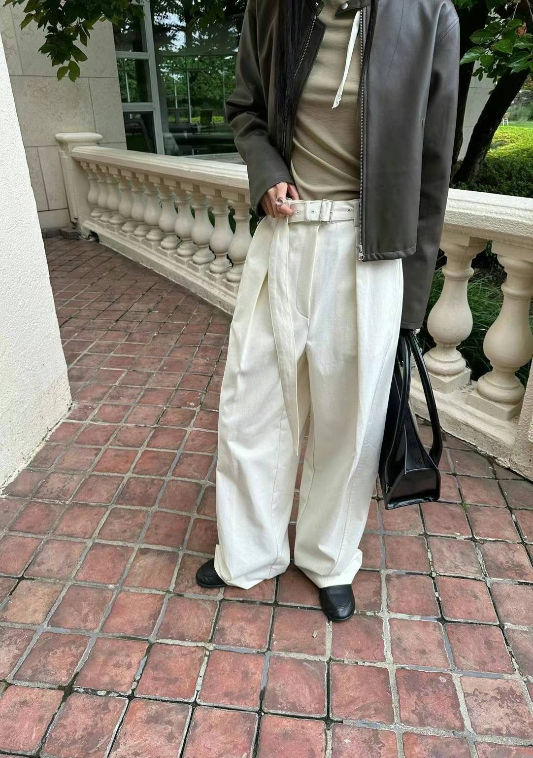 KOREAN COLLECTION 2410 腰带阔腿休闲长裤