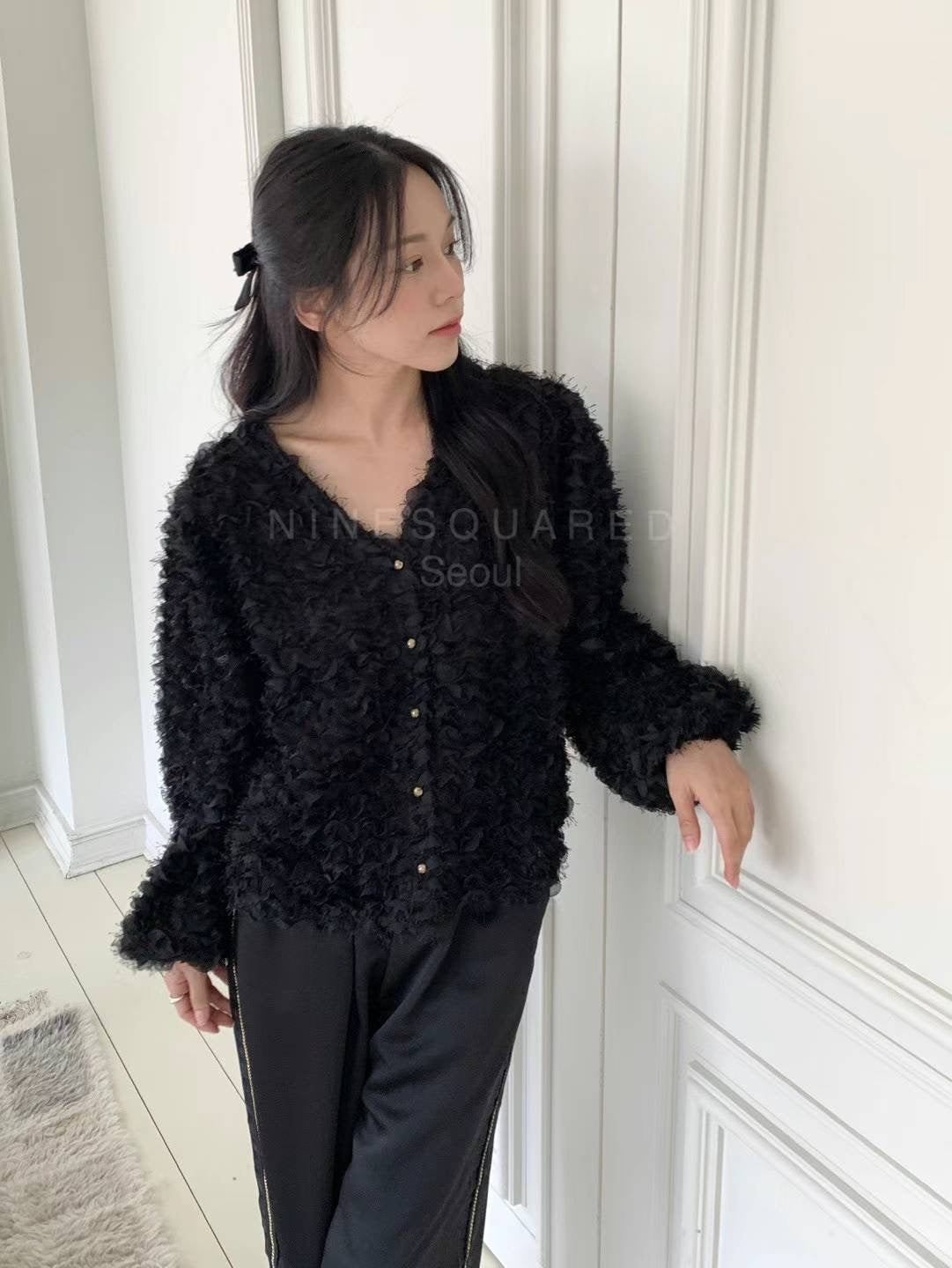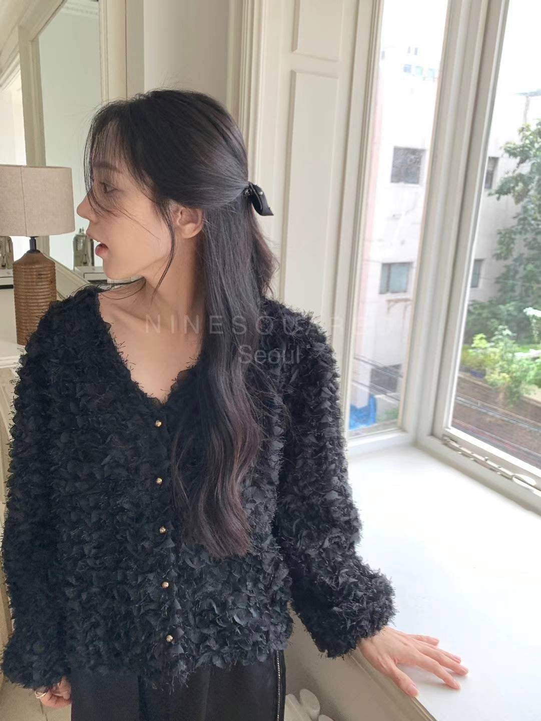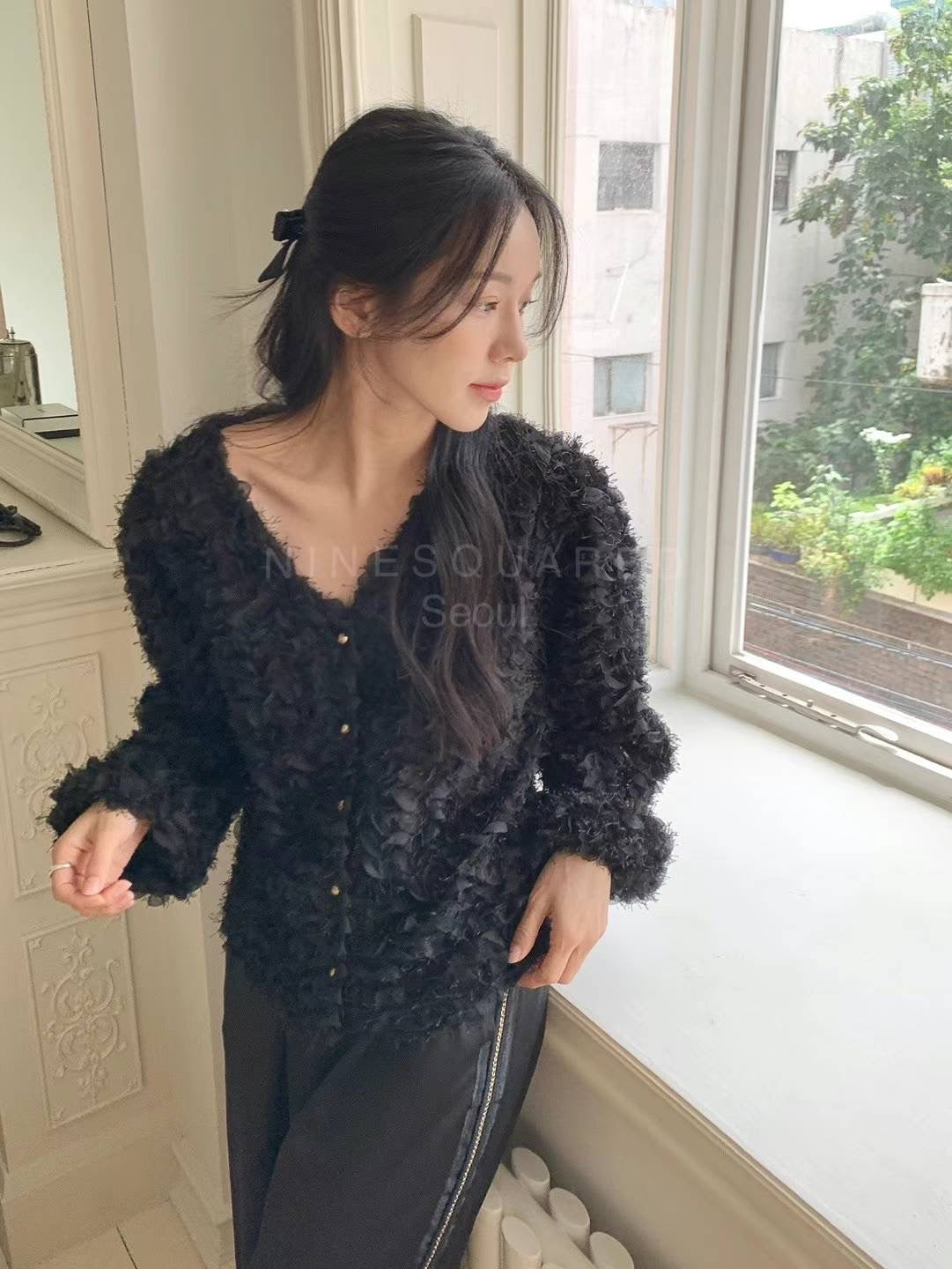 KOREAN COLLECTION 2410 V领气质系扣长袖上衣 黑
