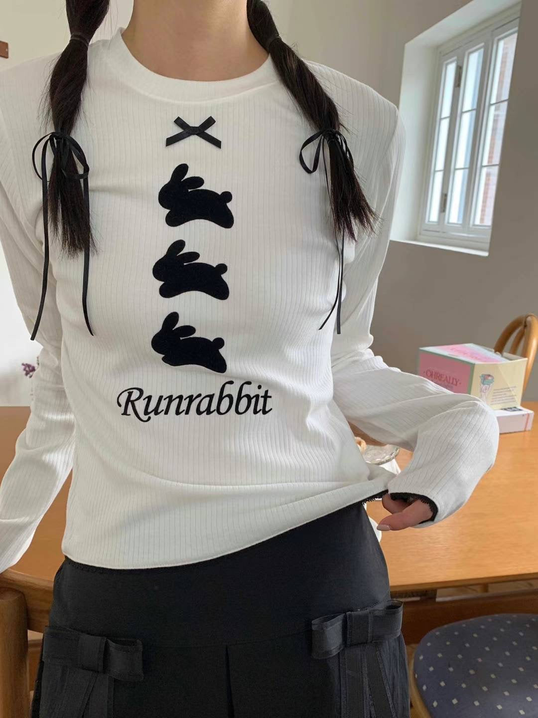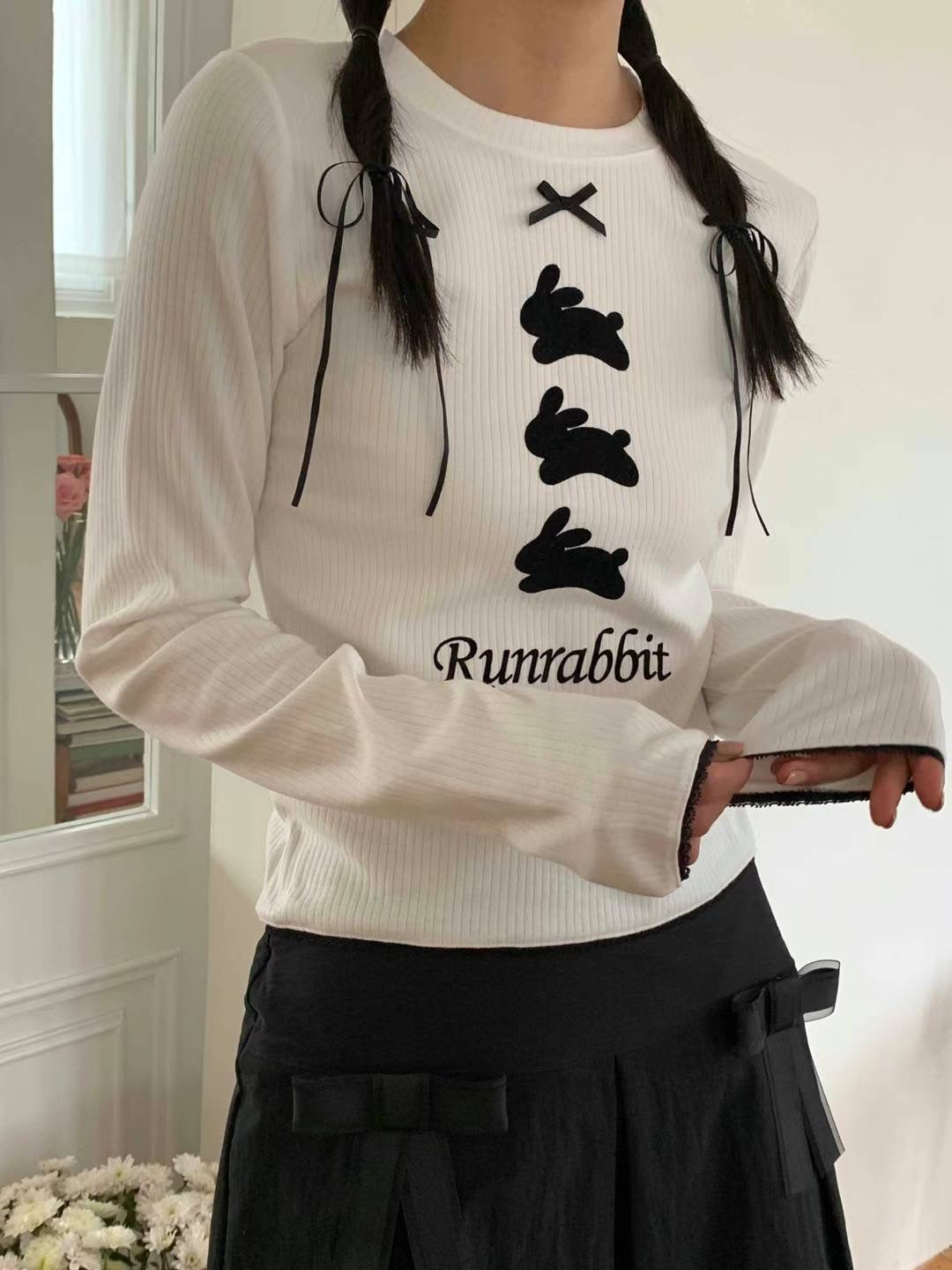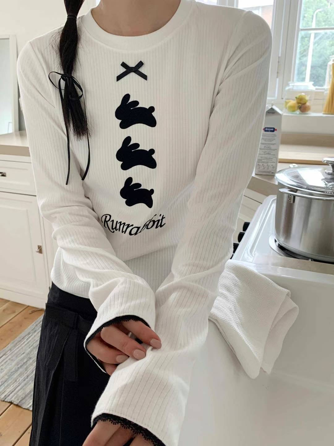 KOREAN COLLECTION 2412 蝴蝶结兔子图案圆领上衣