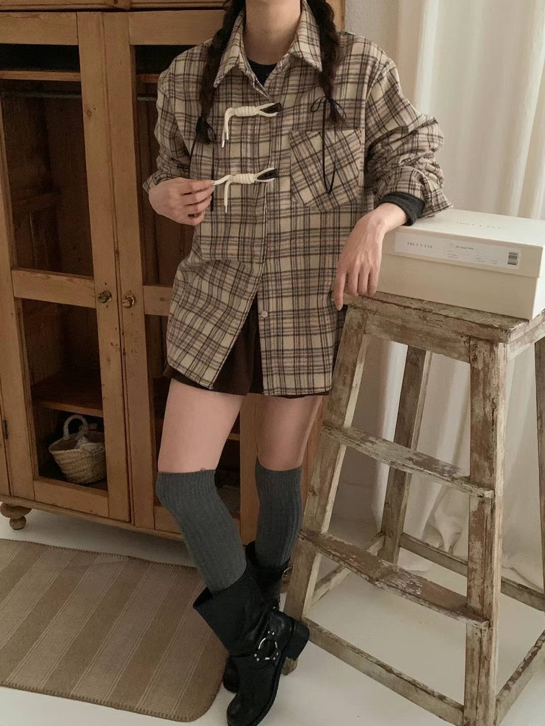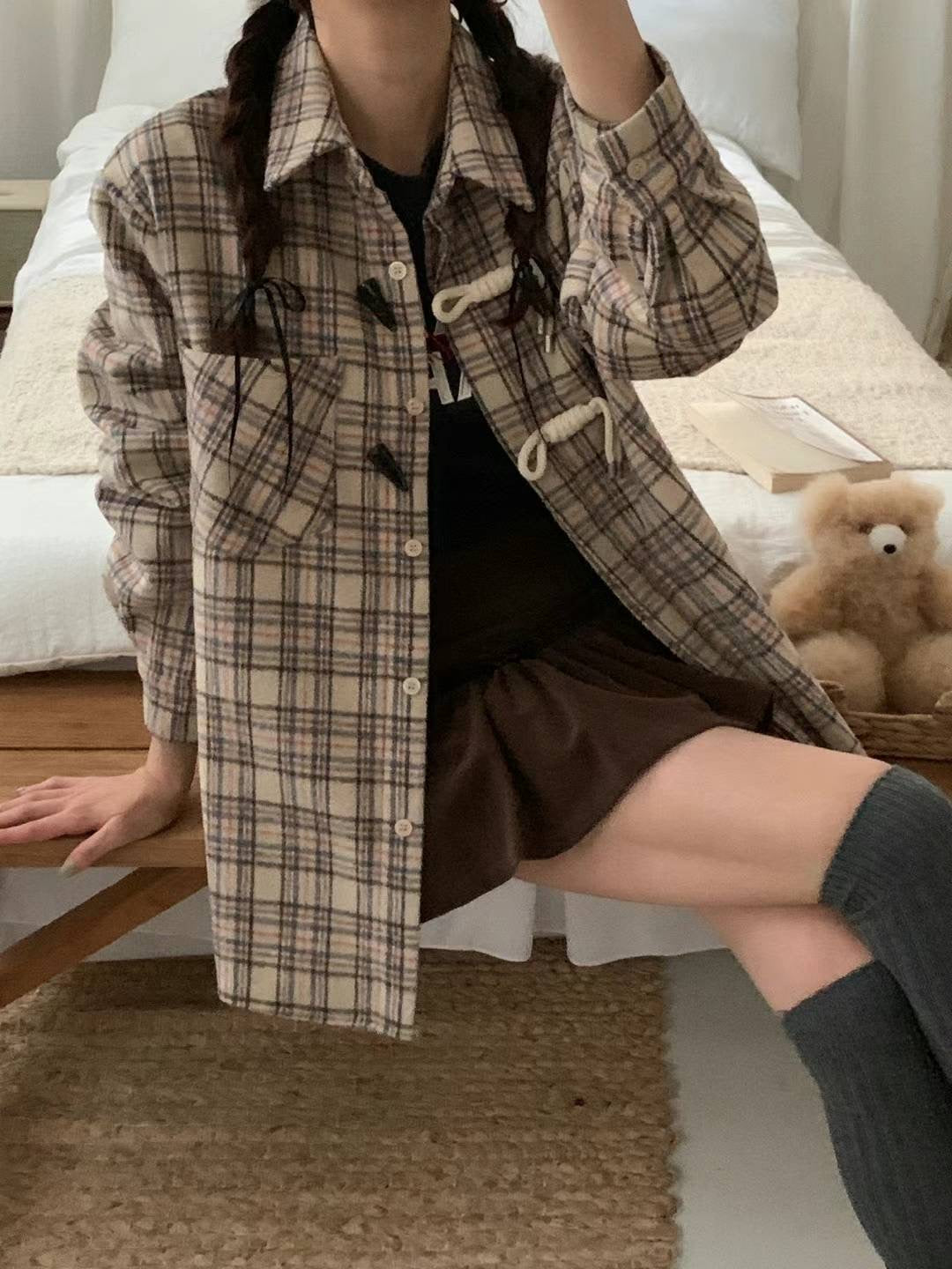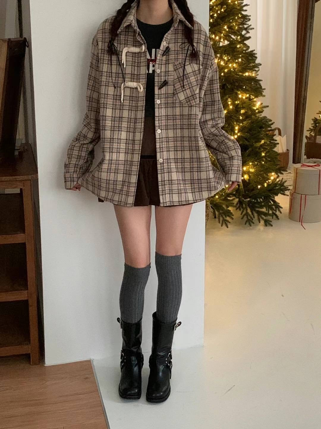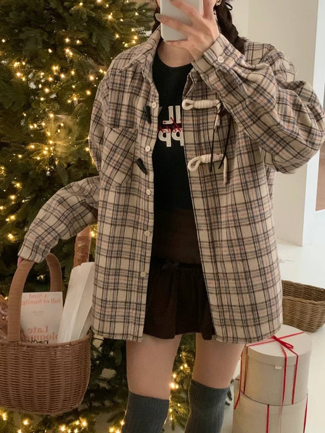 KOREAN COLLECTION 2502 格纹牛角扣衬衫