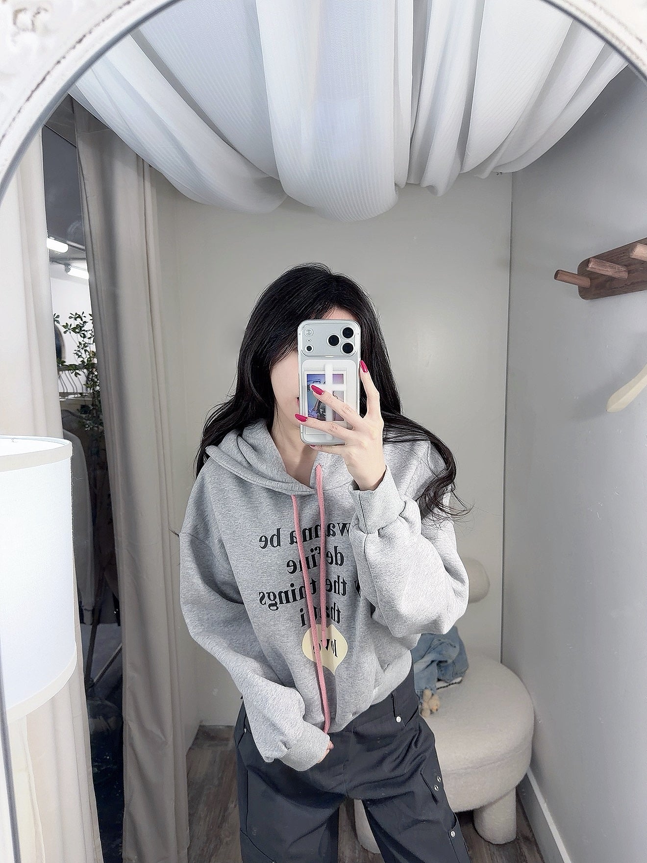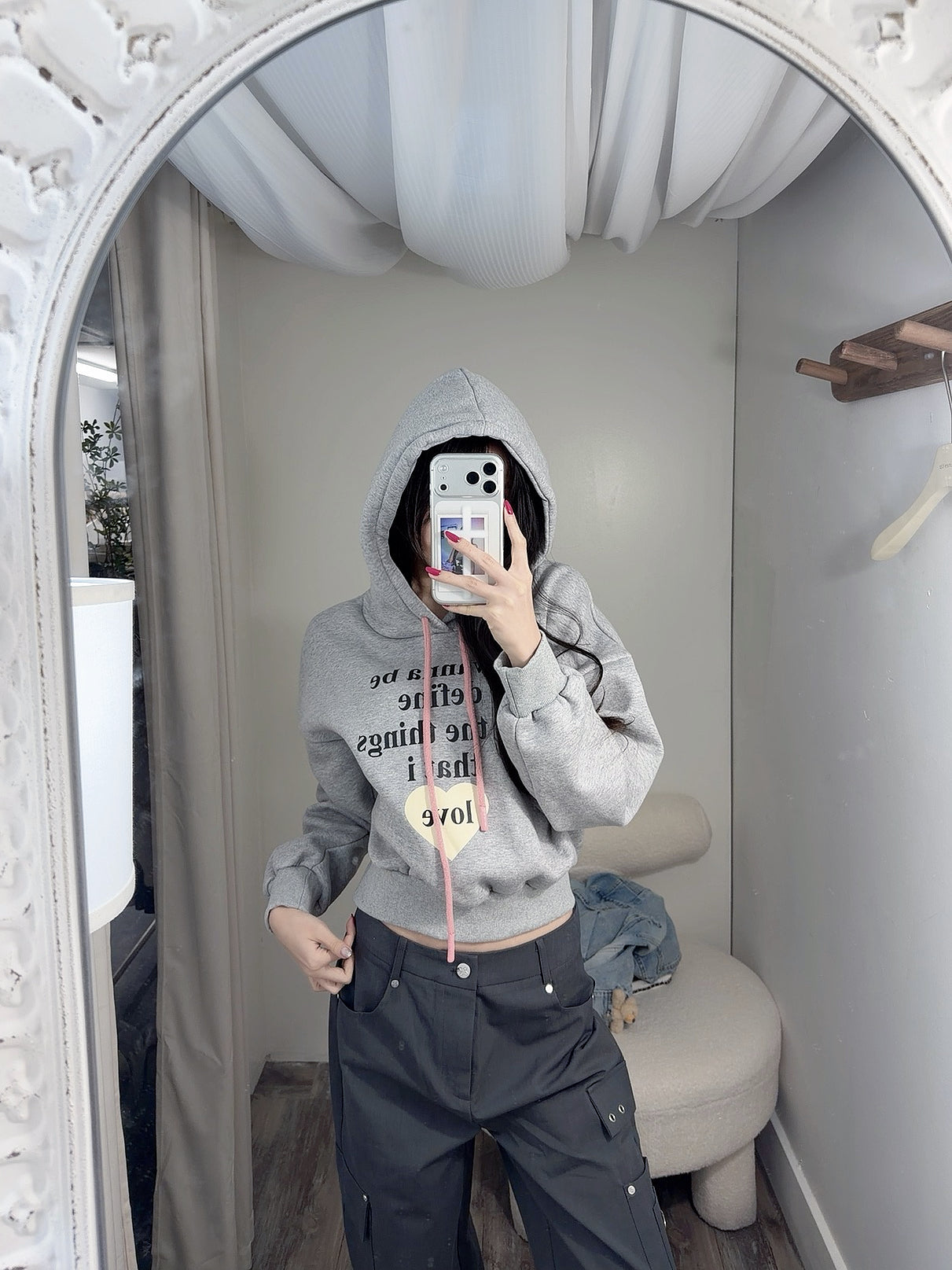 KOREAN COLLECTION 2503 连帽字母休闲短款卫衣 灰色
