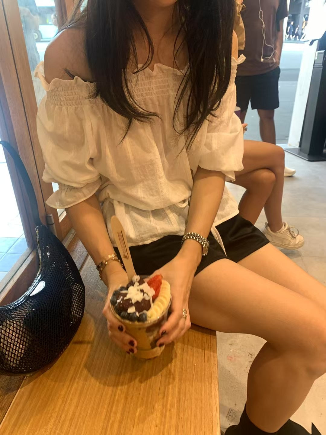 KOREAN COLLECTION 2505 一字肩束腰木耳边衬衫 白