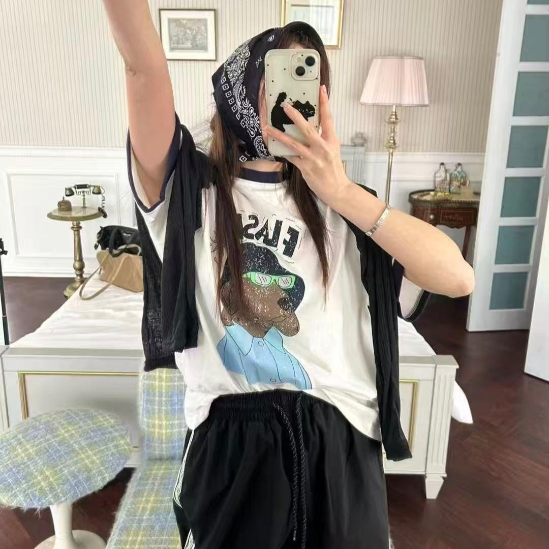 KOREAN COLLECTION 2505 圆领卡通拼色宽松Tee