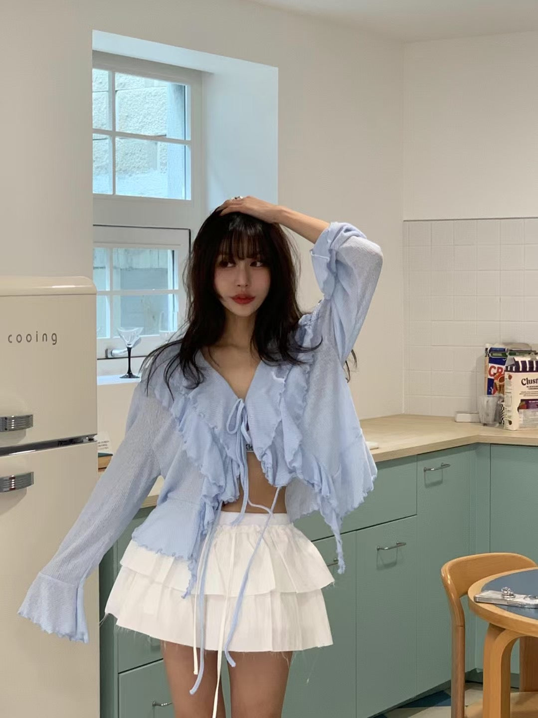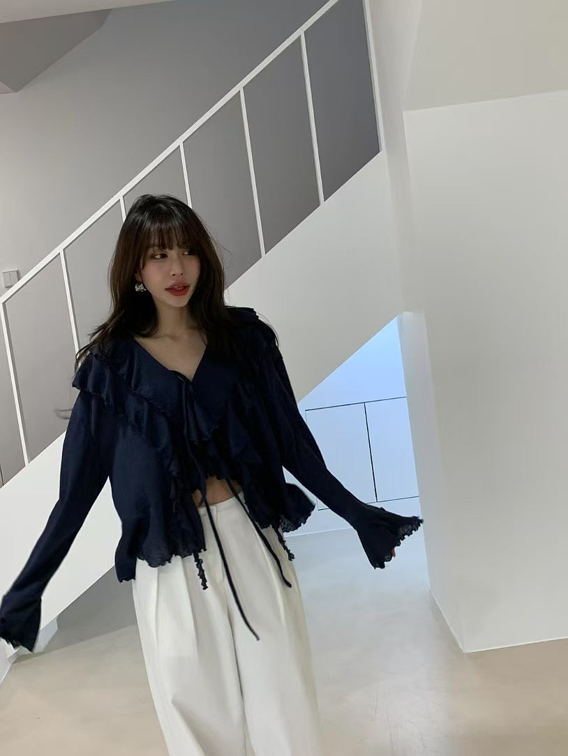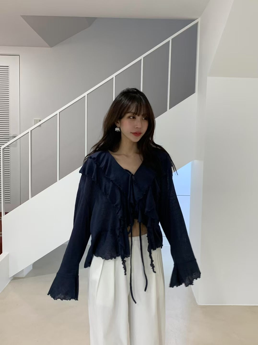 KOREAN COLLECTION 2505 时尚荷叶边系带上衣