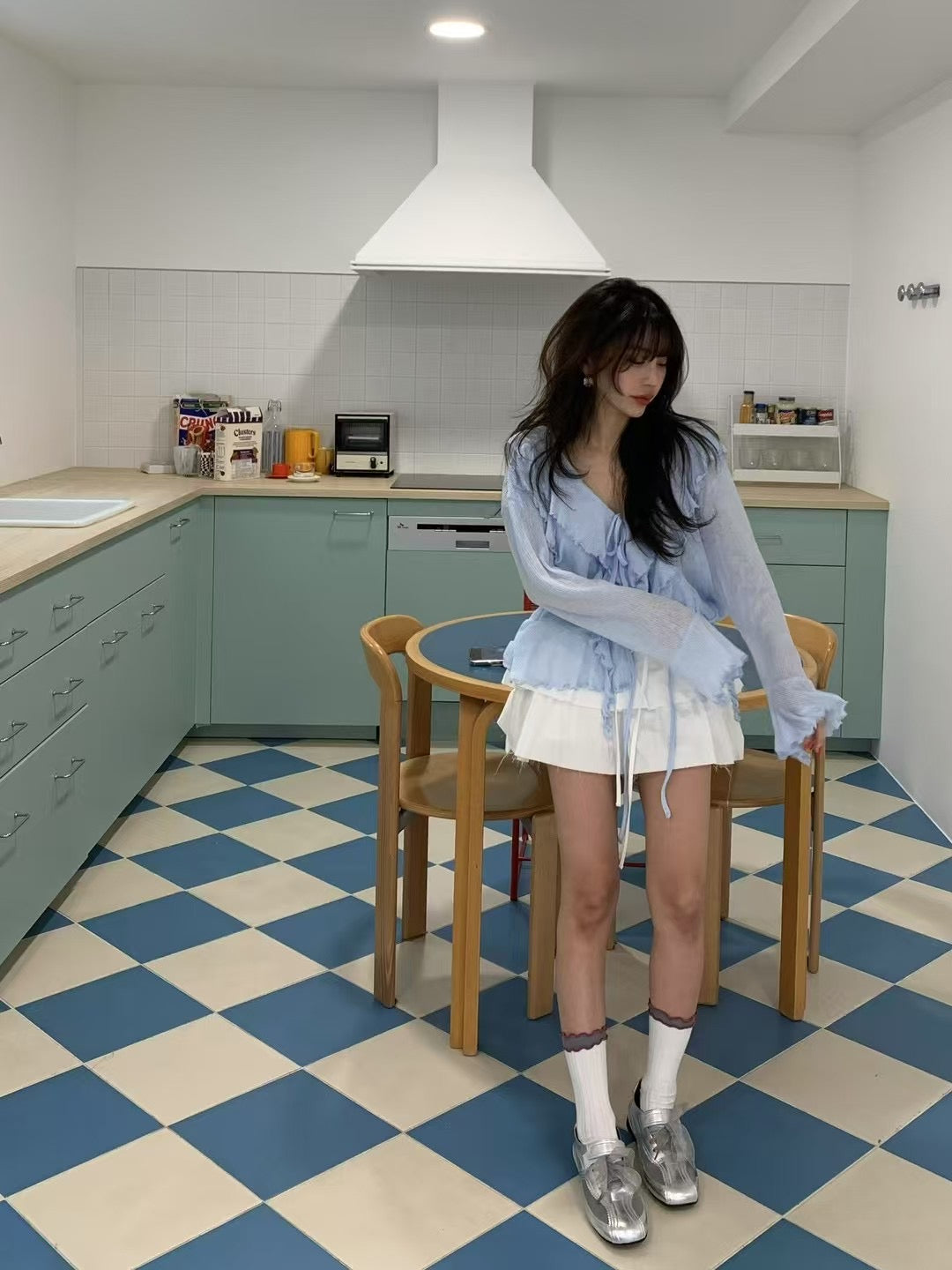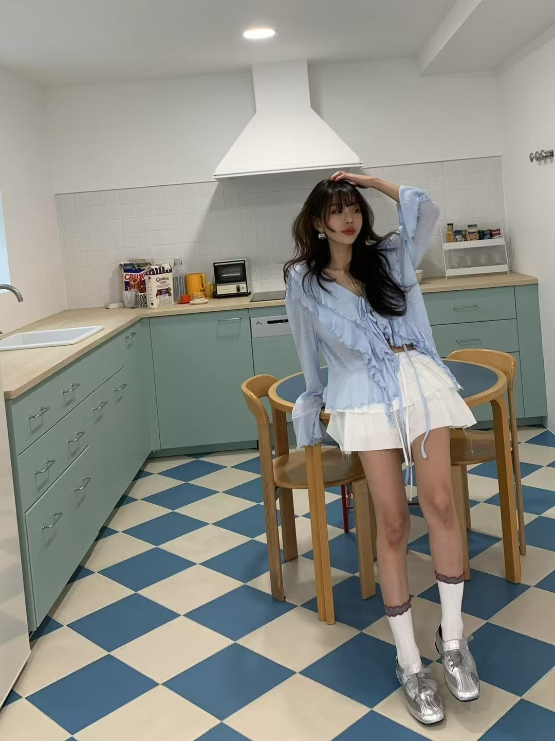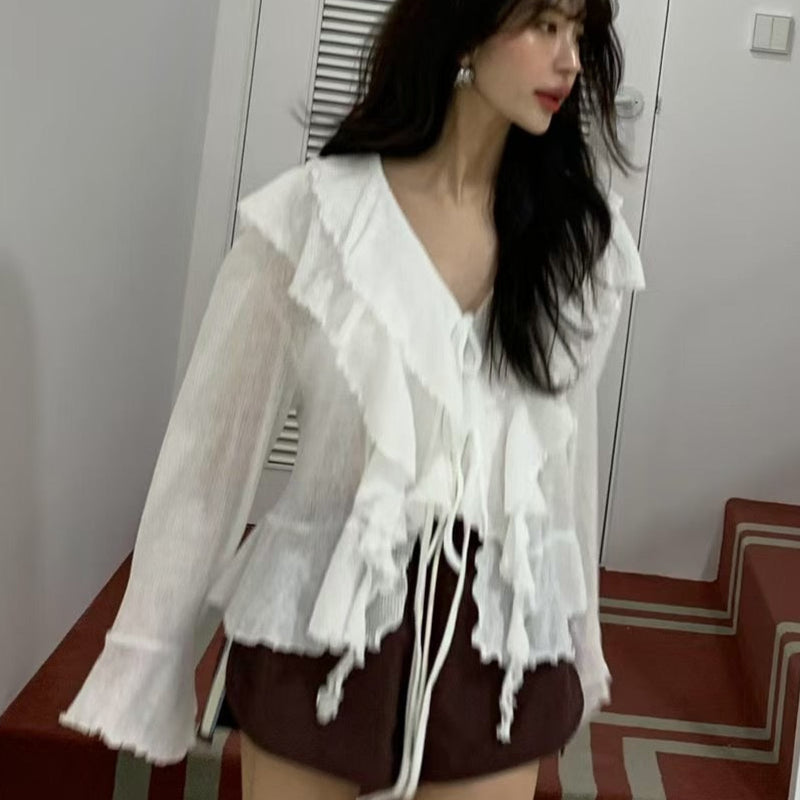 KOREAN COLLECTION 2505 时尚荷叶边系带上衣