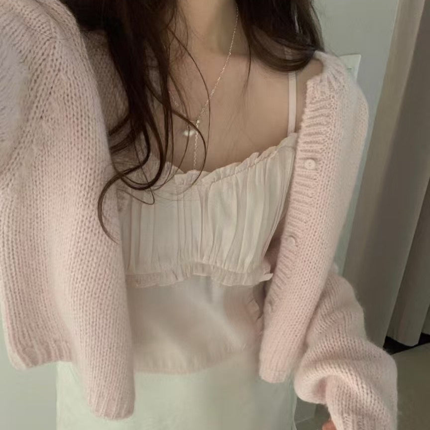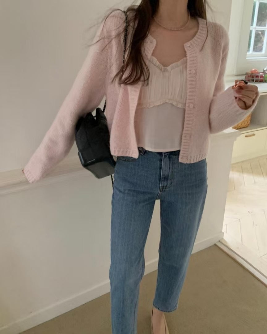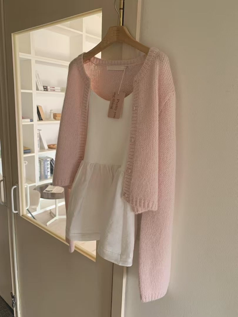 KOREAN COLLECTION 2505 甜美纯色针织开衫 粉