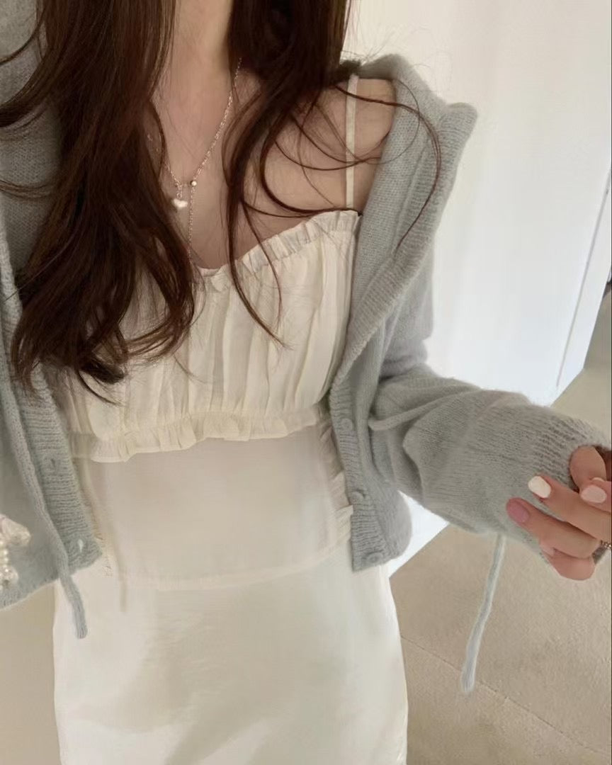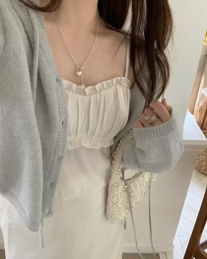 KOREAN COLLECTION 2505 褶皱木耳花边领吊带