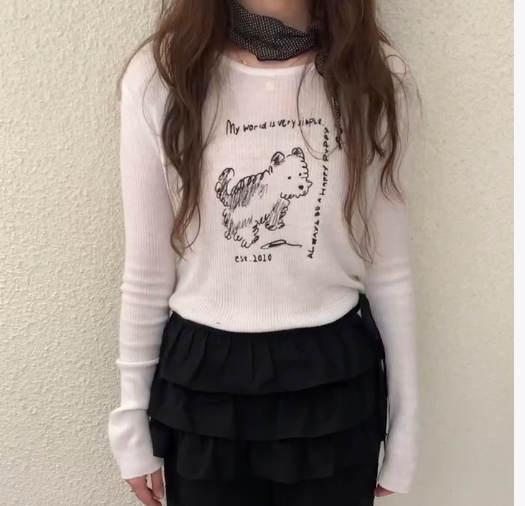 KOREAN COLLECTION 2511 可爱小狗印花针织衫 白