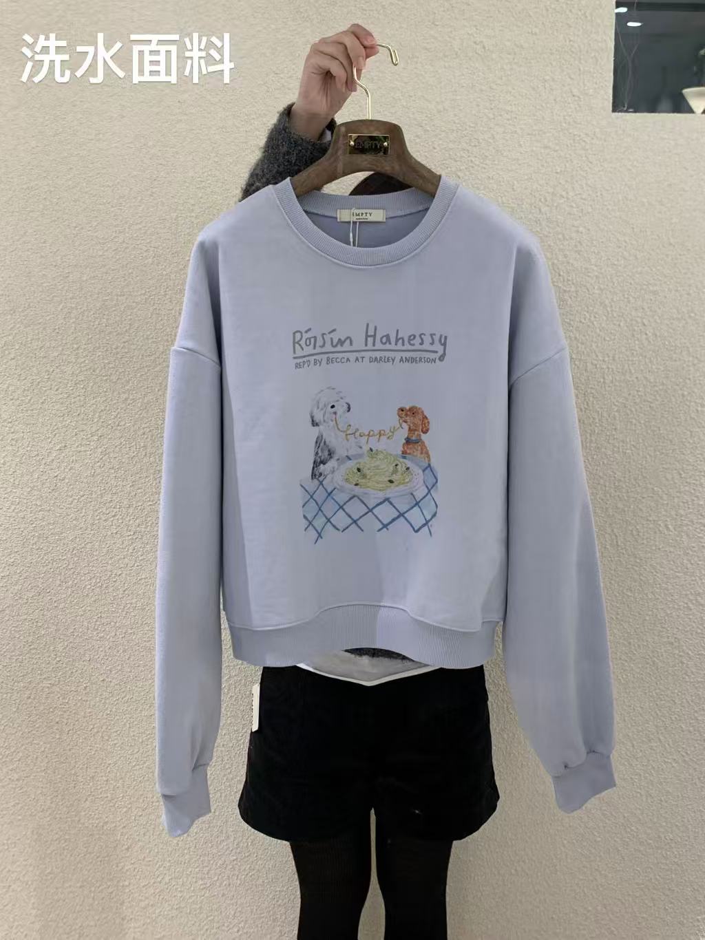 KOREAN COLLECTION 2511 狗狗印花圆领拉绒套头卫衣