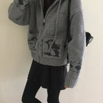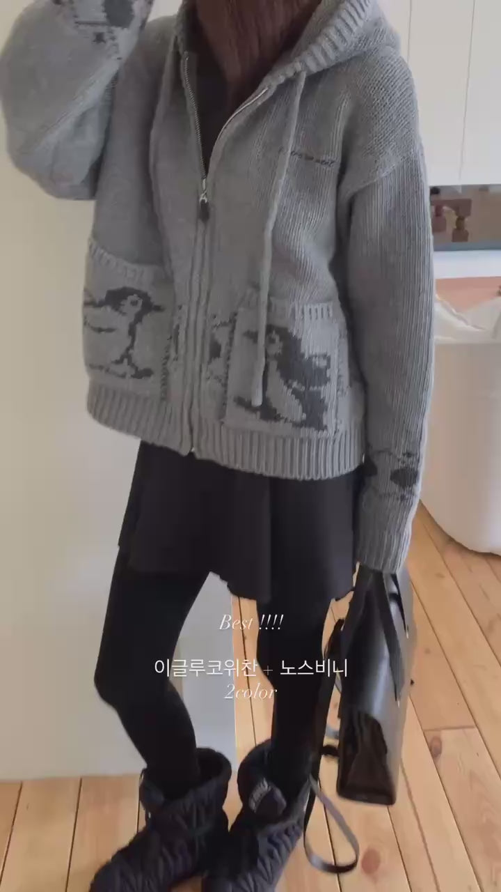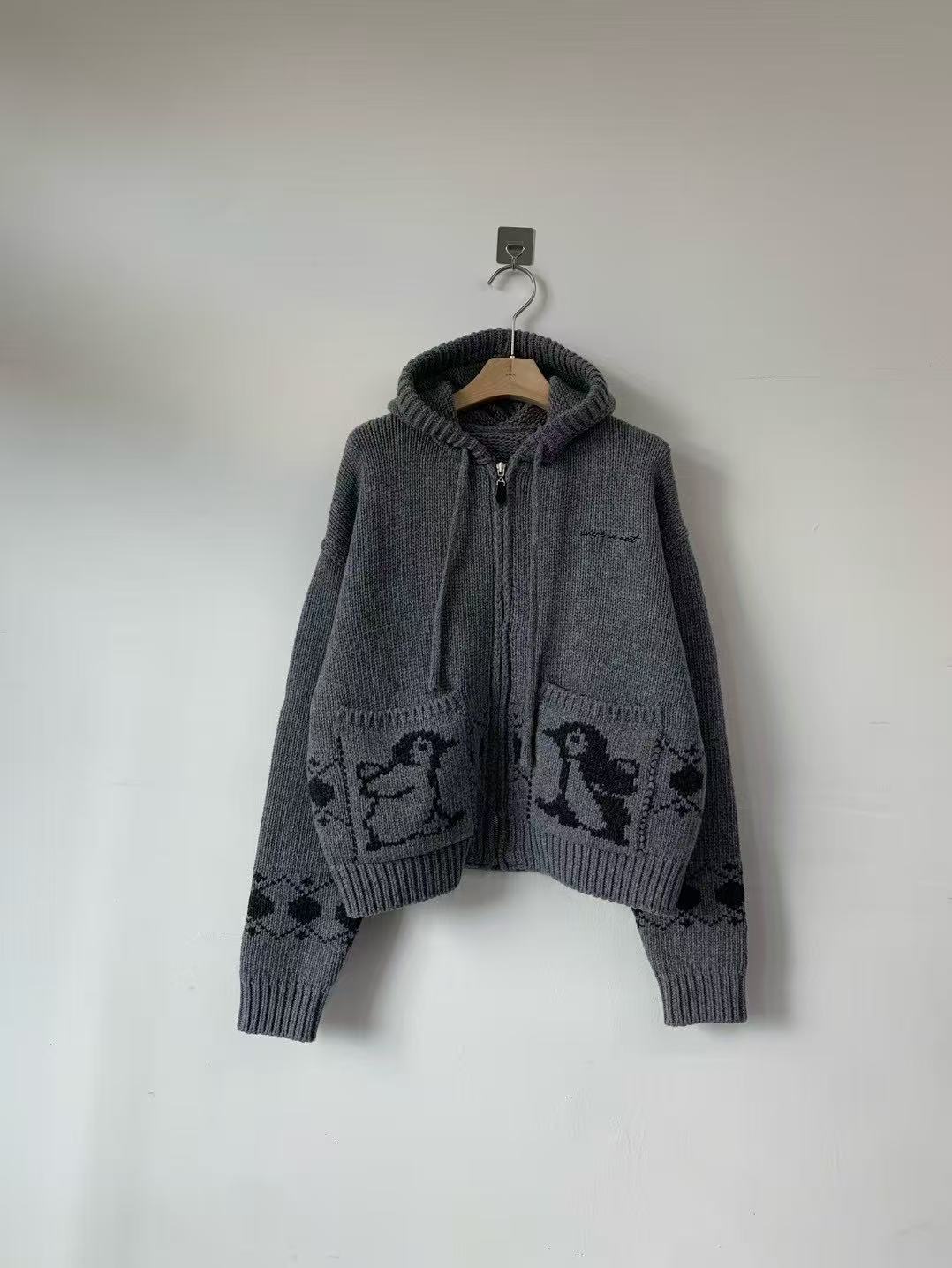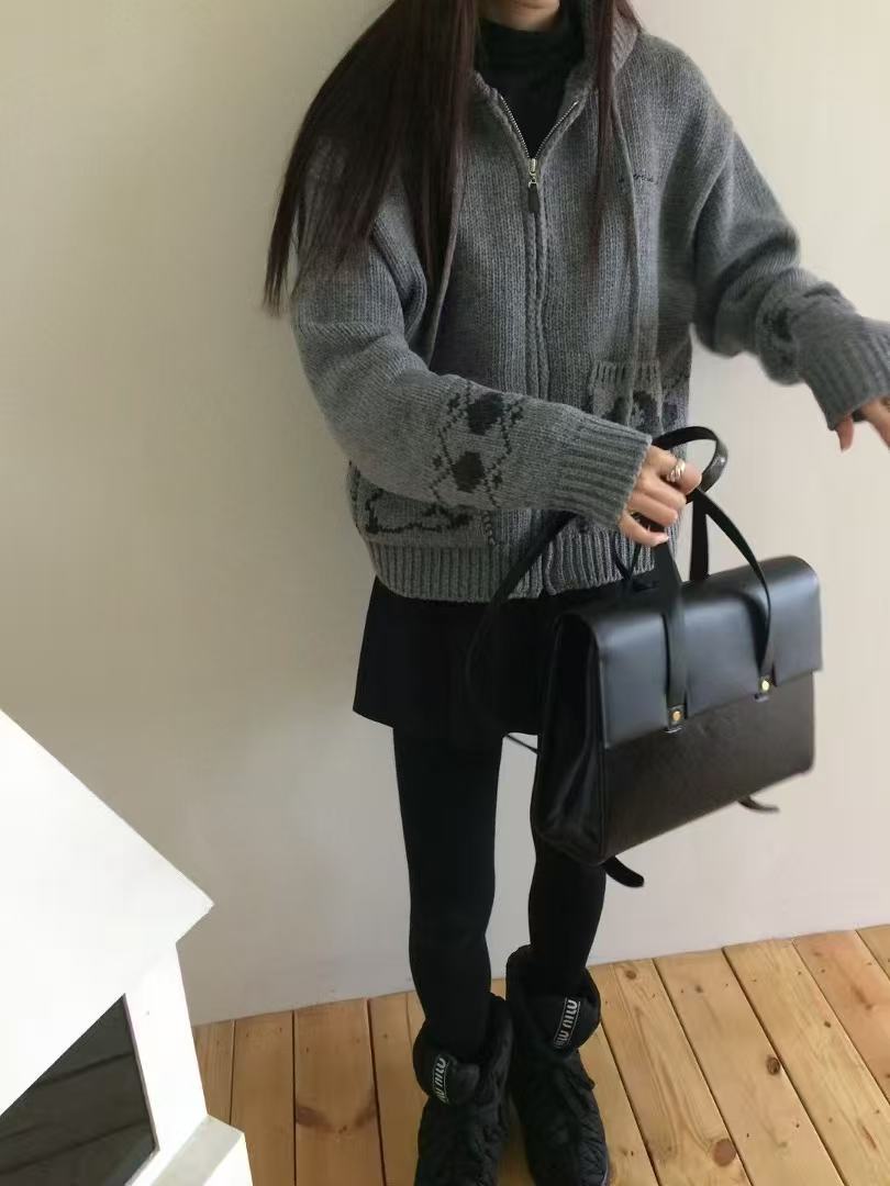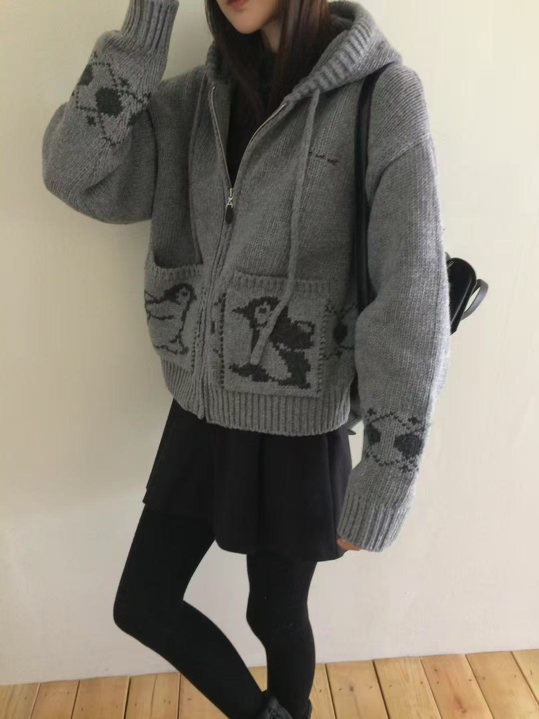 KOREAN COLLECTION 2511 百搭连帽提花针织外套 灰