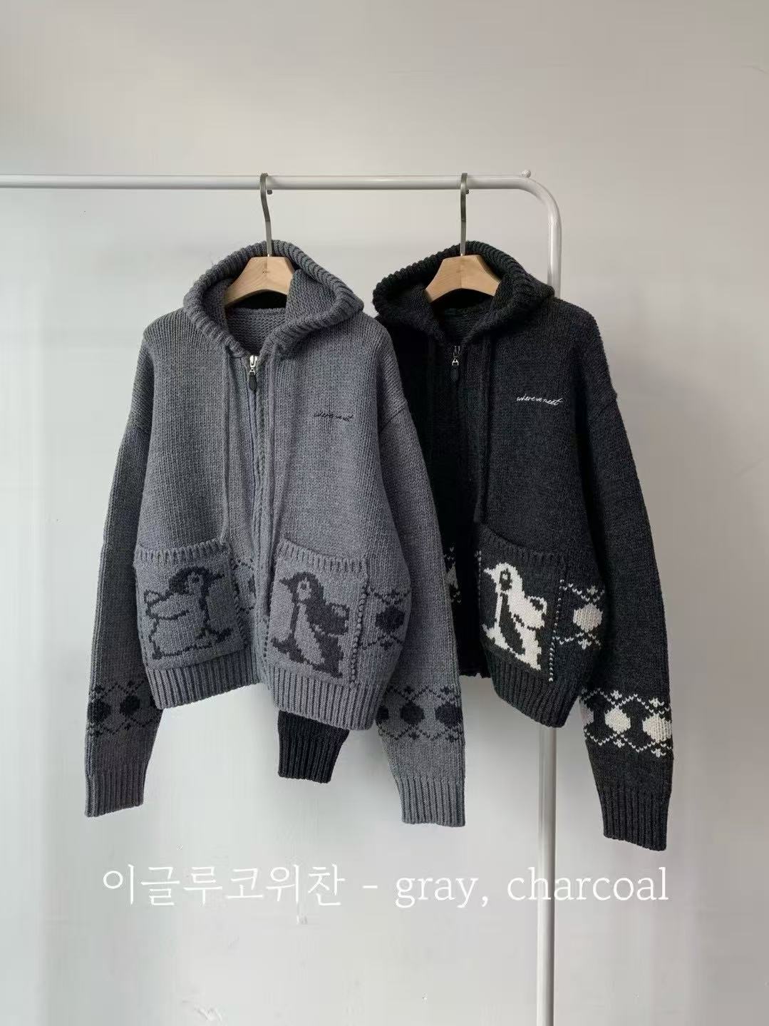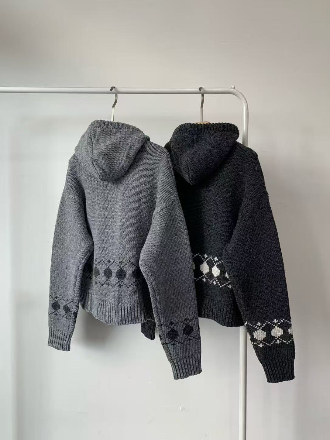 KOREAN COLLECTION 2511 百搭连帽提花针织外套 黑