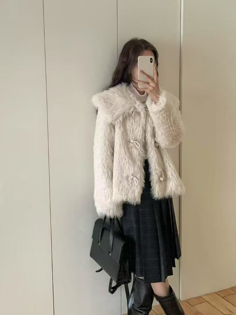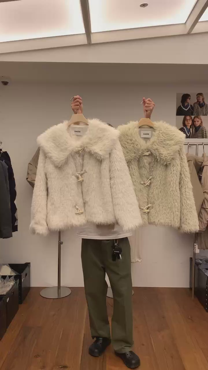 KOREAN COLLECTION 2511 牛角扣翻领毛毛外套