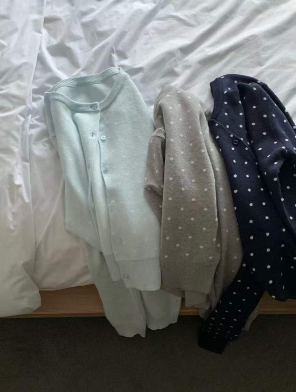 KOREAN COLLECTION 2603 圆领波点百搭针织开衫 浅蓝