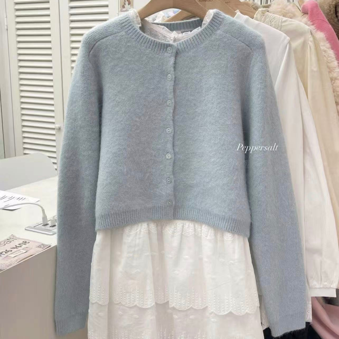 KOREAN COLLECTION 2603 温柔软糯蓝针织上衣