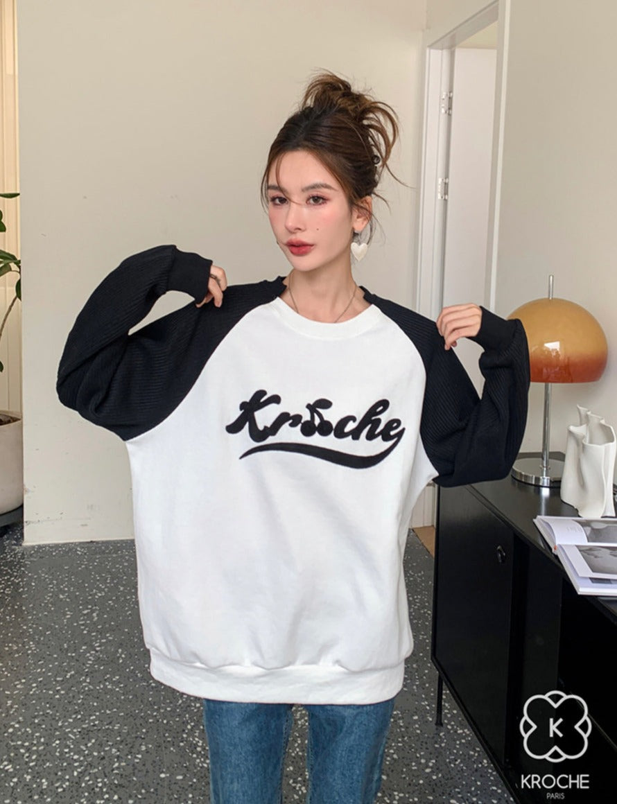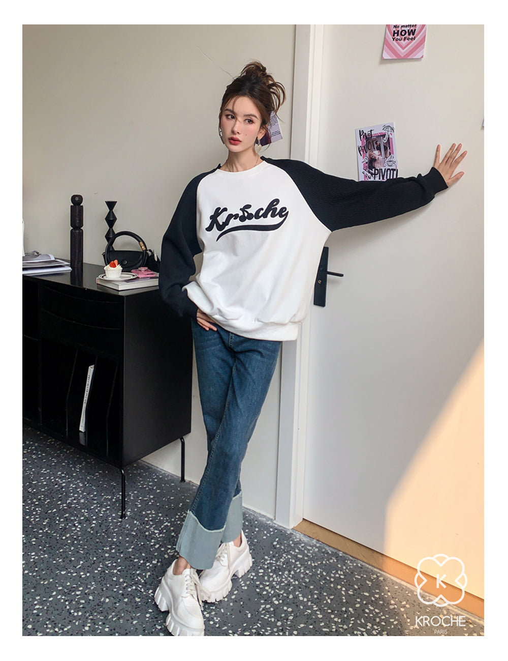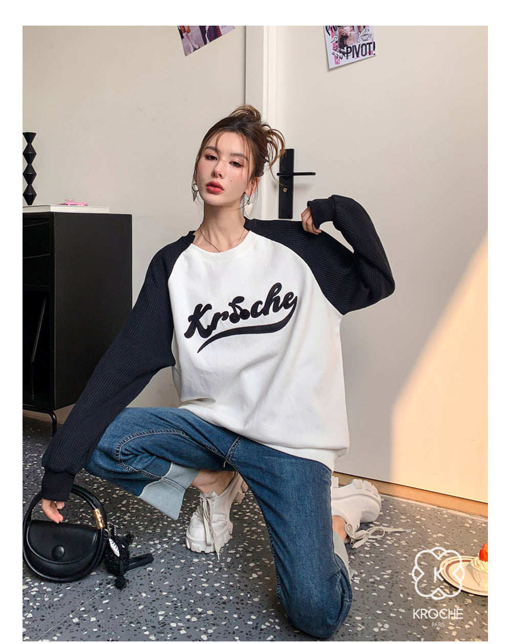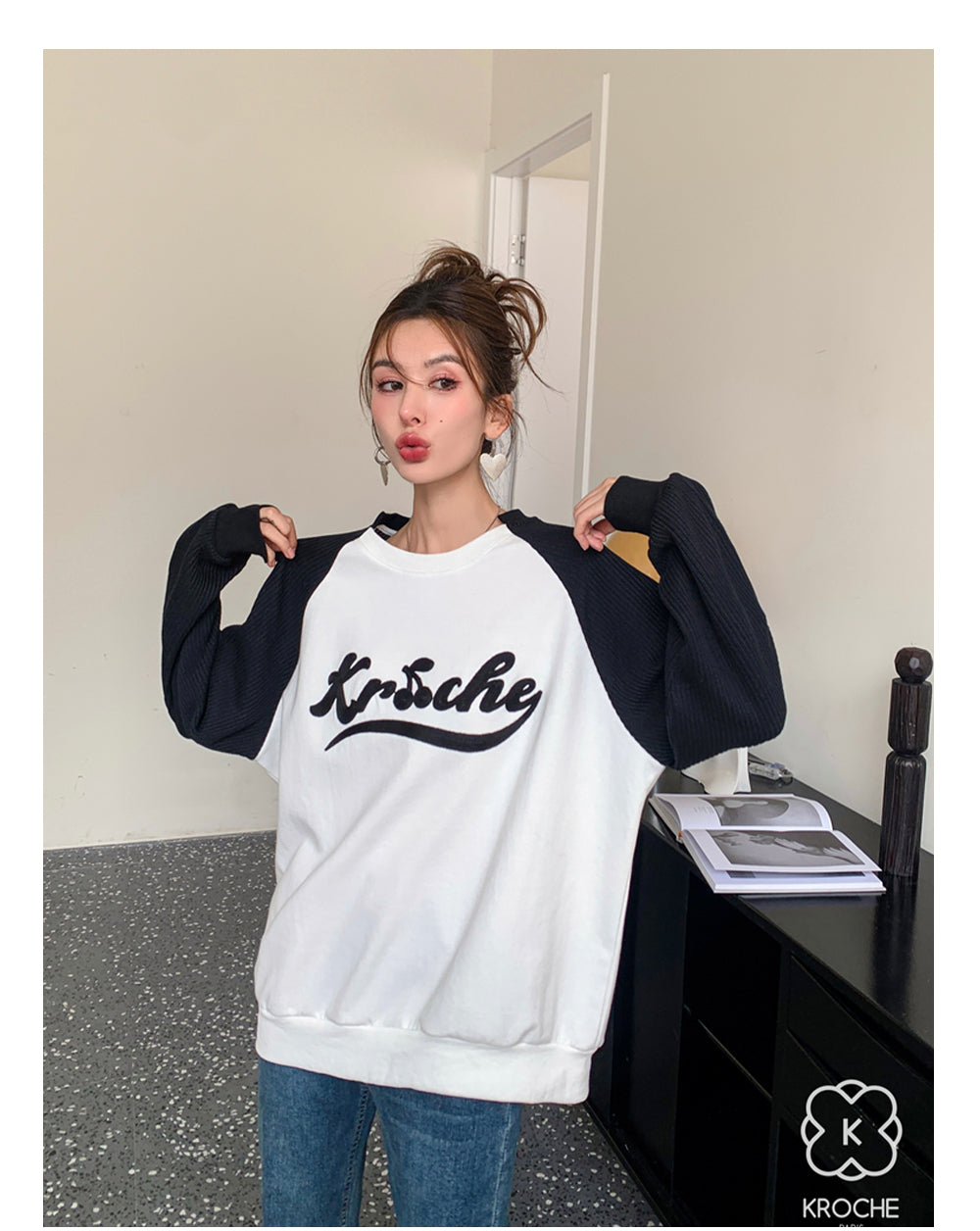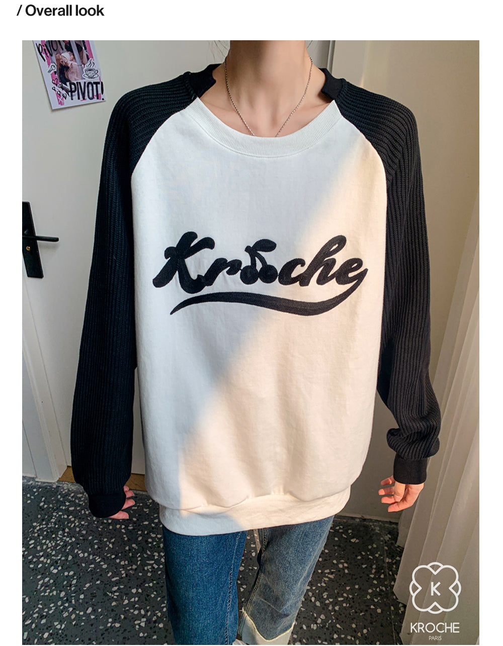 Kroche 手绘樱桃logo撞色针织袖拼接套头卫衣 黑
