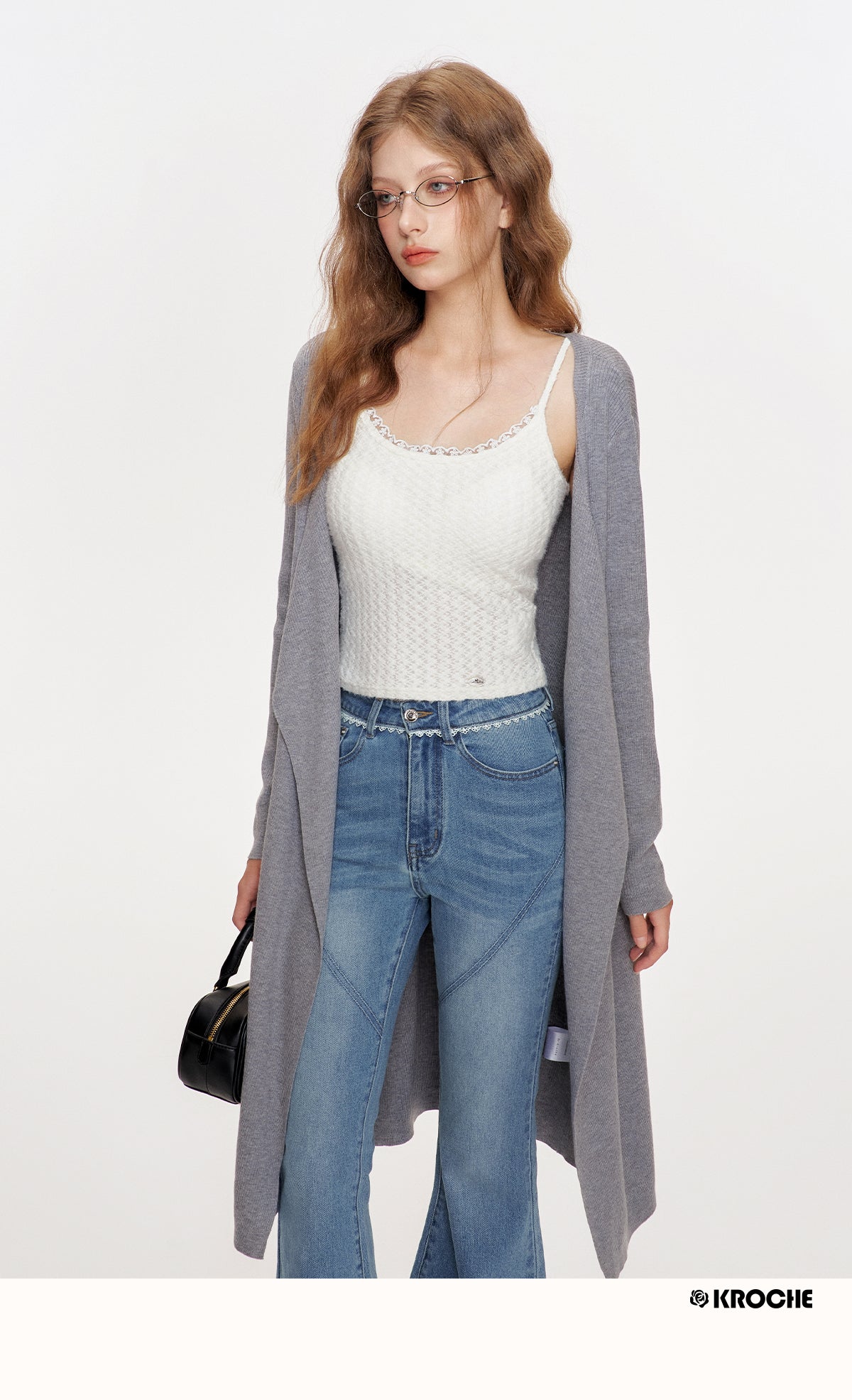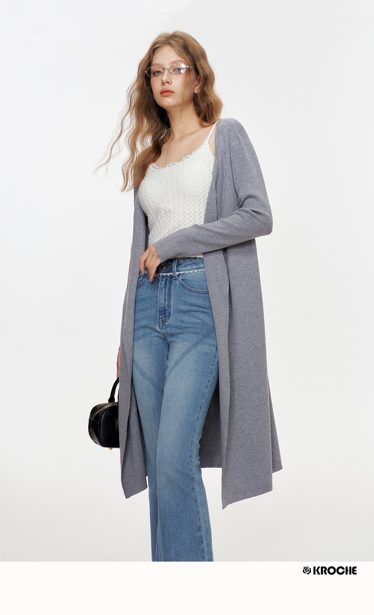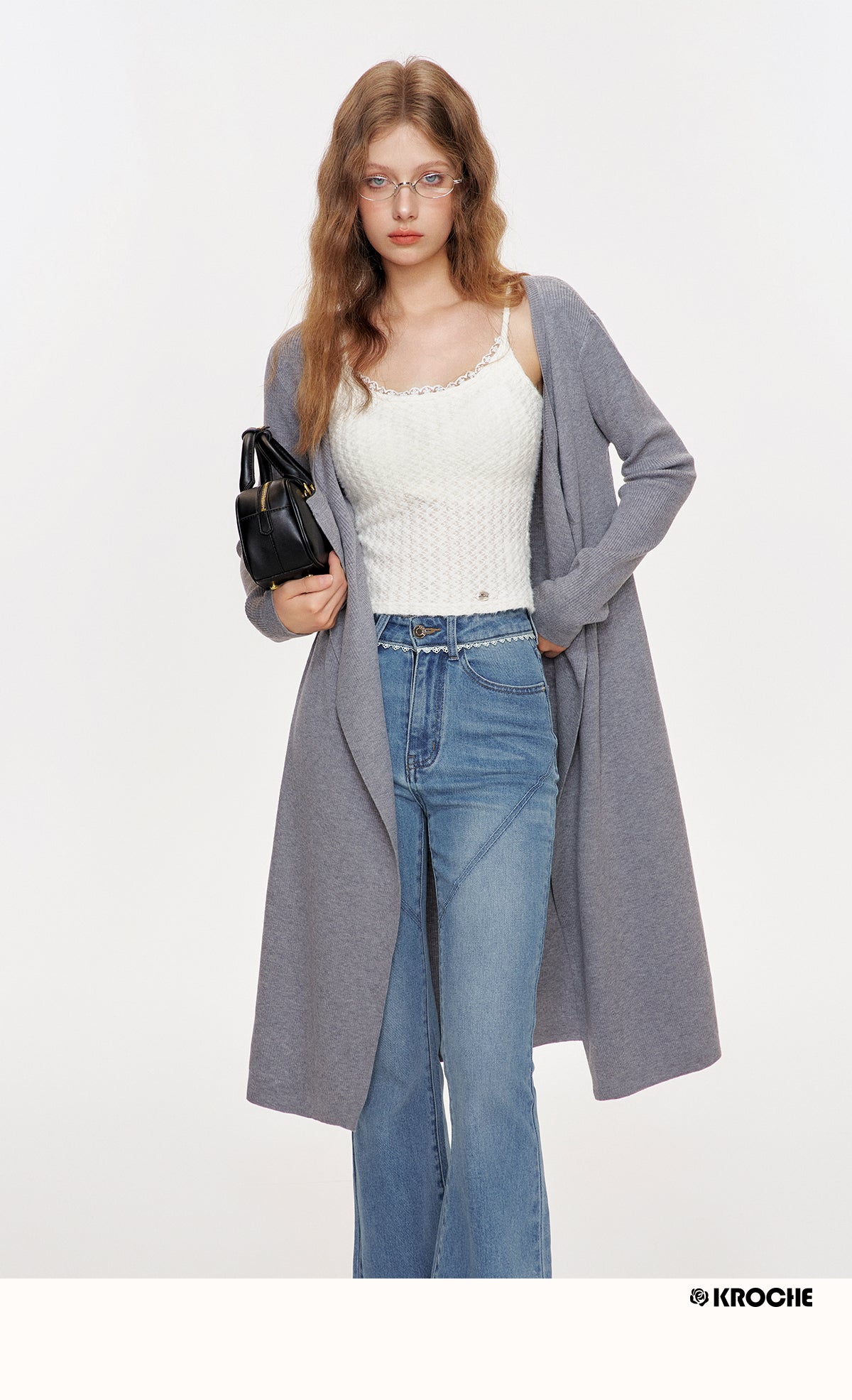 Kroche 2410 真丝羊绒 宽松长款羊绒开衫