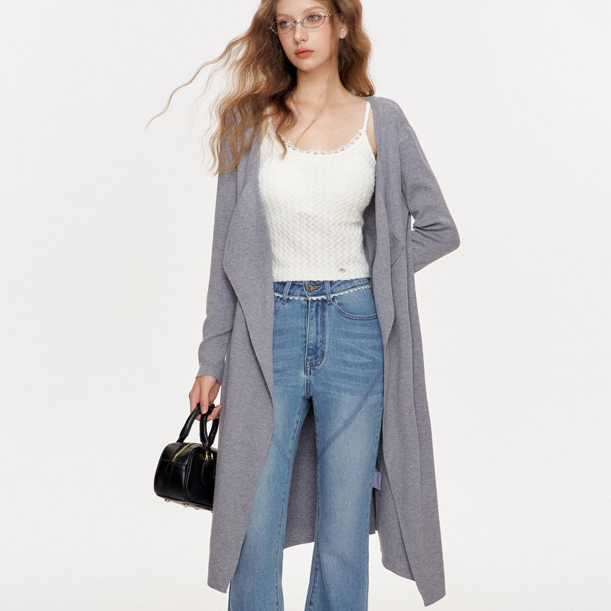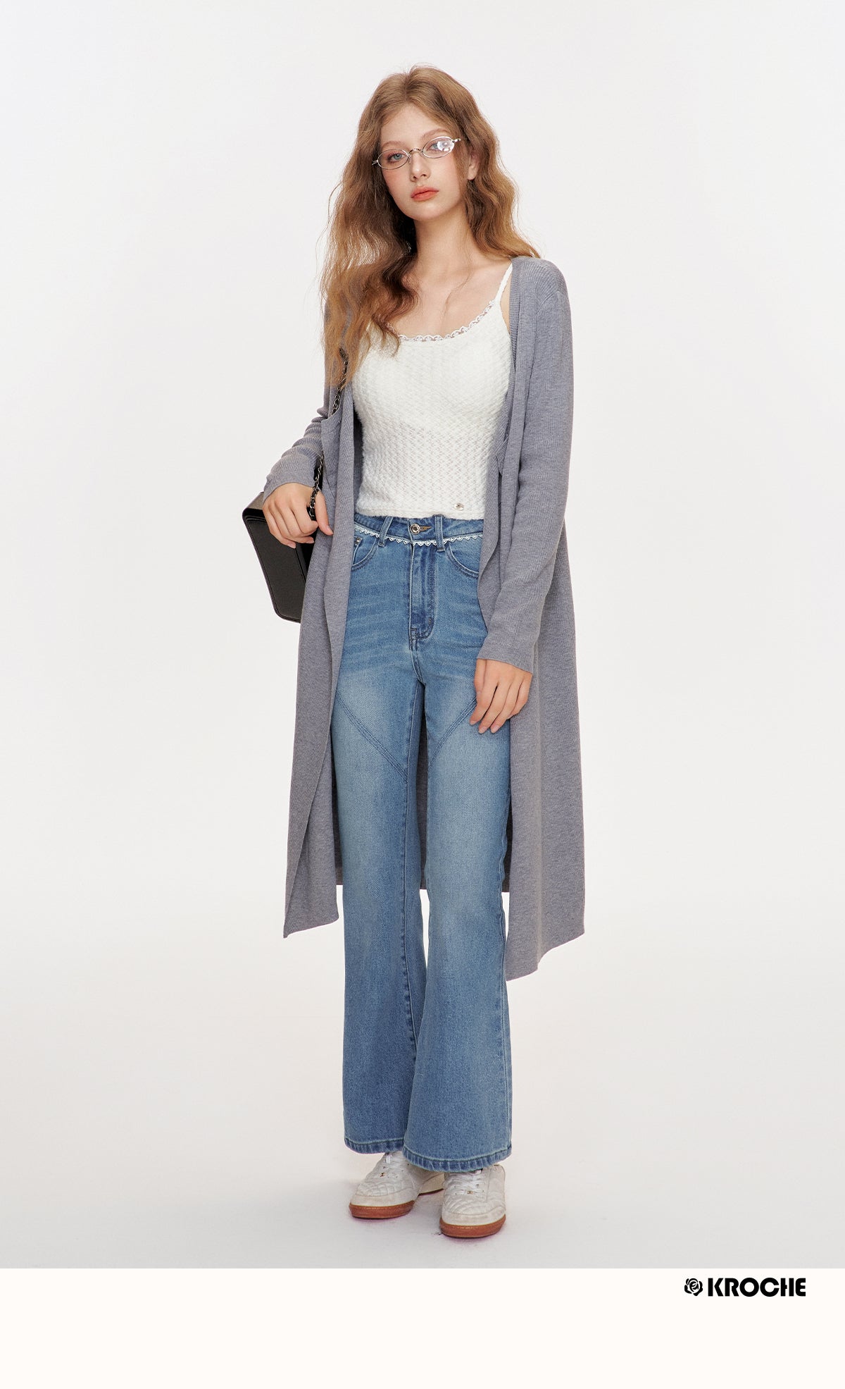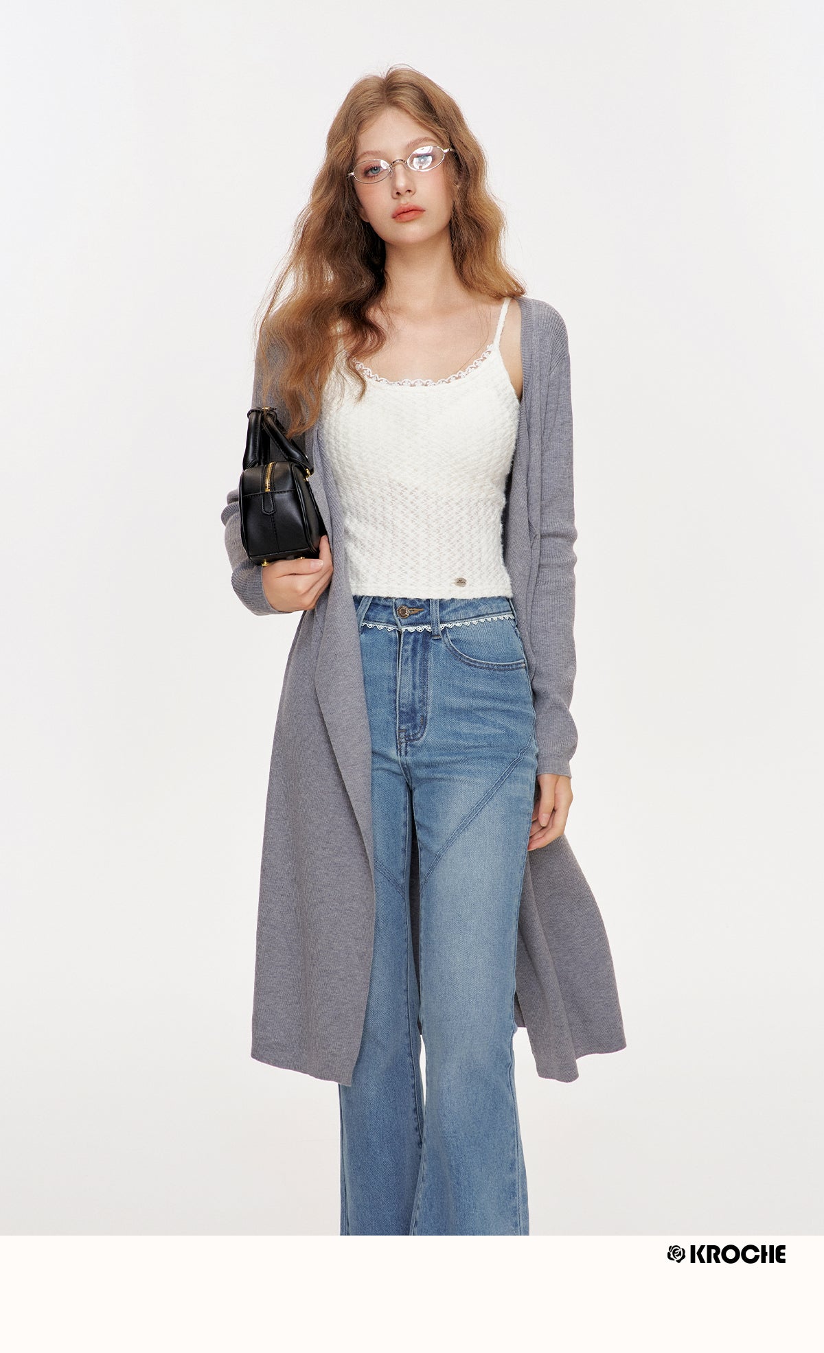 Kroche 2410 真丝羊绒 宽松长款羊绒开衫