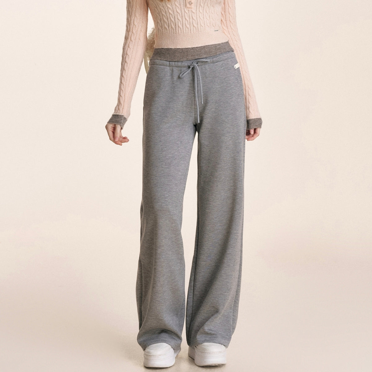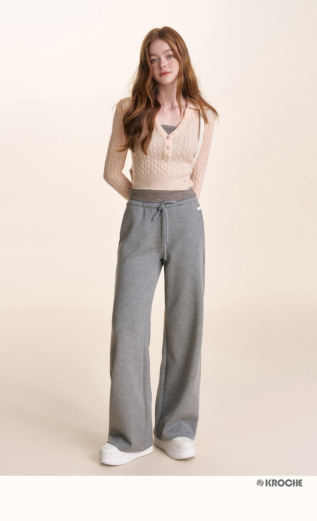 Kroche 2504 抽绳宽松高腰直筒休闲裤 灰