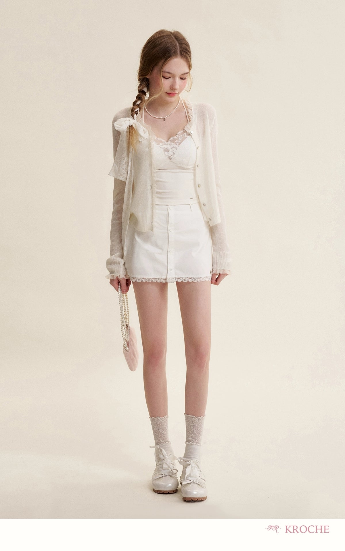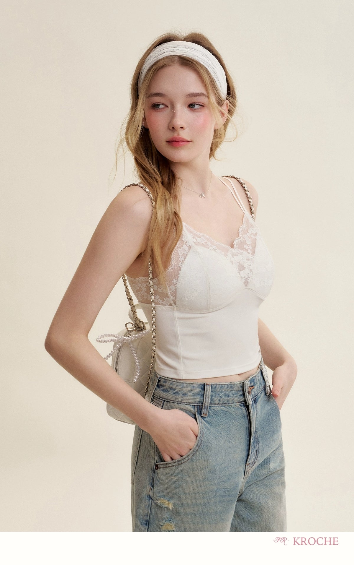 Kroche 2505 五瓣花蕾丝一体杯修身吊带