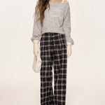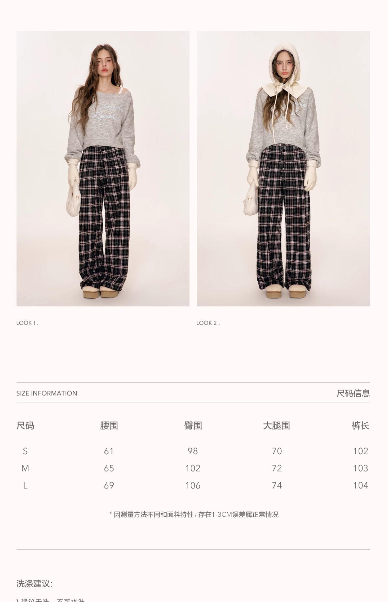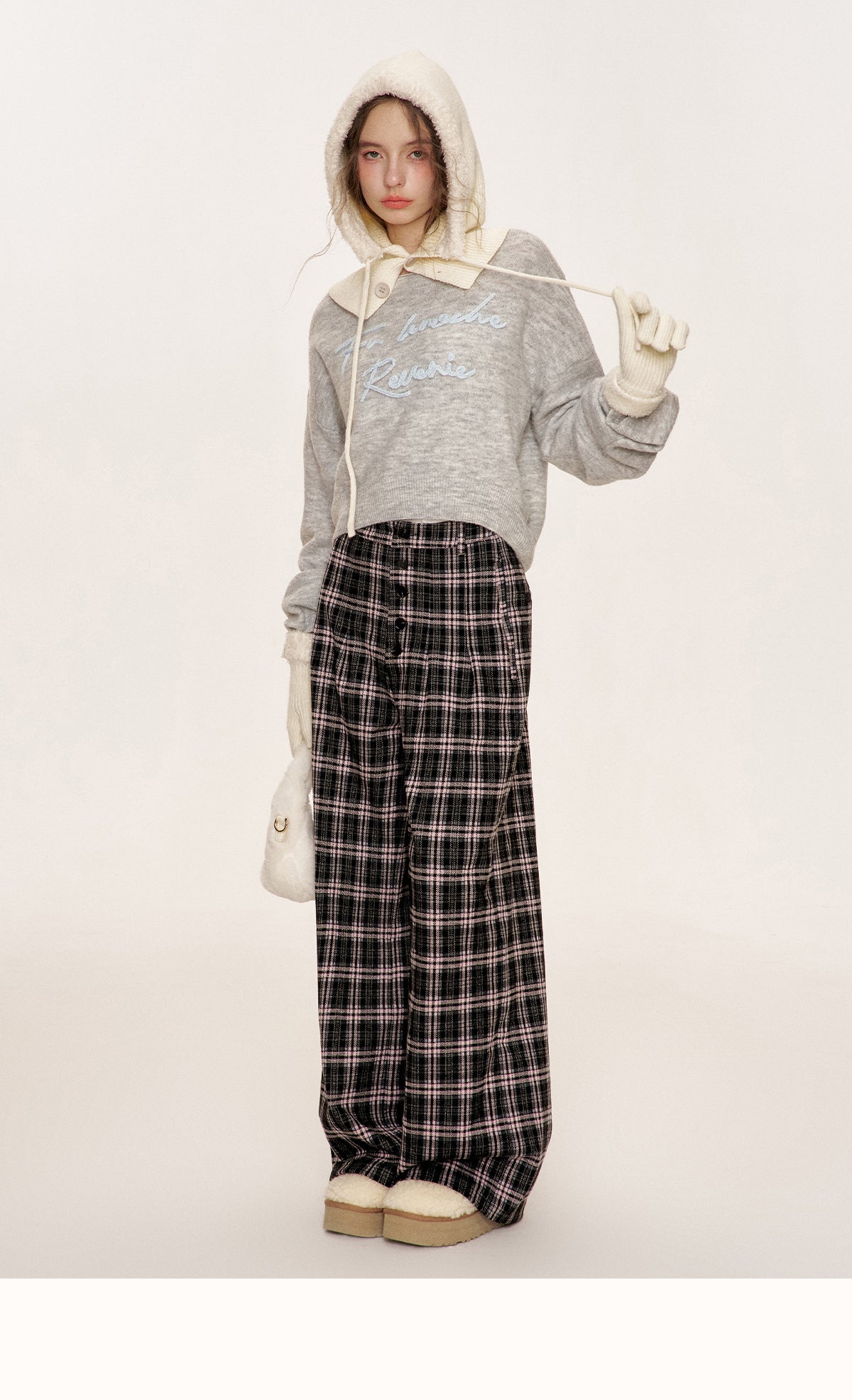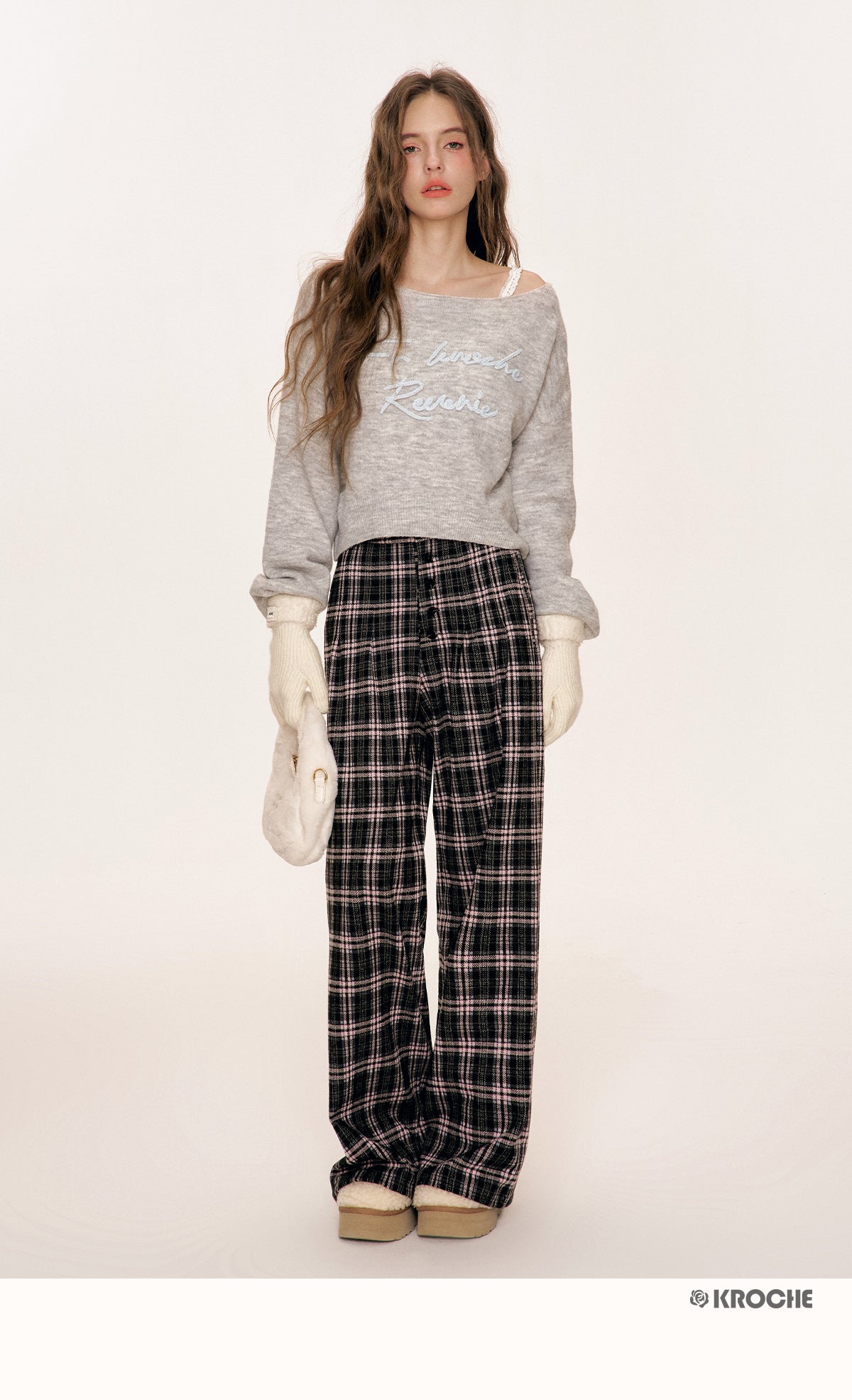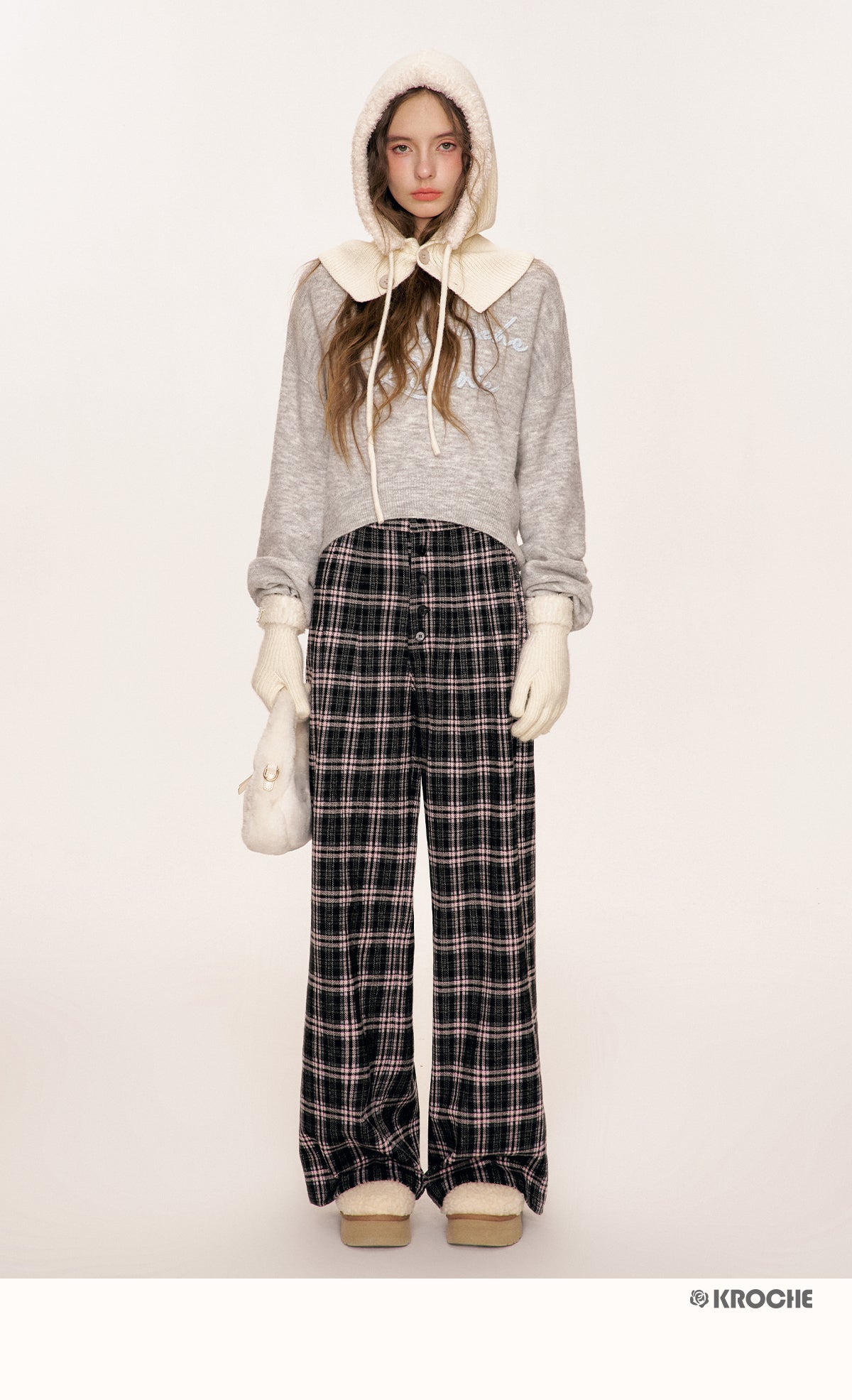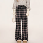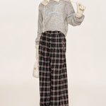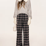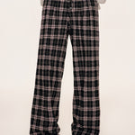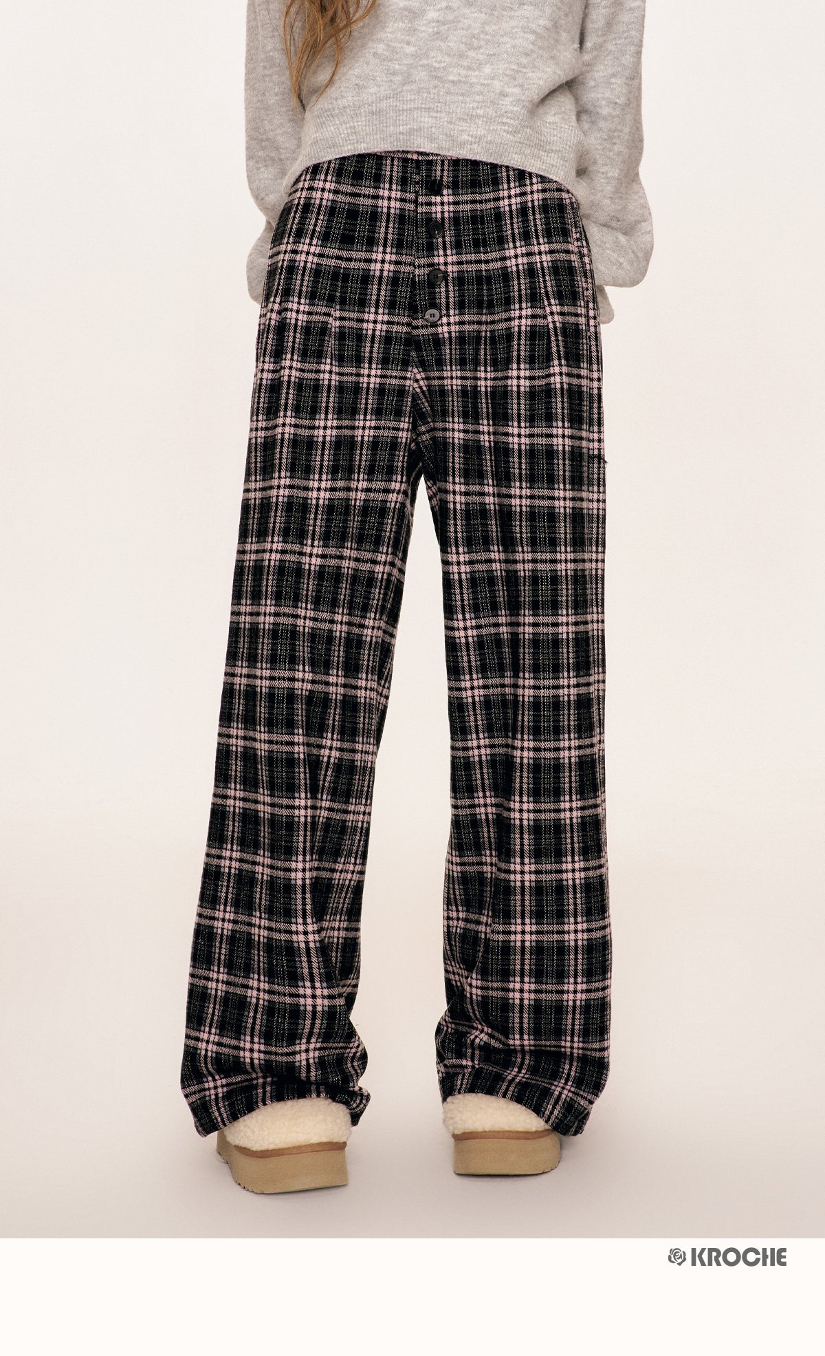 Kroche 2509 撞色格纹长排扣宽松阔腿裤