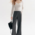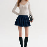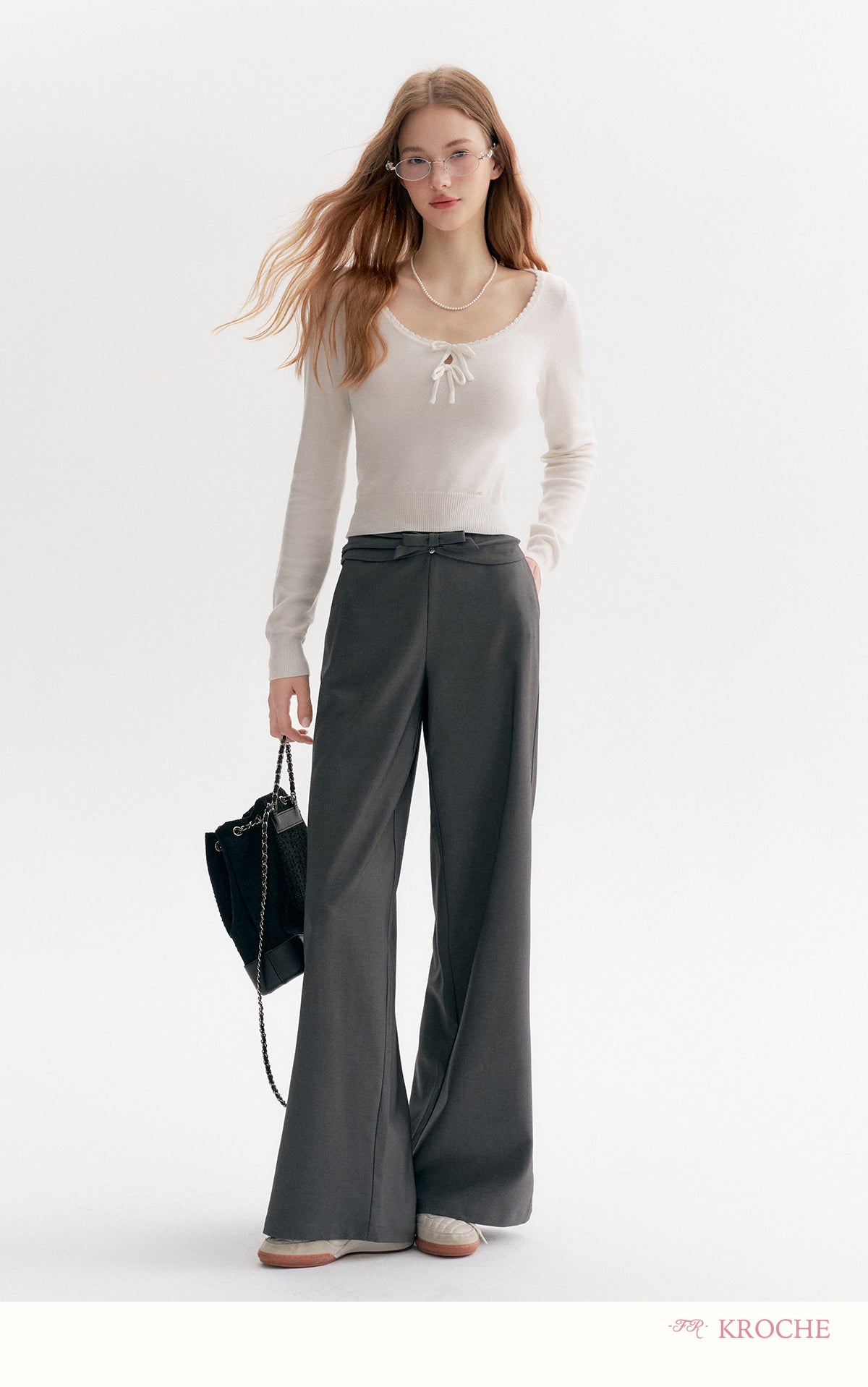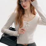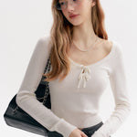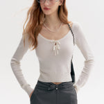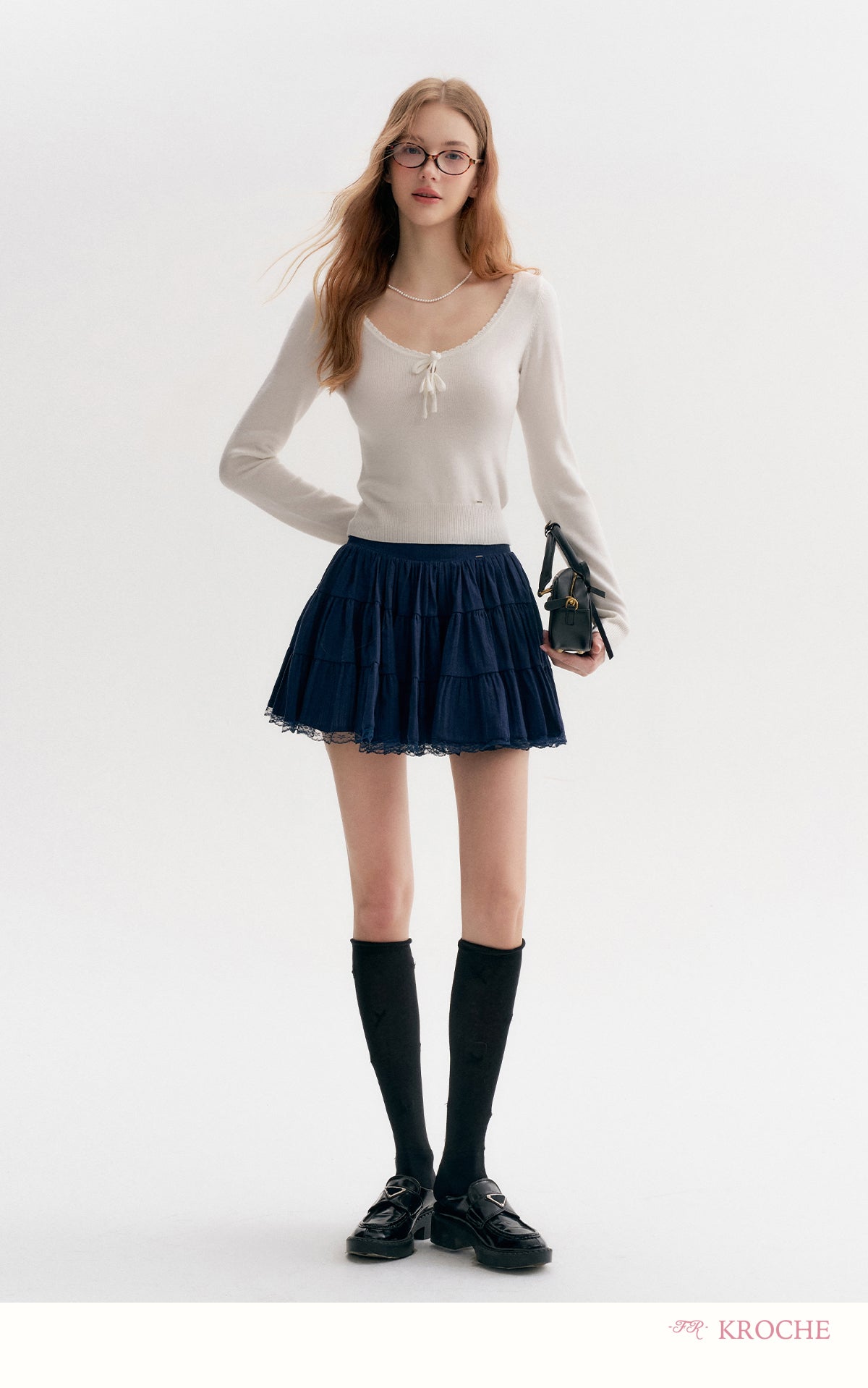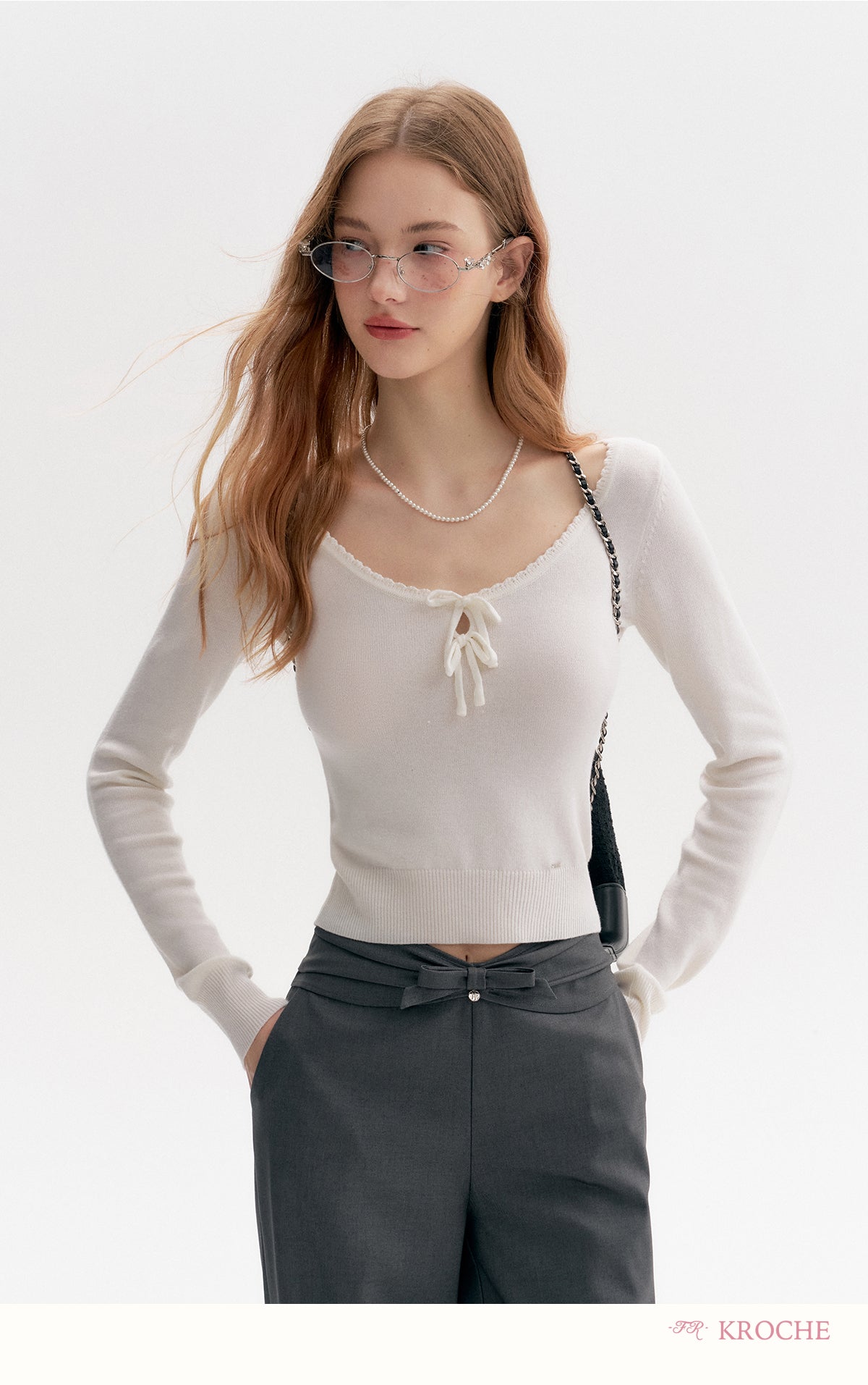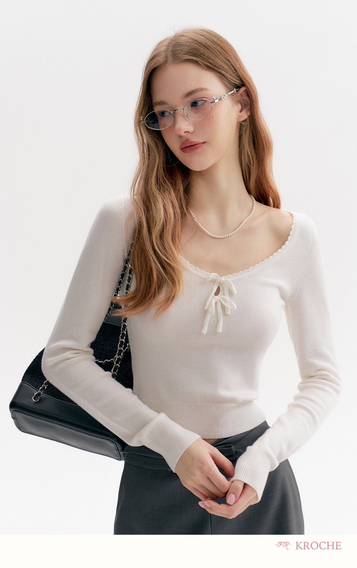 Kroche 2509 波浪花边大U领修身长袖针织衫