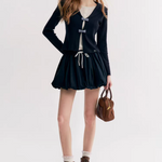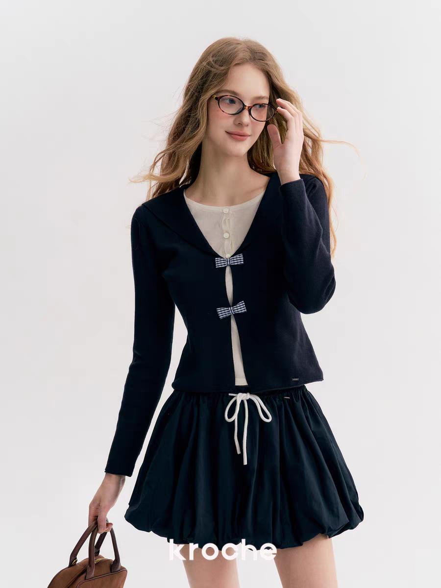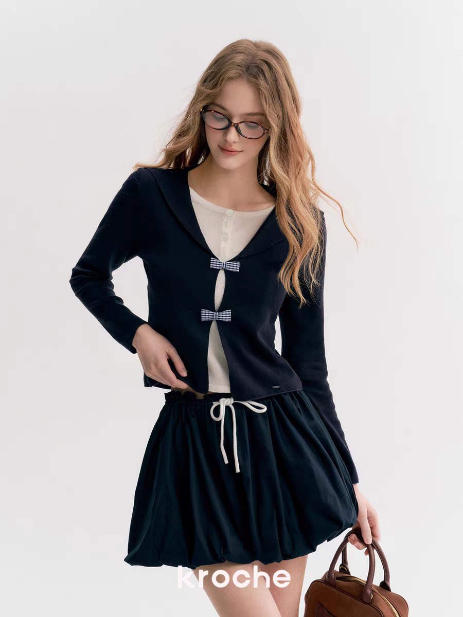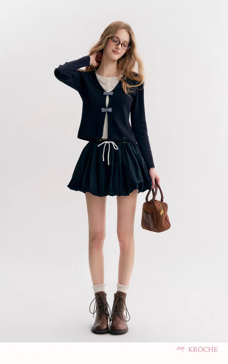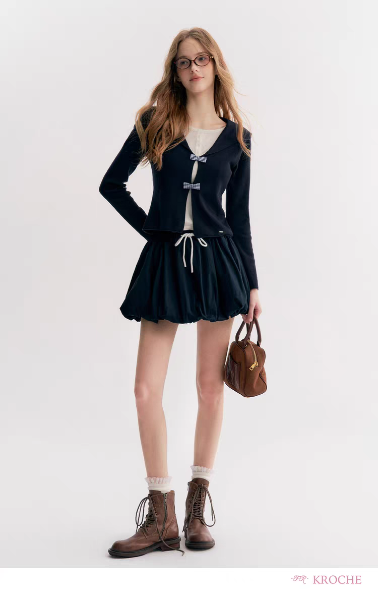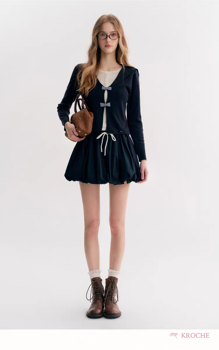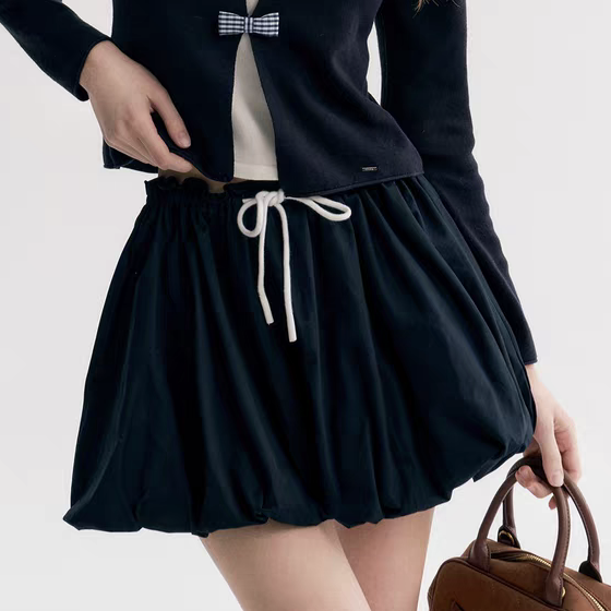 Kroche 2510 撞色抽绳系带花苞短裙