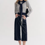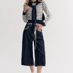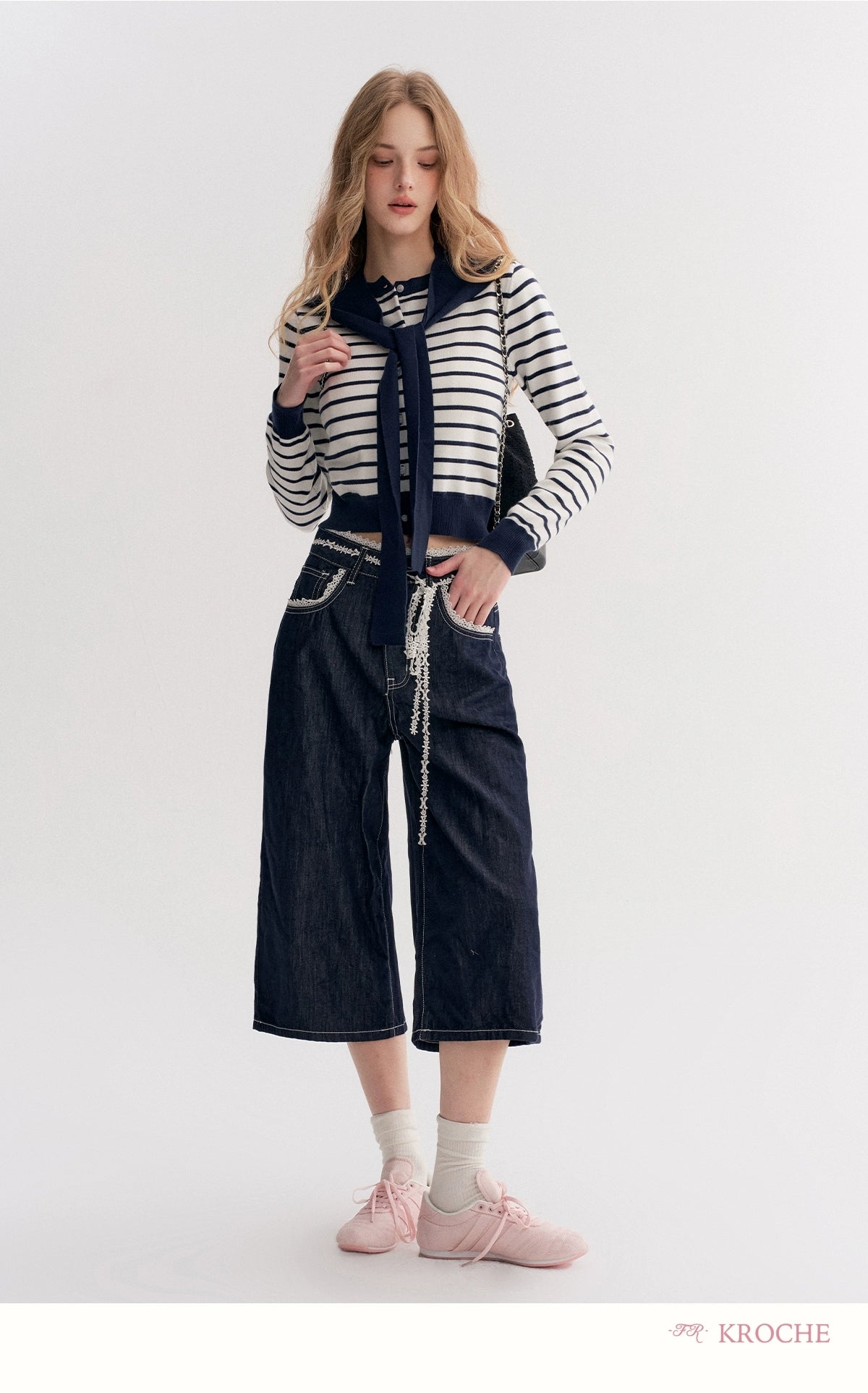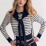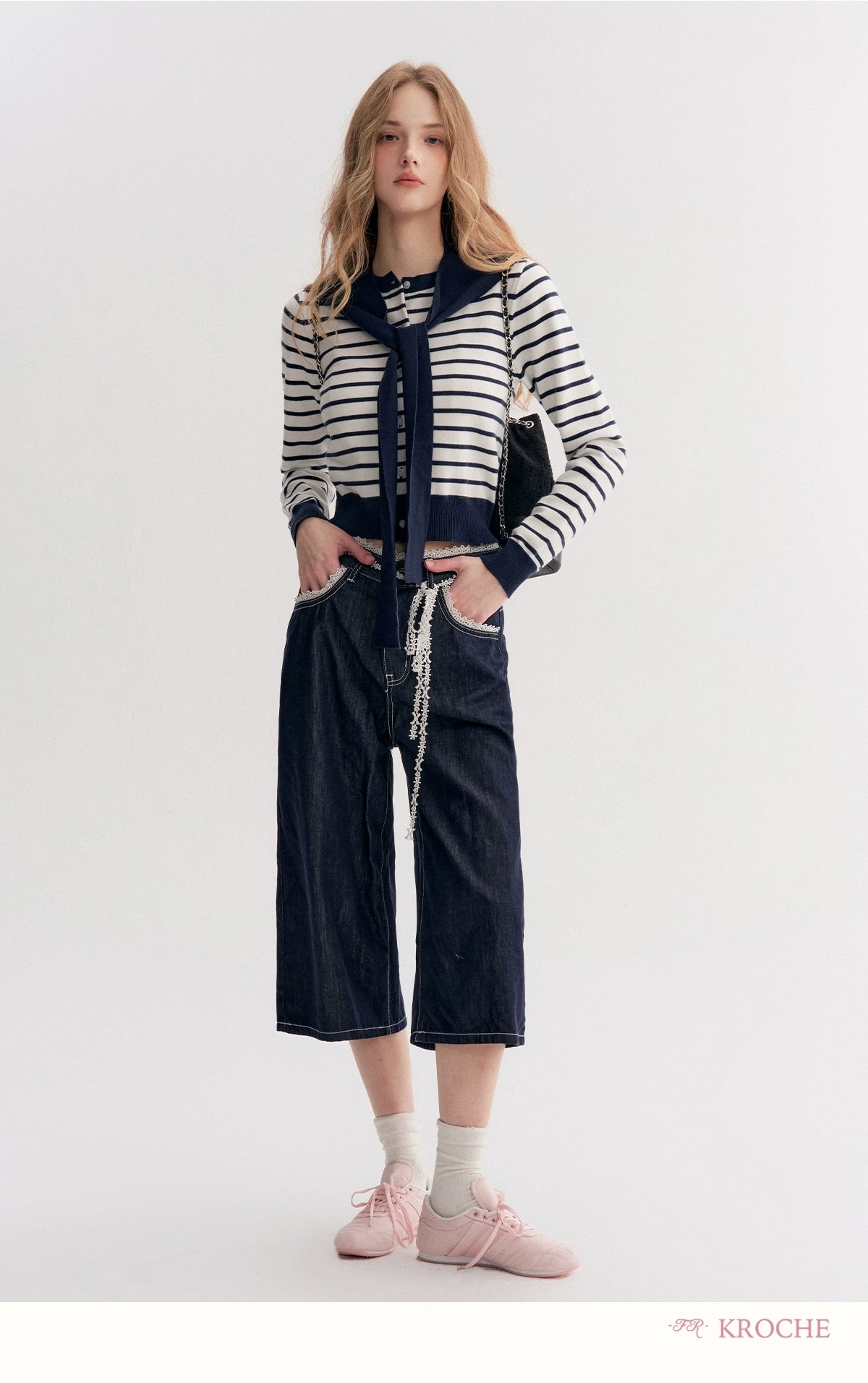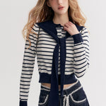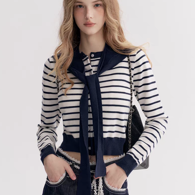 Kroche 2510 撞色条纹针织开衫+海军领披肩 藏青