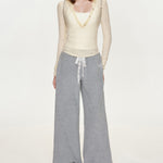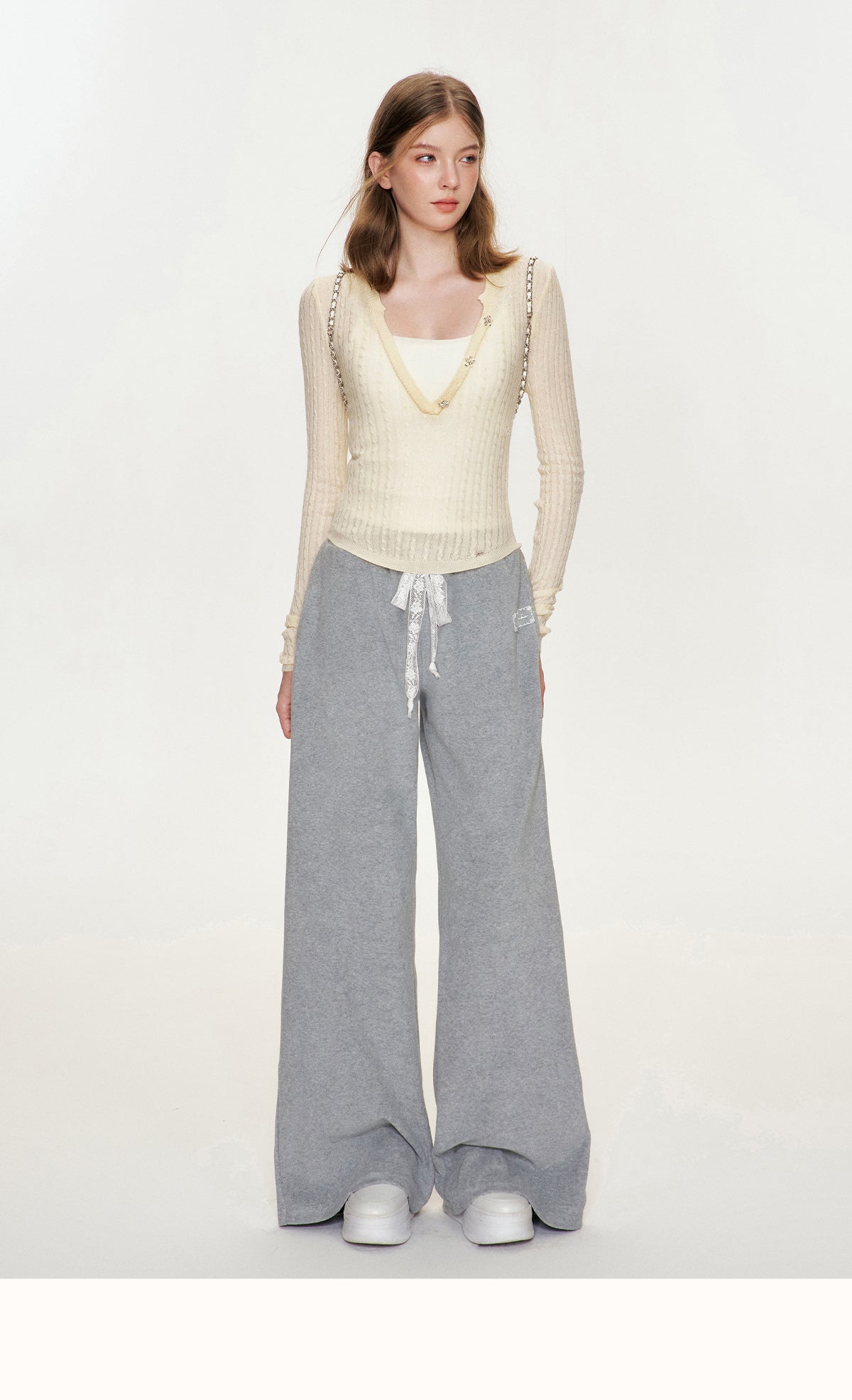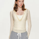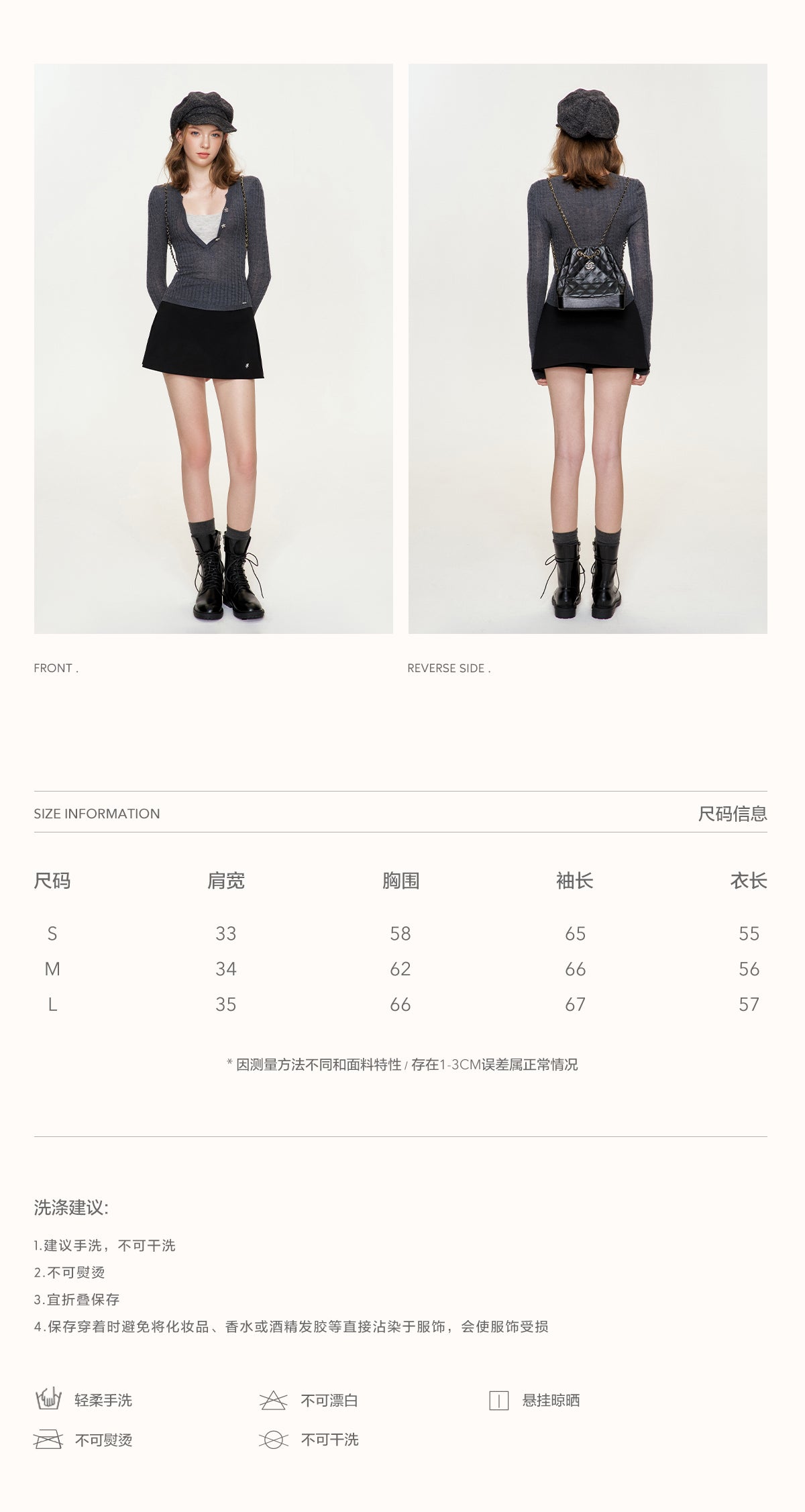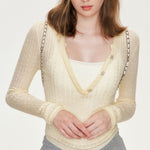 Kroche 2510 撞色花朵扣绞花假两件针织衫 奶黄