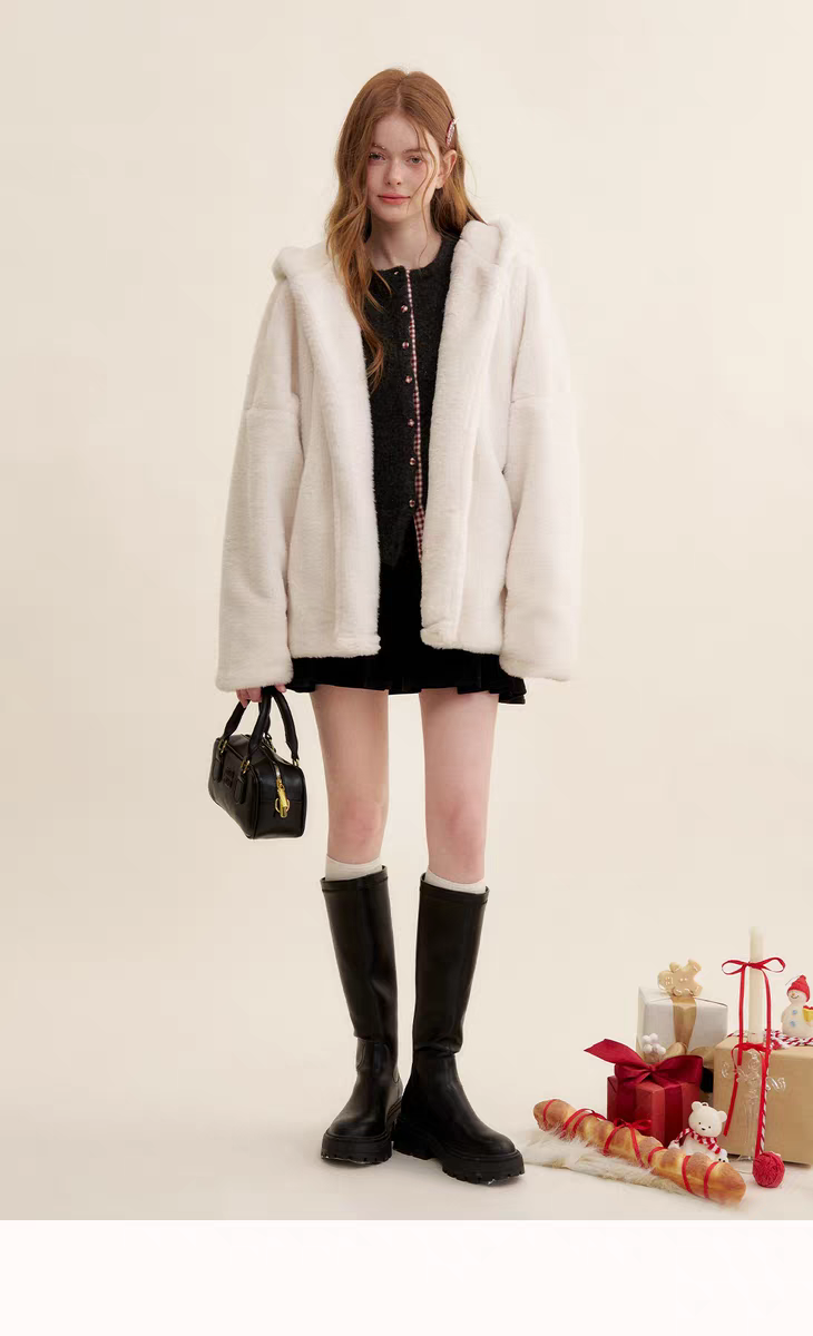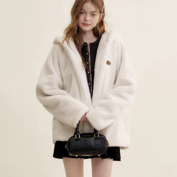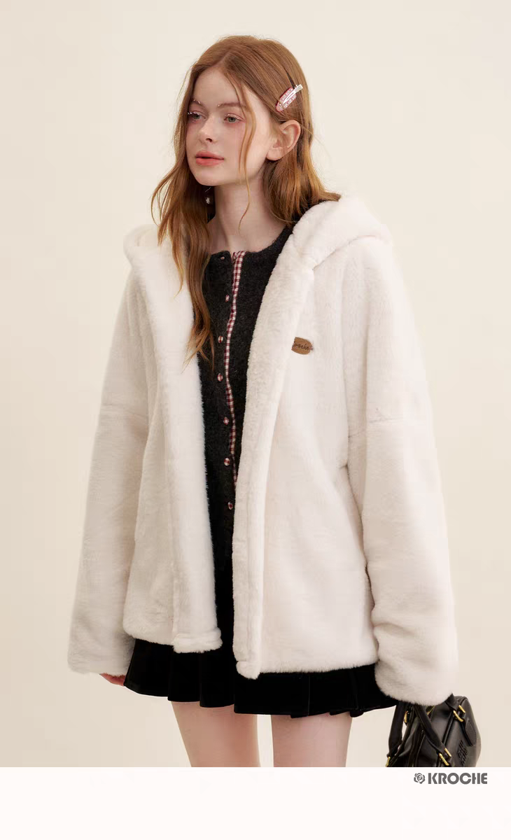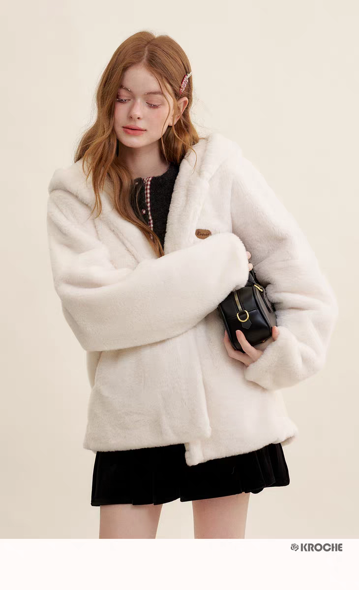 Kroche 2510 环保皮草仿水貂毛连帽外套