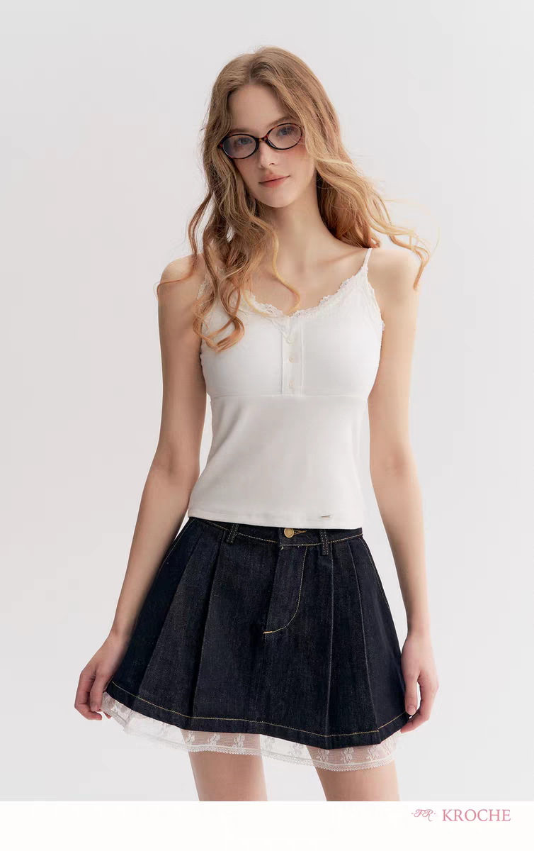 Kroche 2510 蕾丝花边胸垫一体吊带