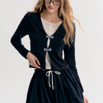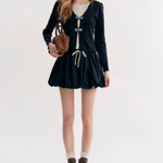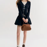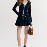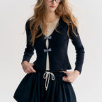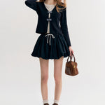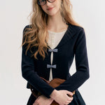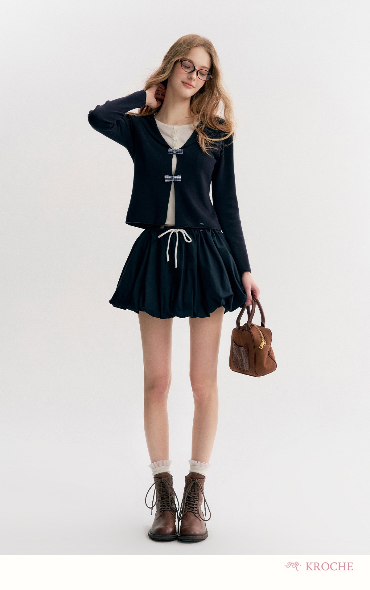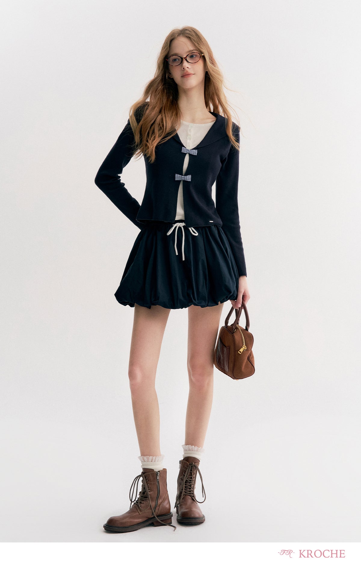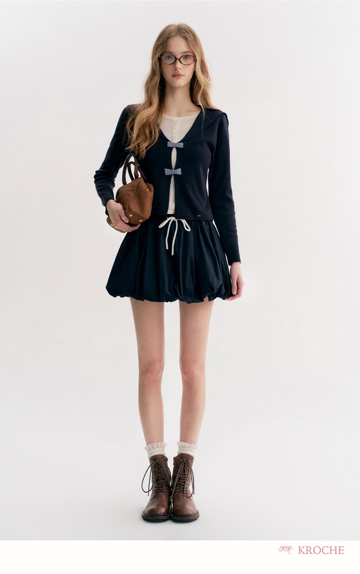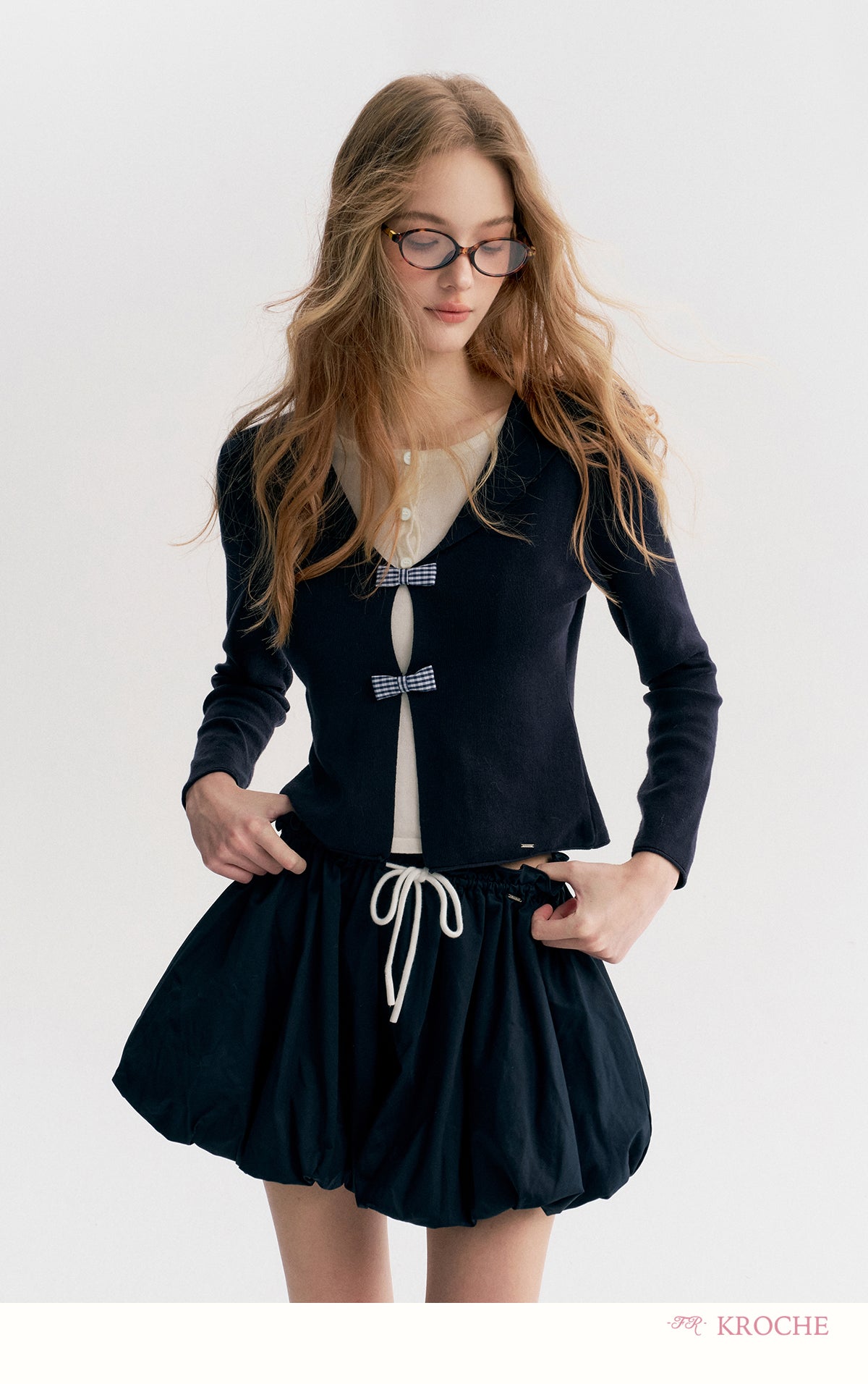 Kroche 2511 格纹蝴蝶结假两件 海军领针织衫上衣