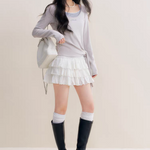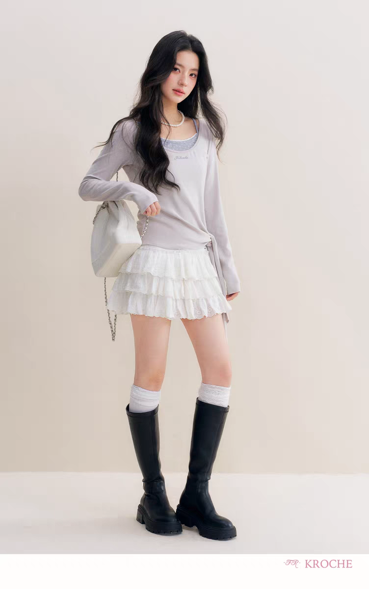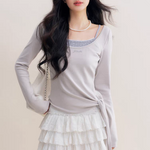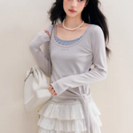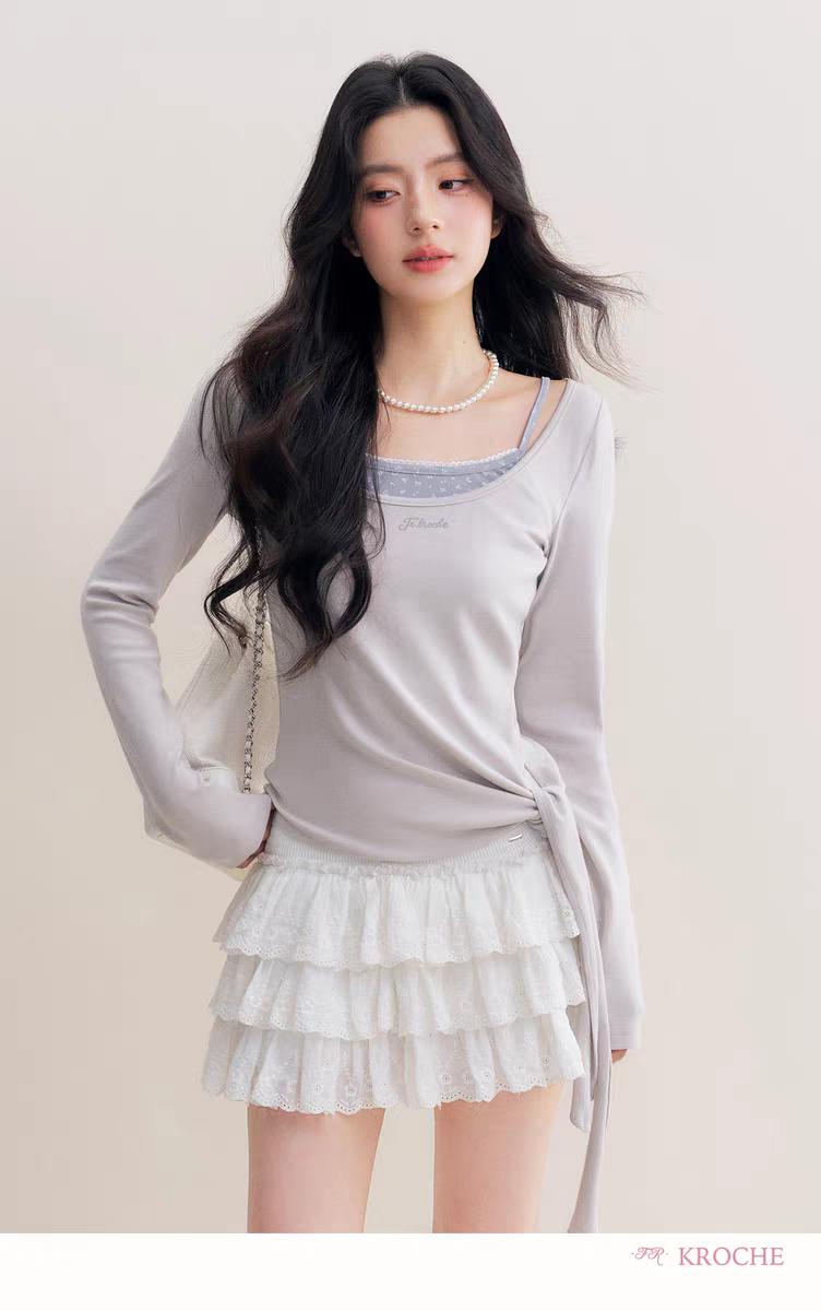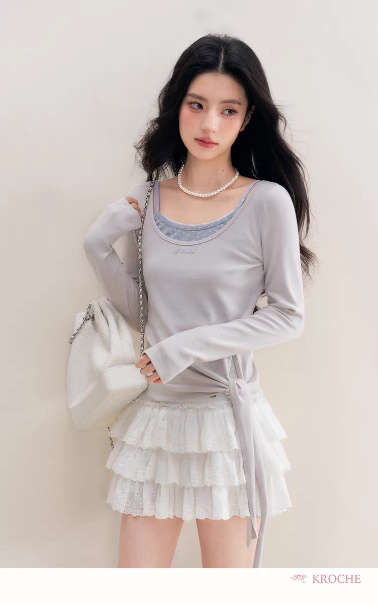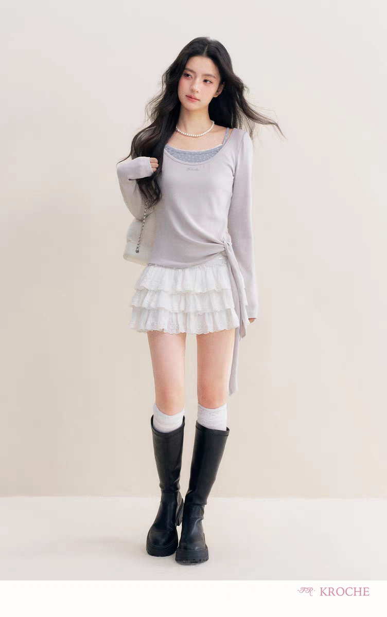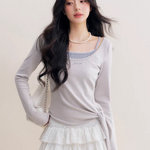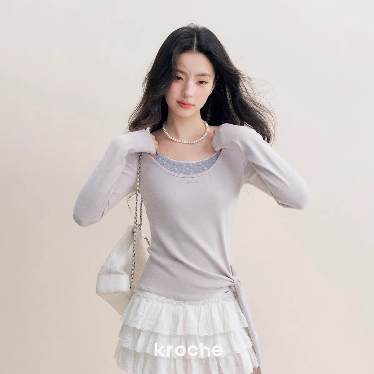 Kroche 2511 真两件大U领绑带打底长袖 雾霾蓝