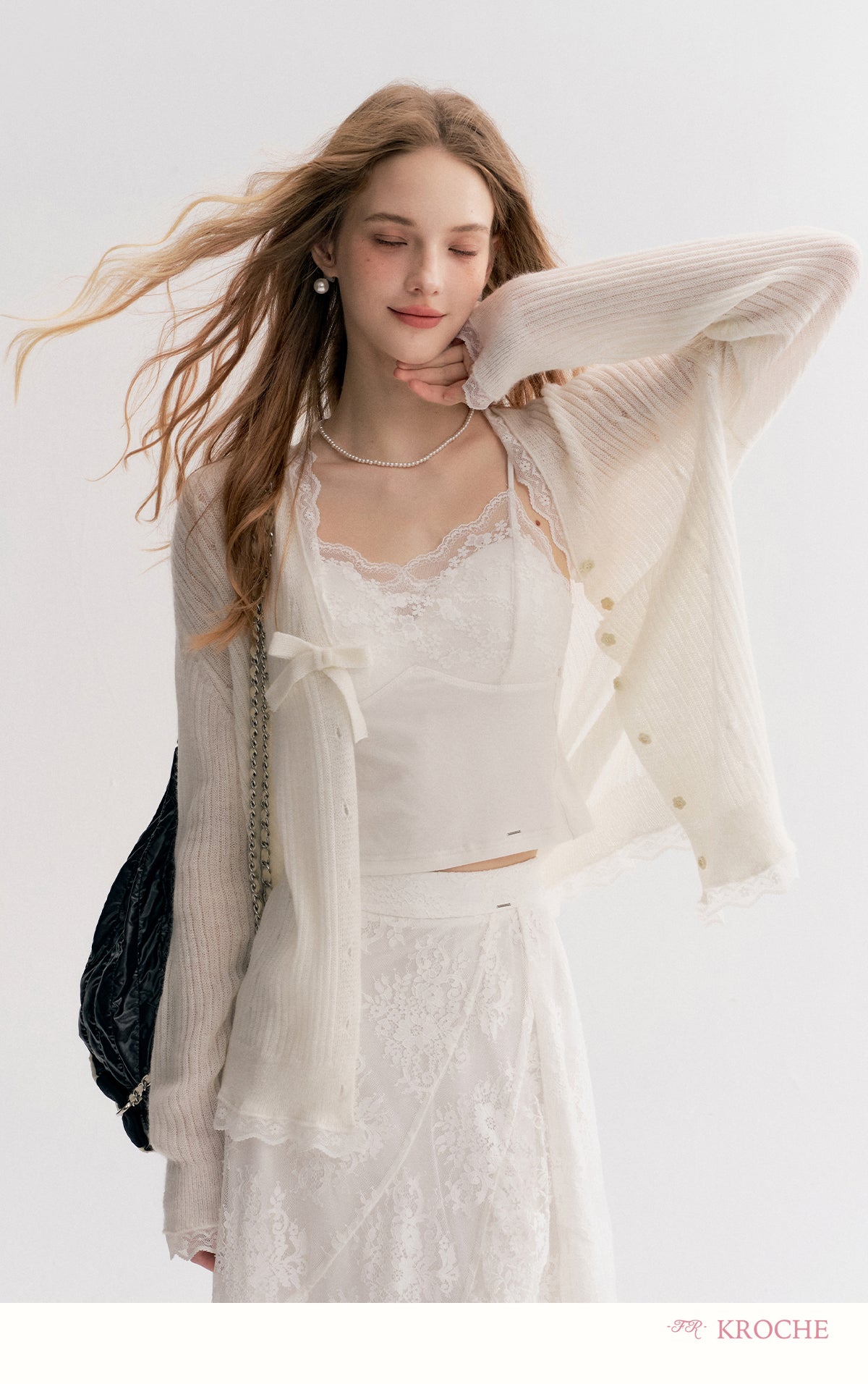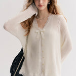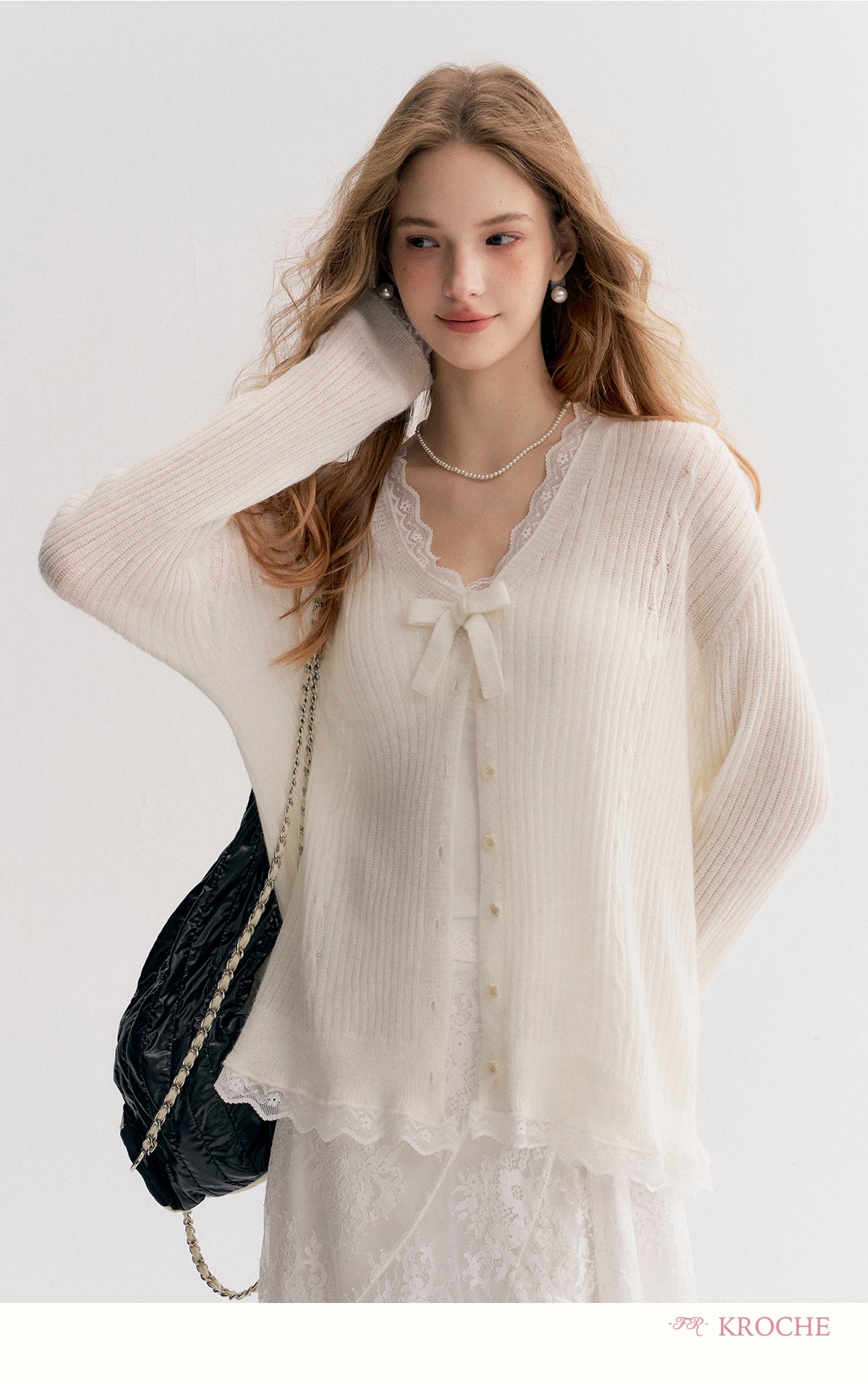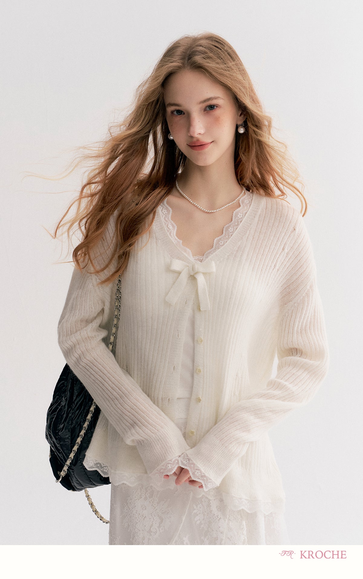 Kroche 2511 羊毛马海毛宽松V领长袖针织开衫