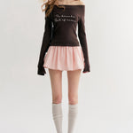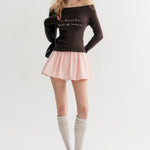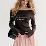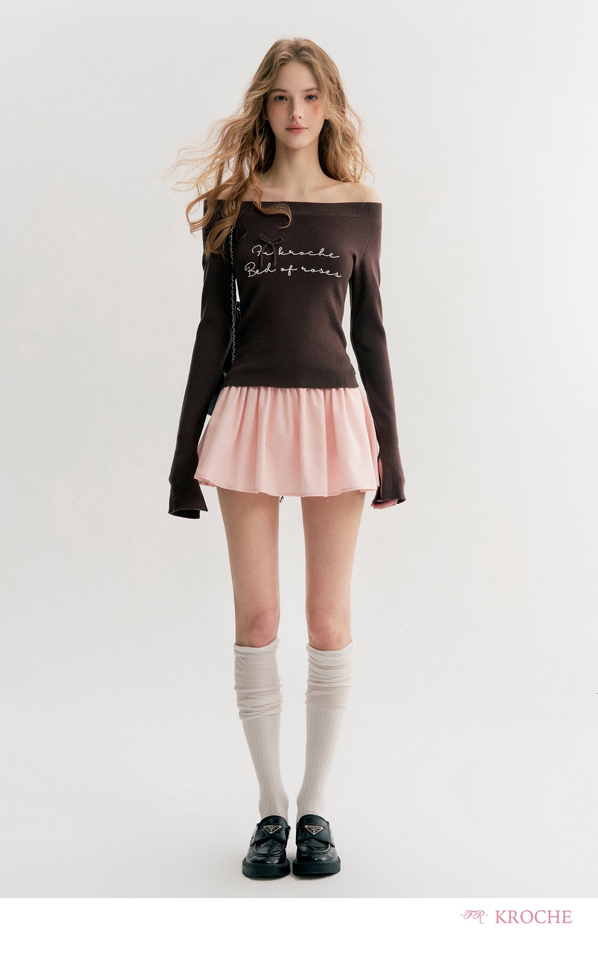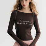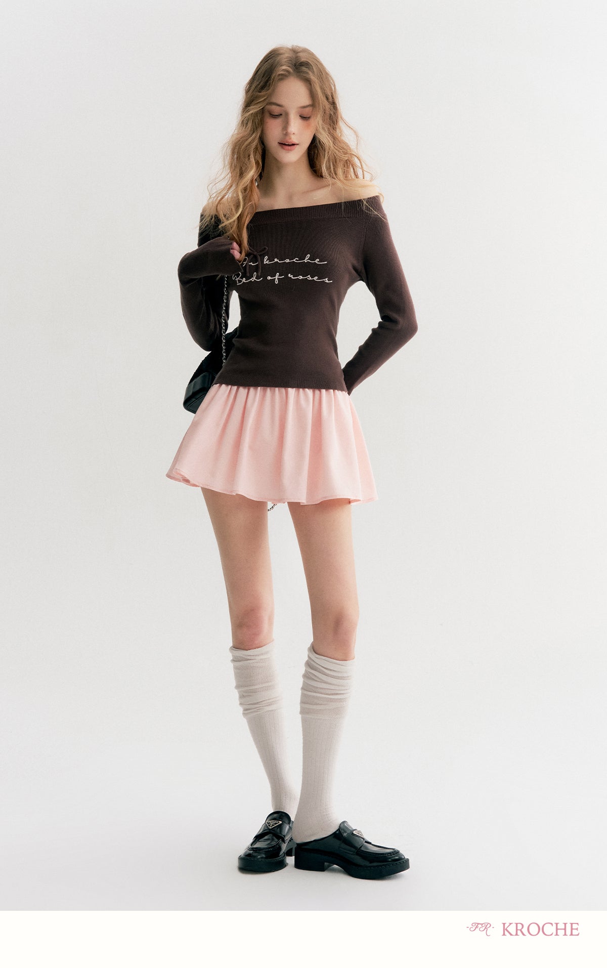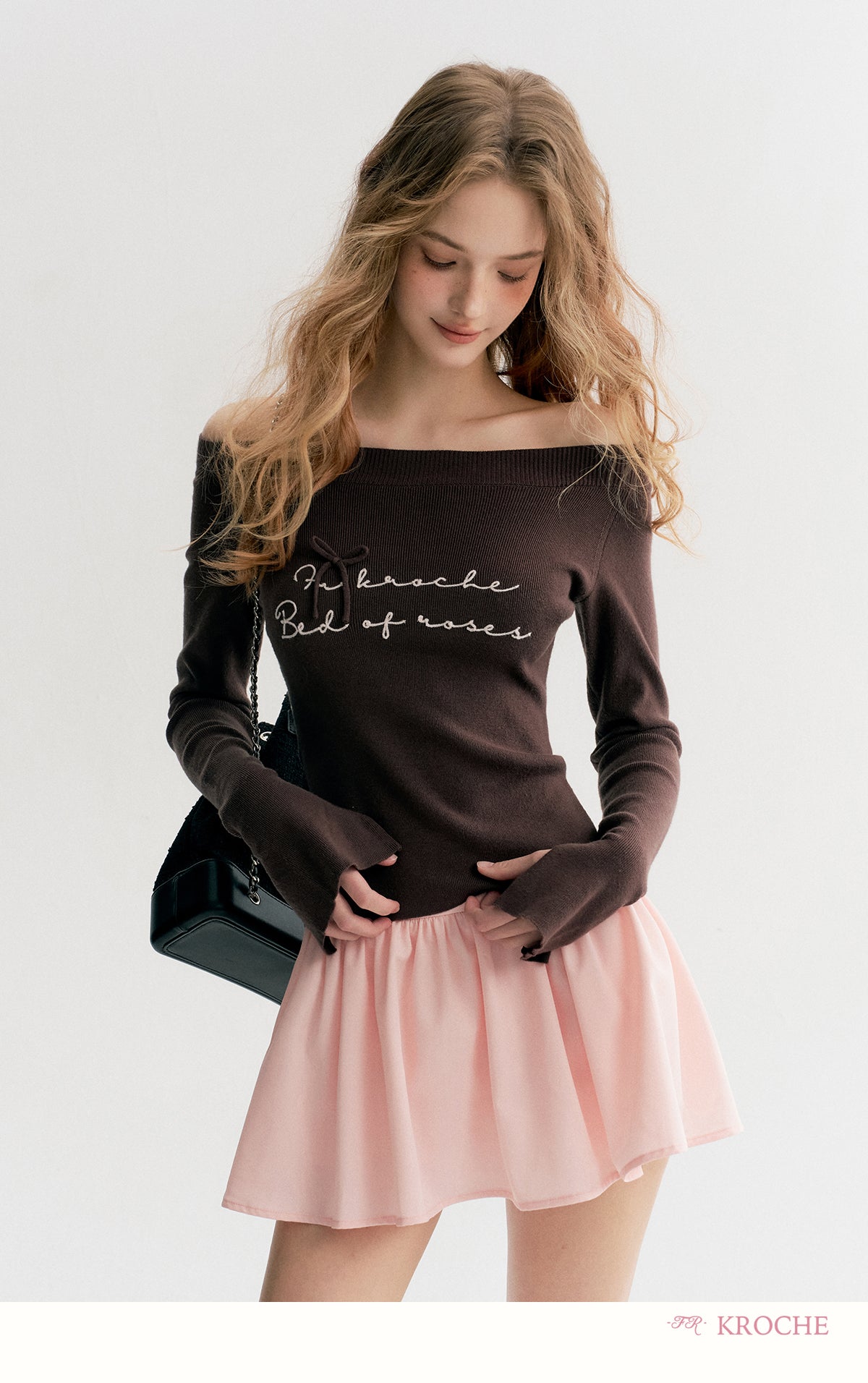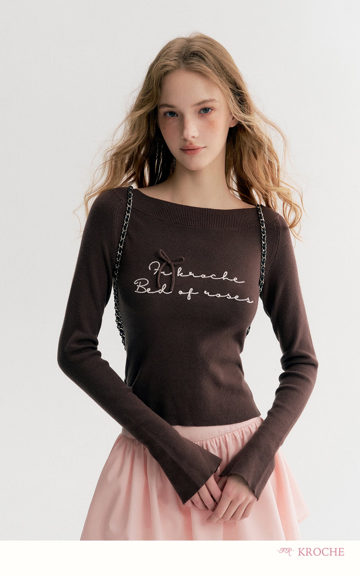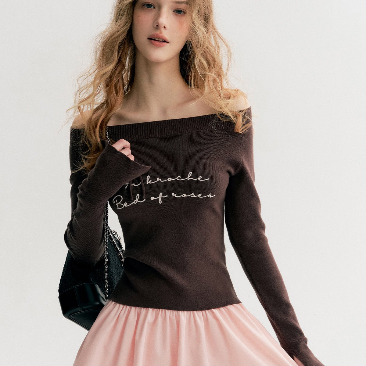 Kroche 2511 重工刺绣 两穿一字领修身长袖针织衫 巧克力