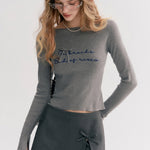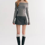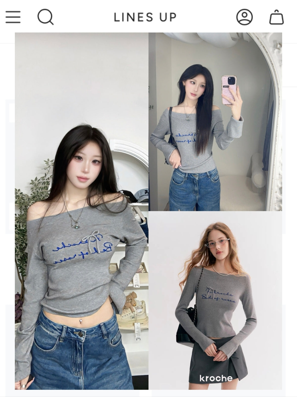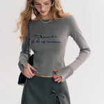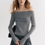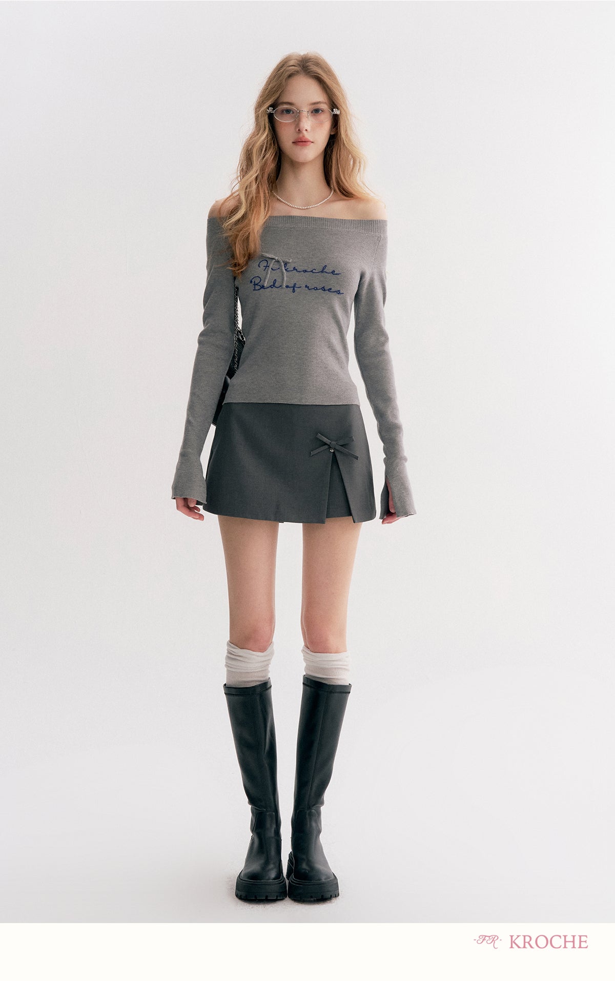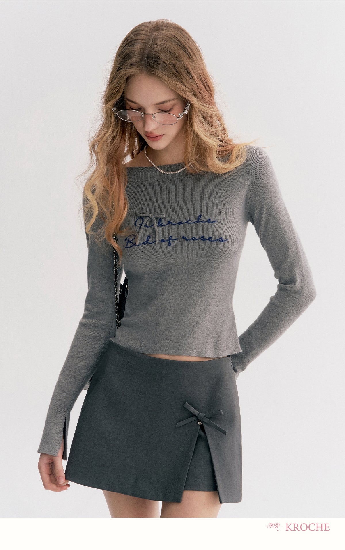 Kroche 2511 重工刺绣 两穿一字领修身长袖针织衫 灰