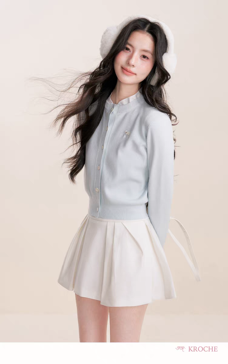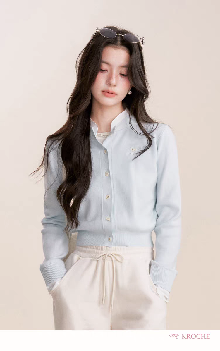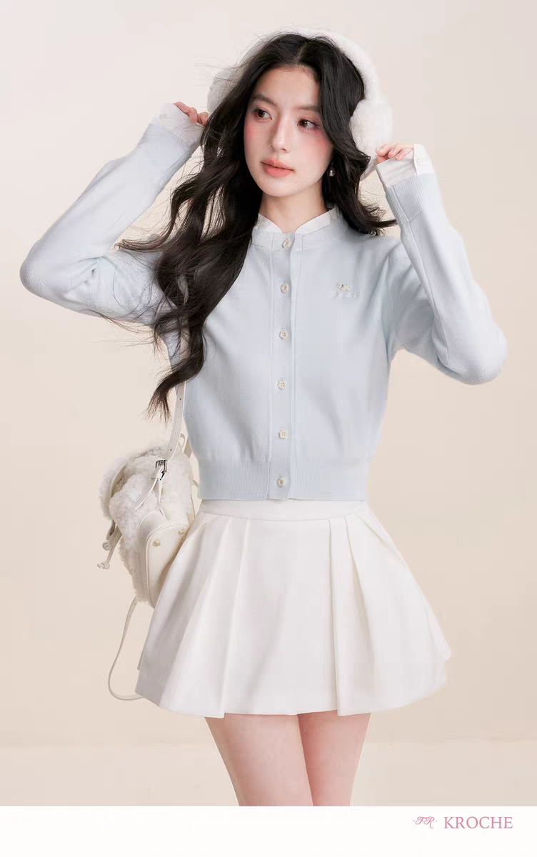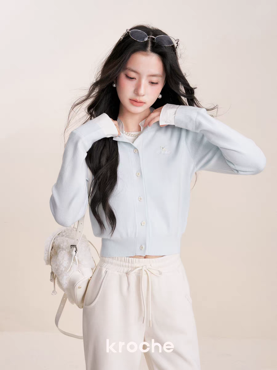 Kroche 2512 假两件拼接植绒小狗刺绣针织衫