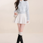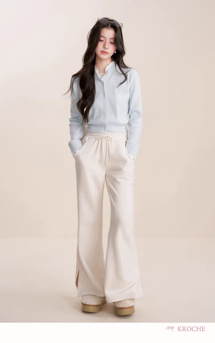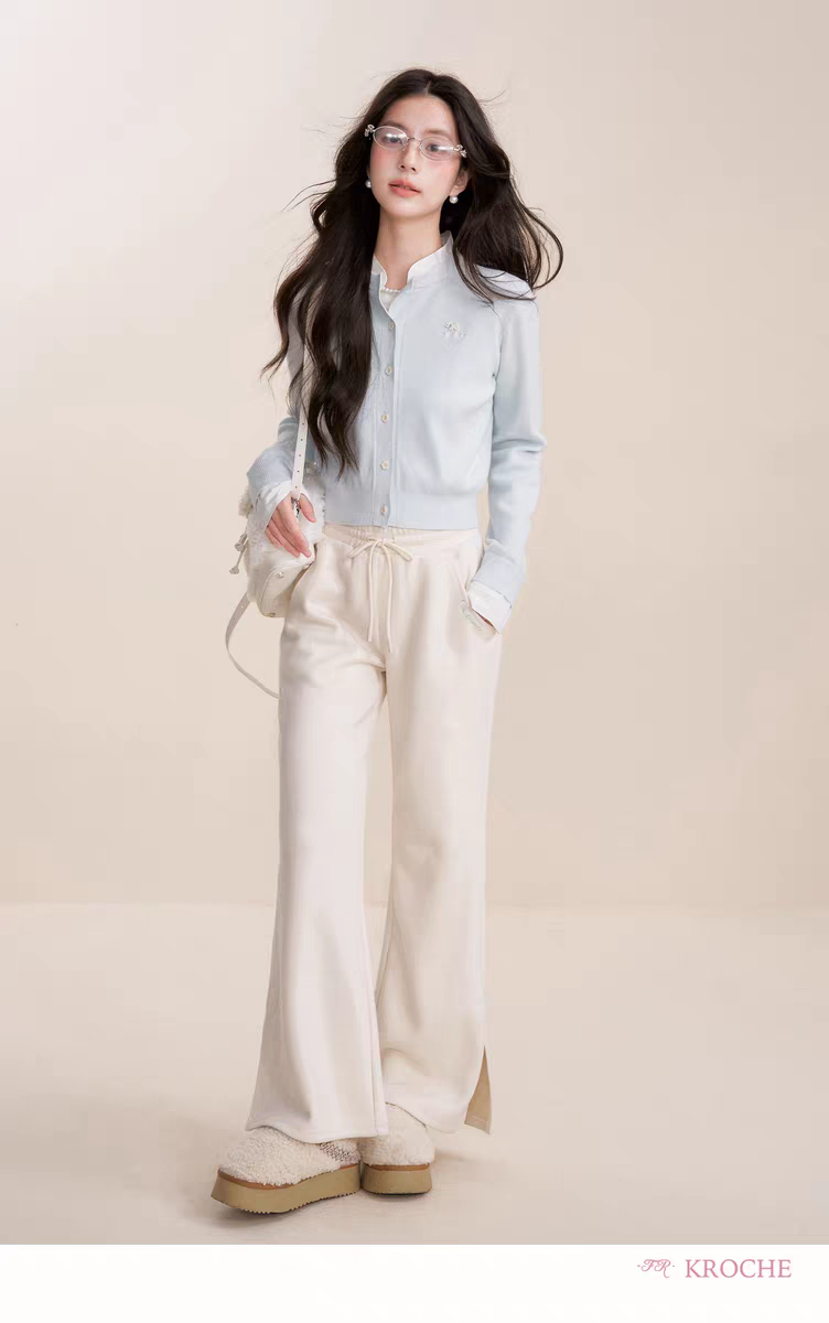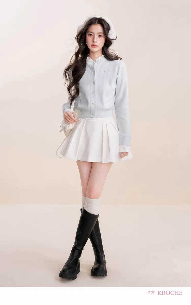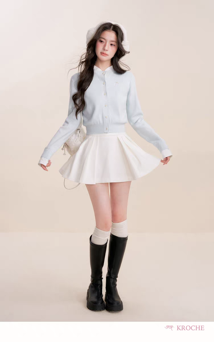 Kroche 2512 假两件拼接植绒小狗刺绣针织衫