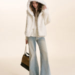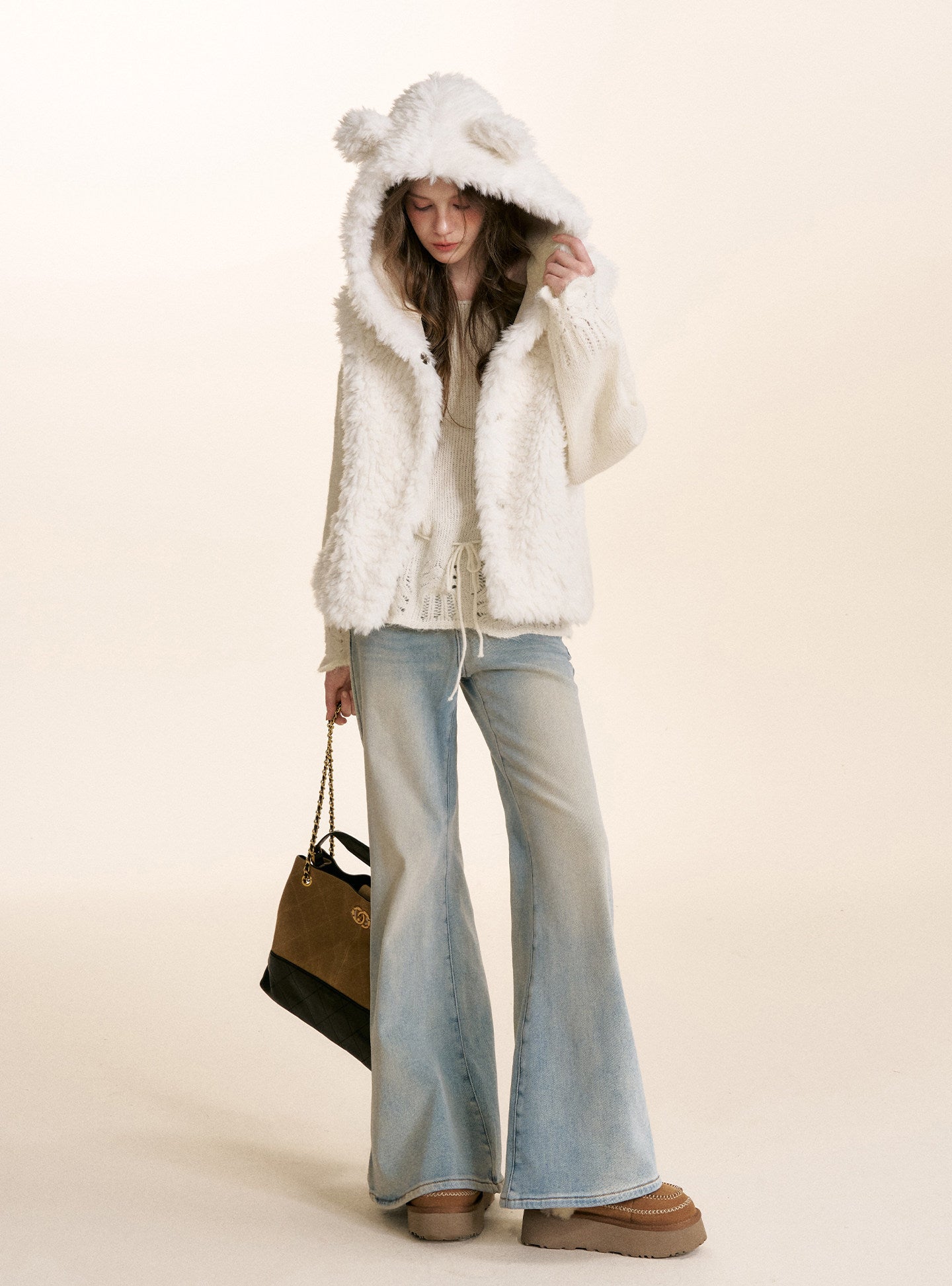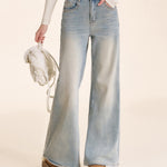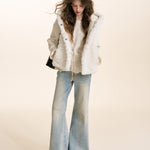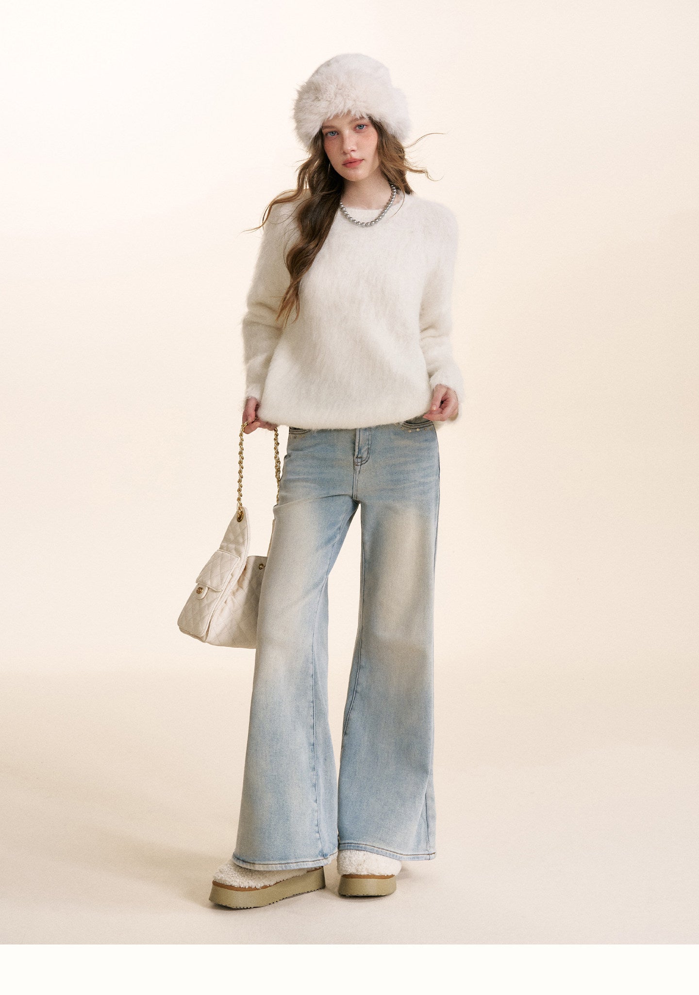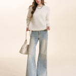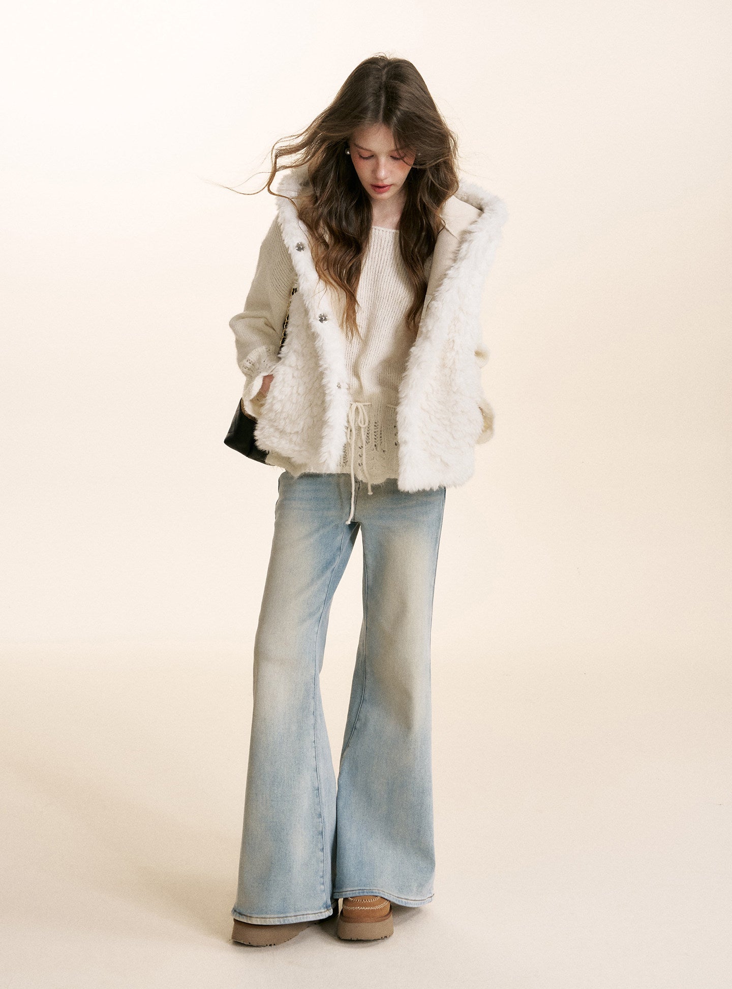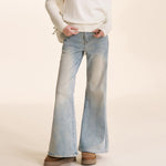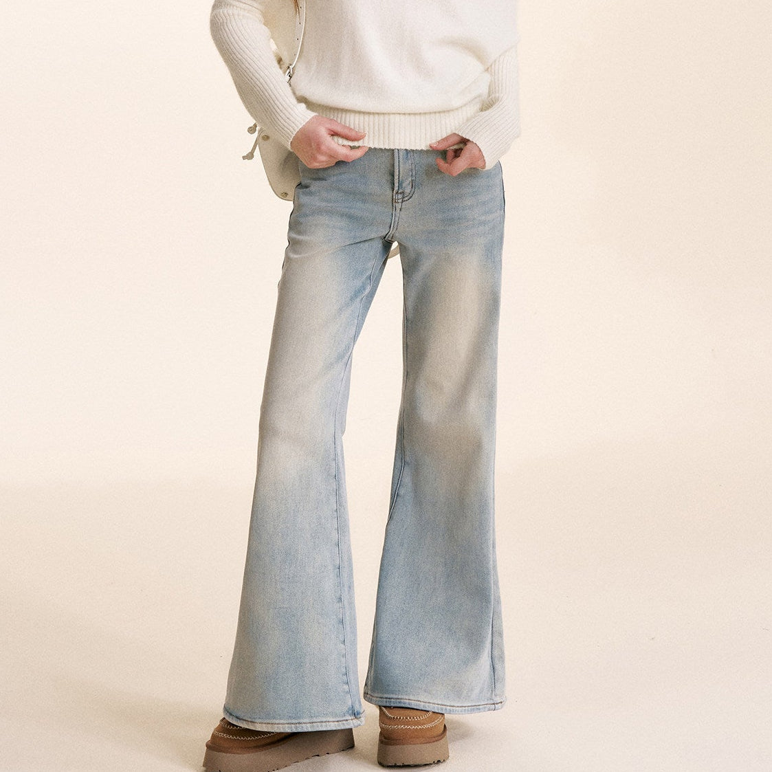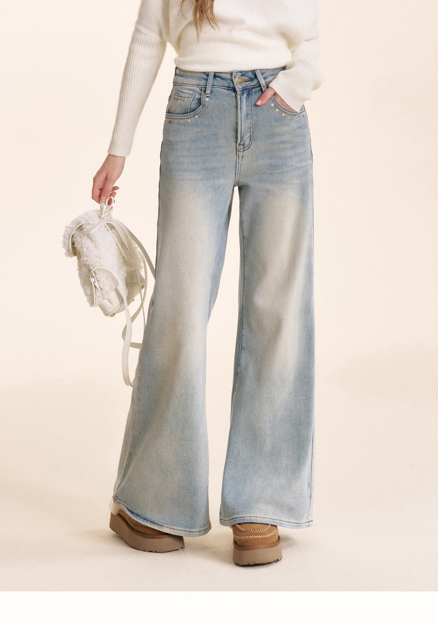 Kroche 2512 手工钉五瓣花亮片加绒微喇牛仔裤