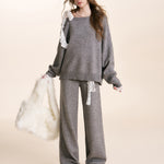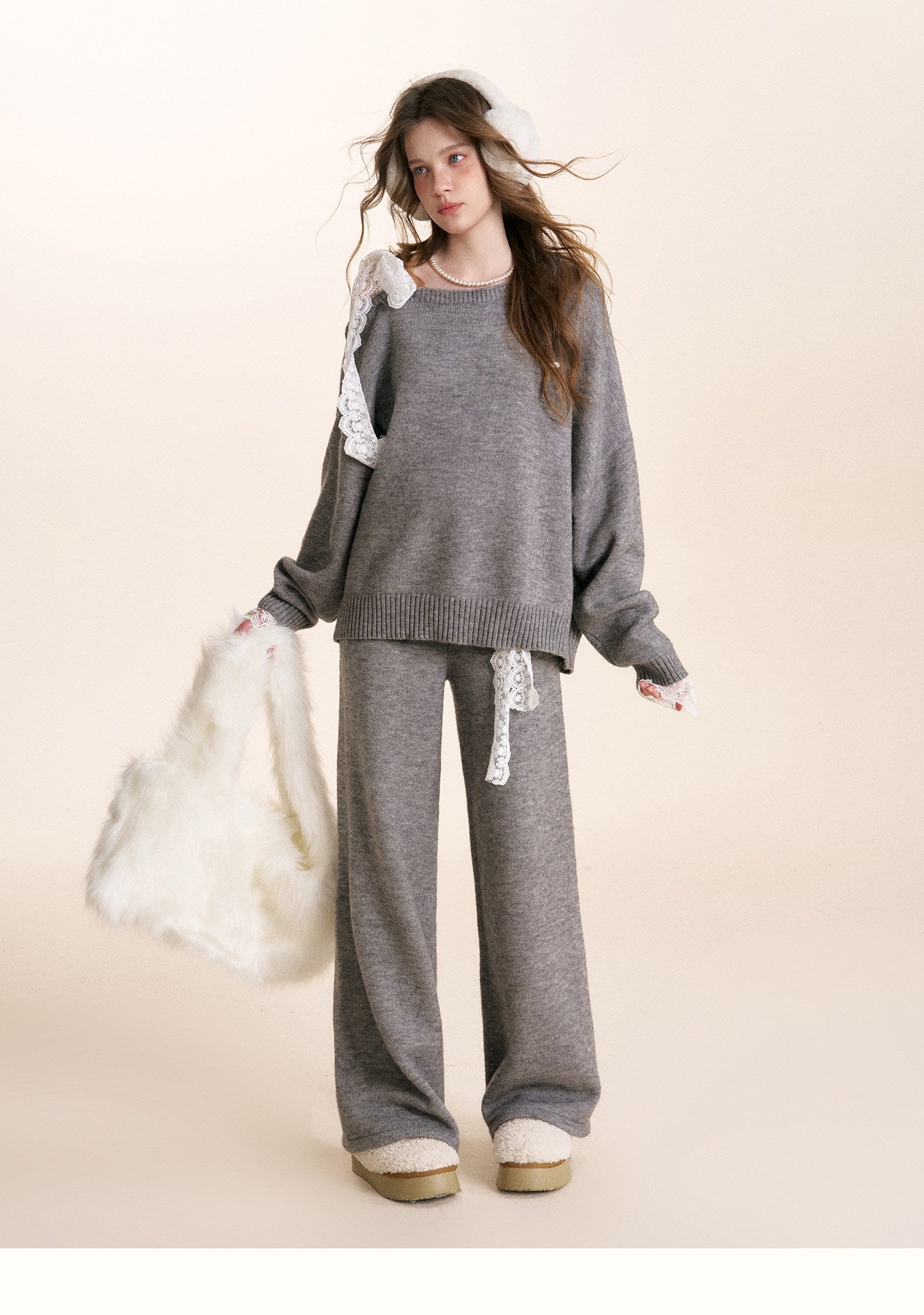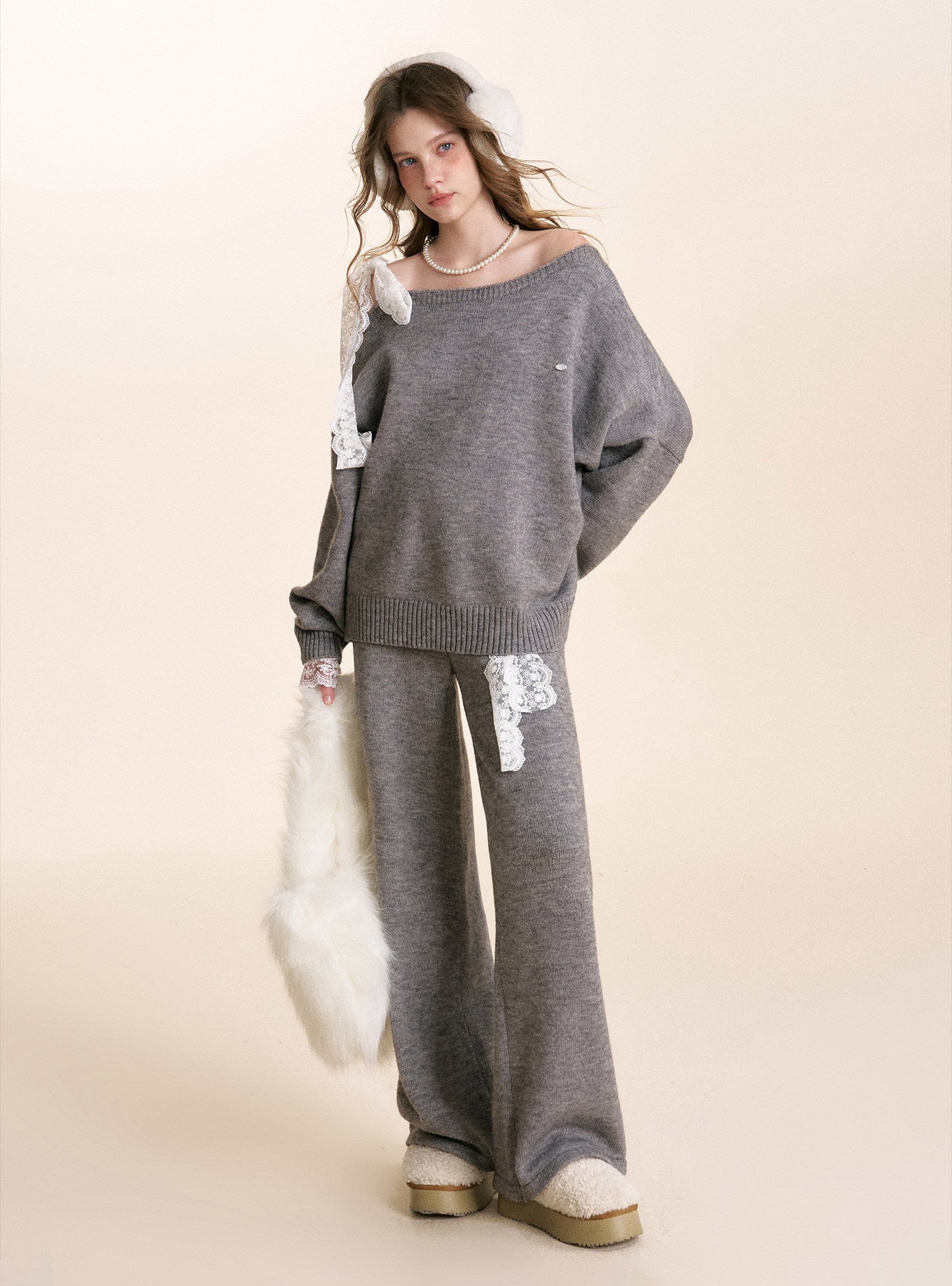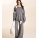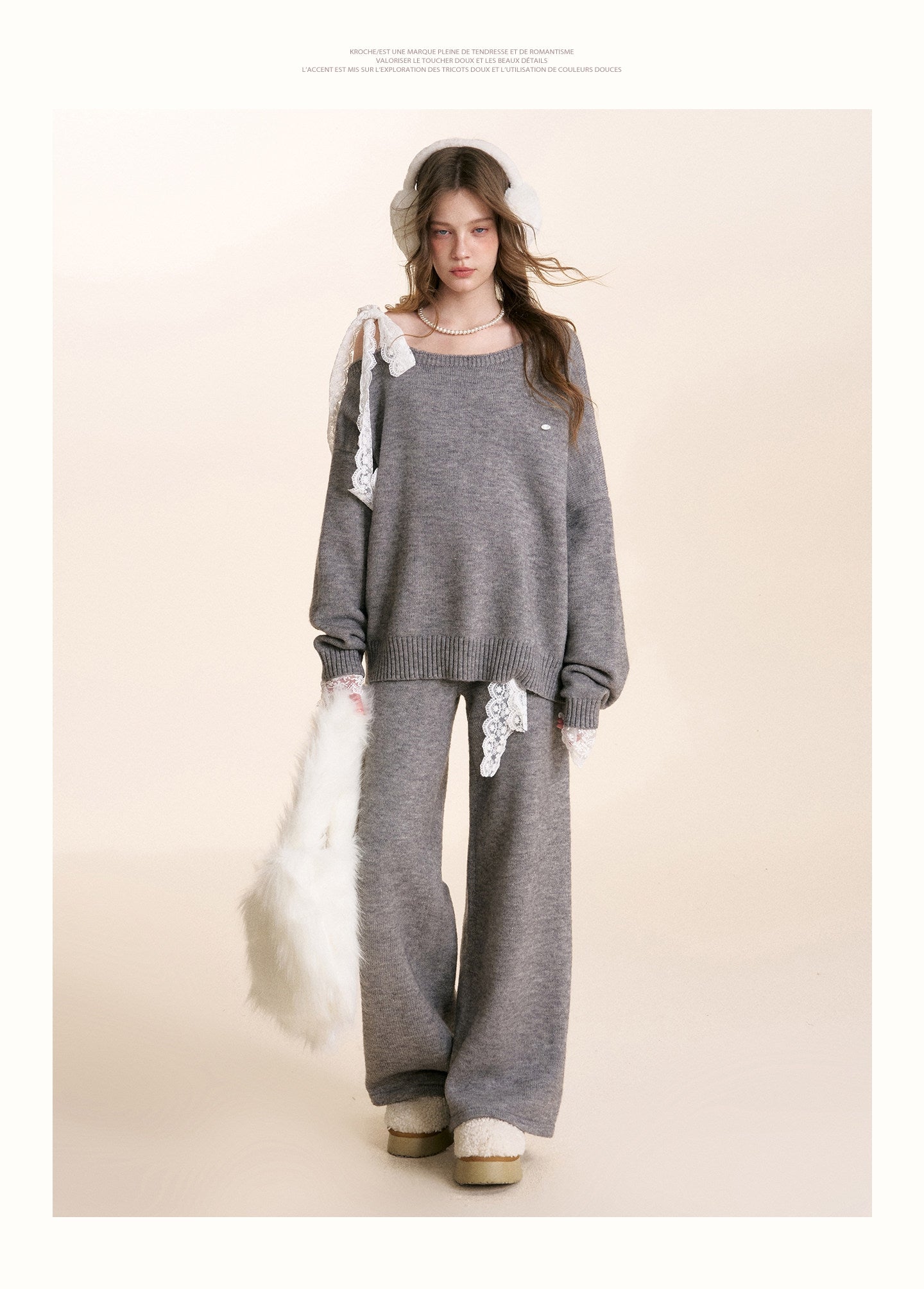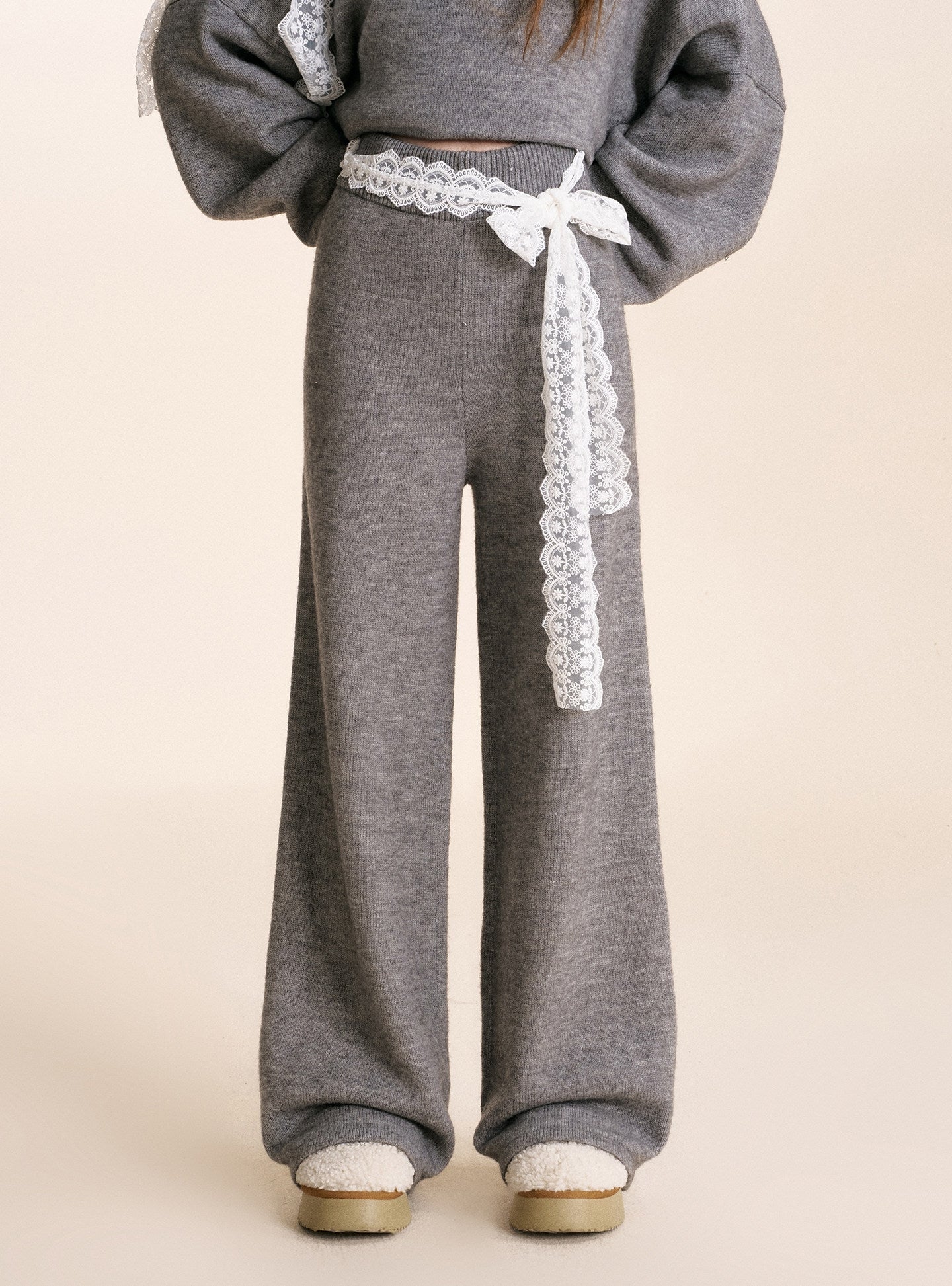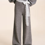 Kroche 2601 蕾丝腰头系带针织阔腿裤