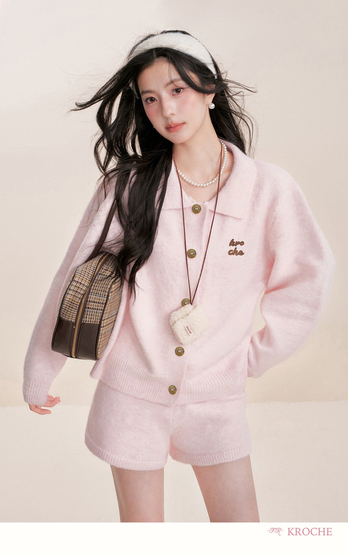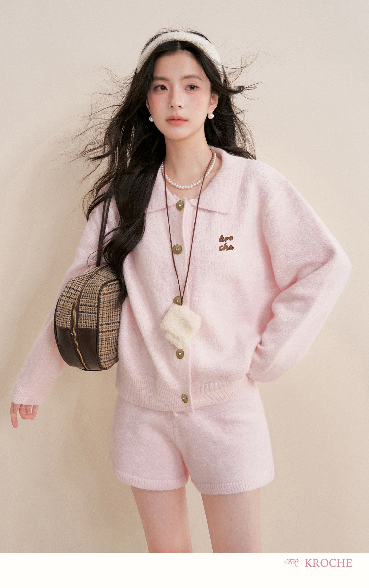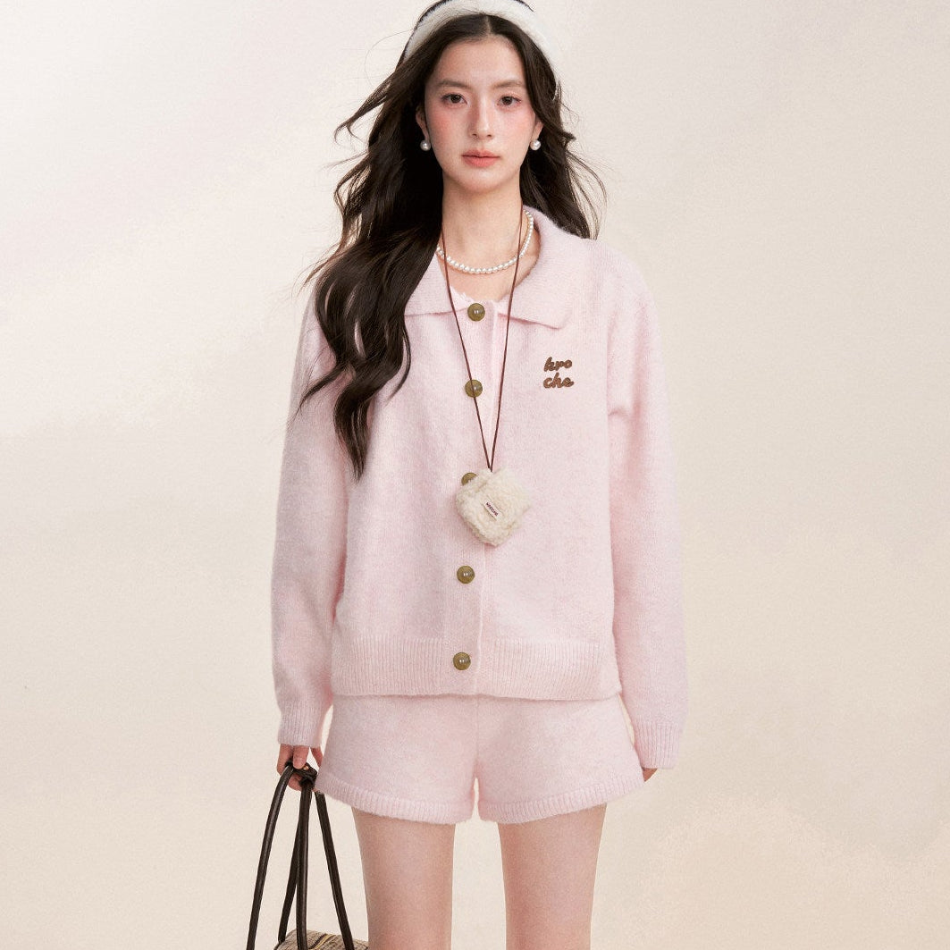 Kroche 2602 撞色贴布绣翻领毛衣+毛织短裤
