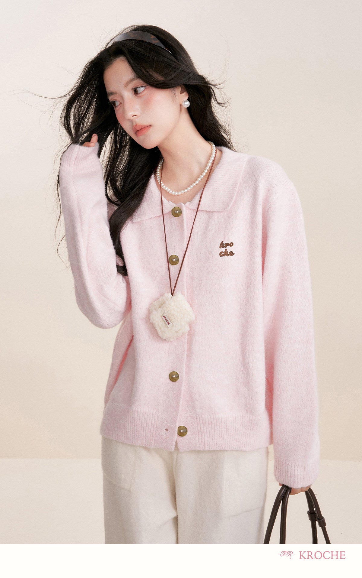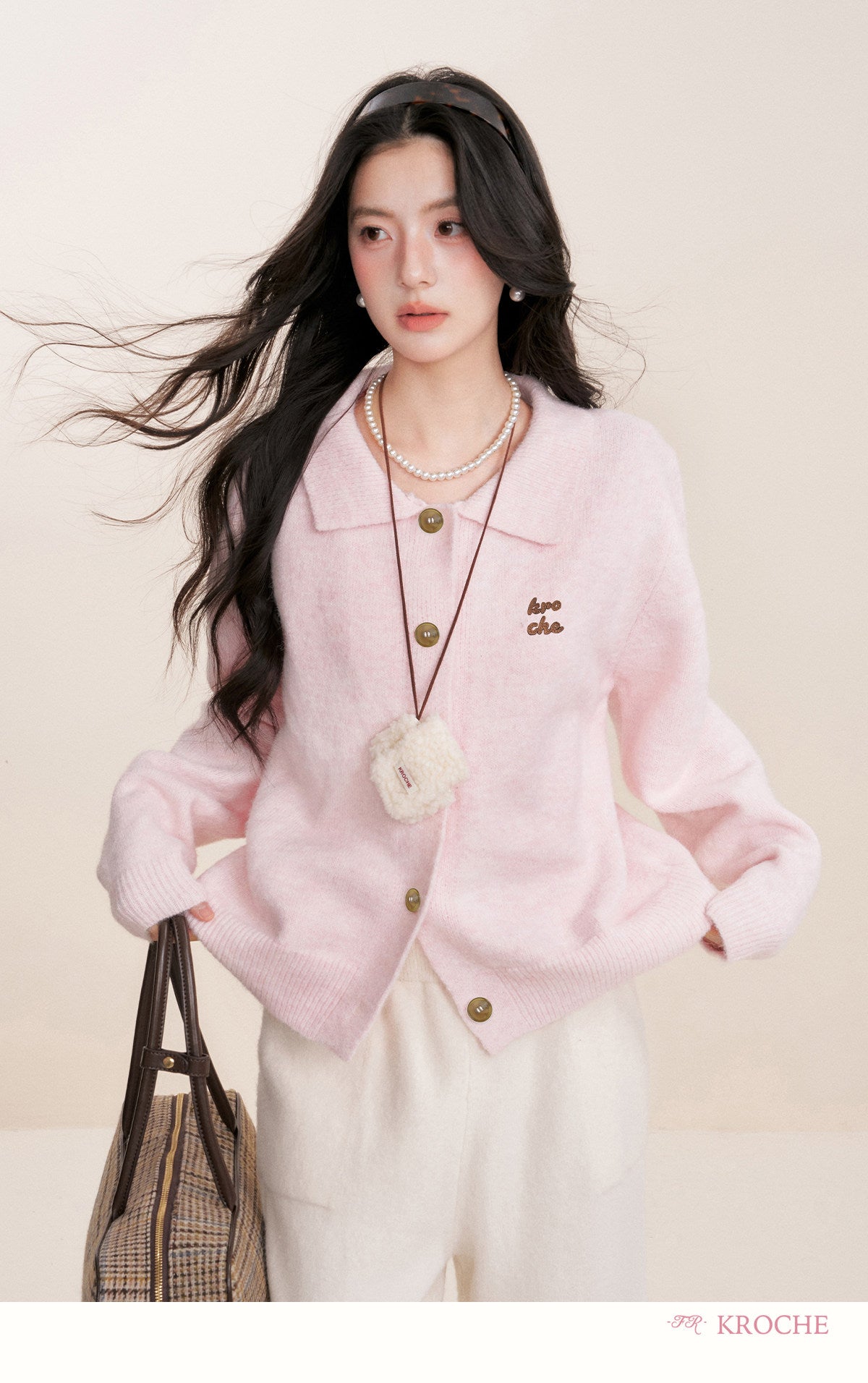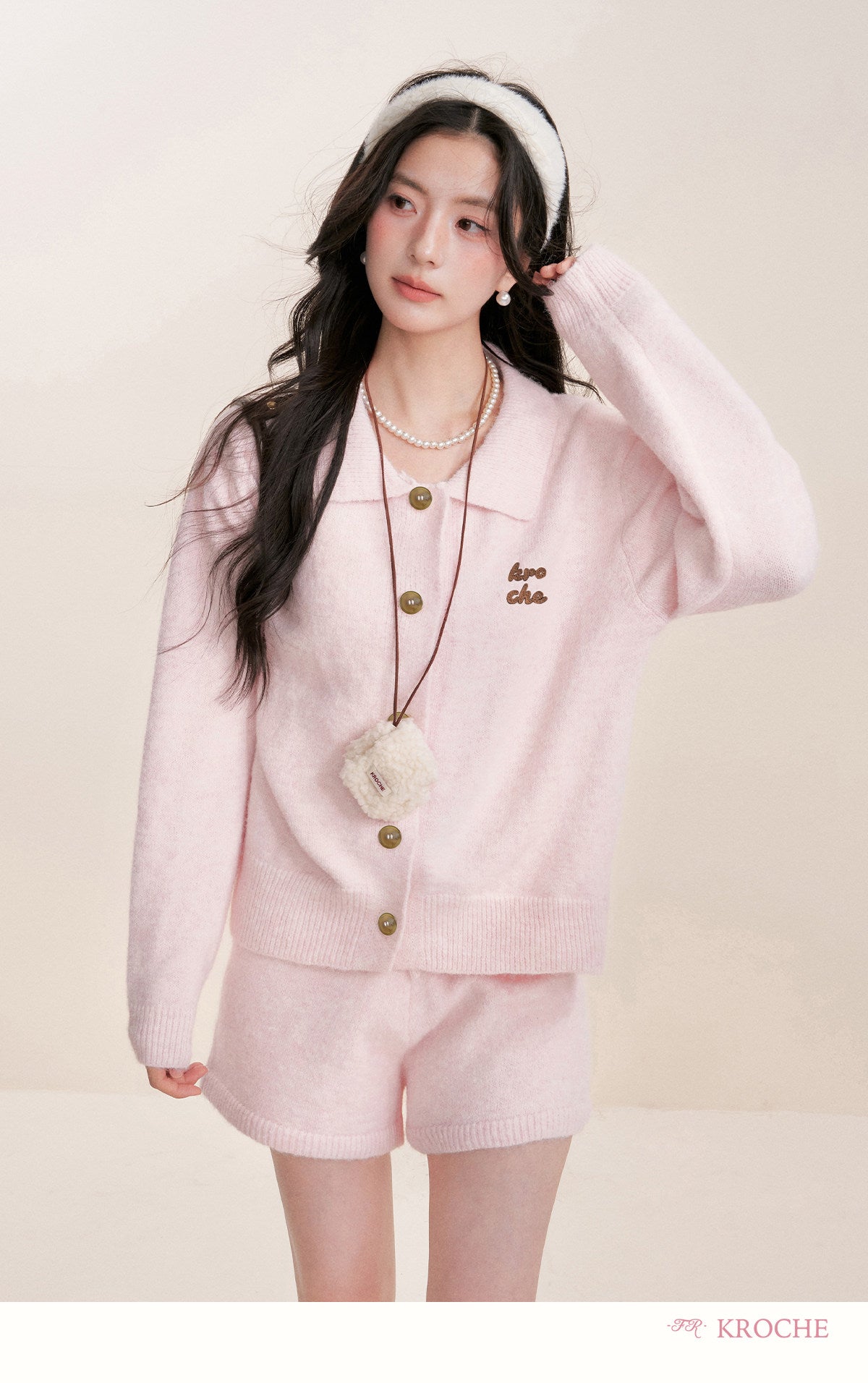 Kroche 2602 撞色贴布绣翻领毛衣+毛织短裤