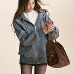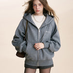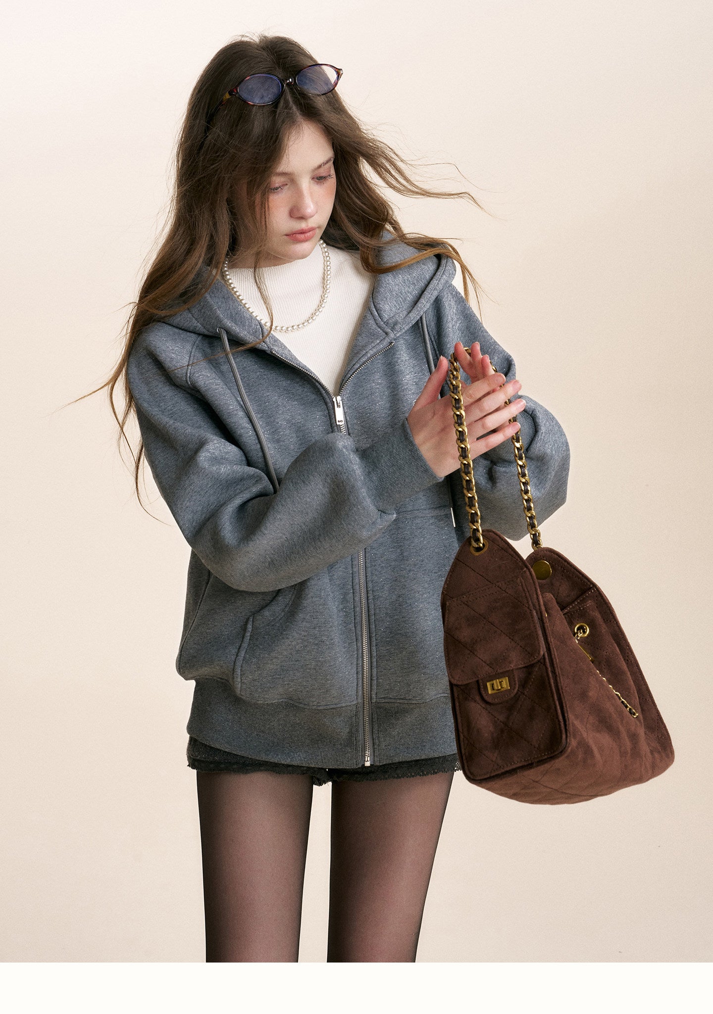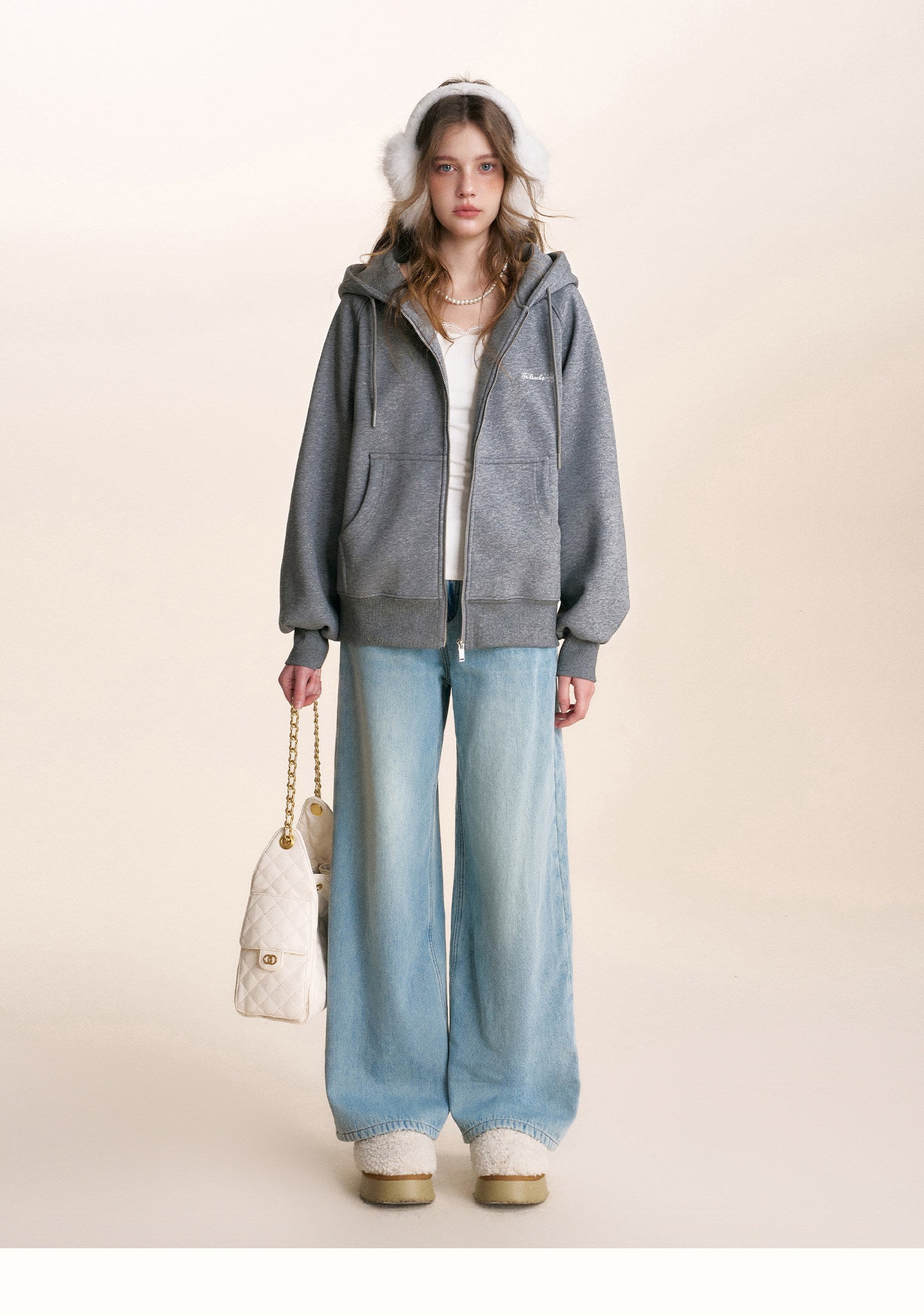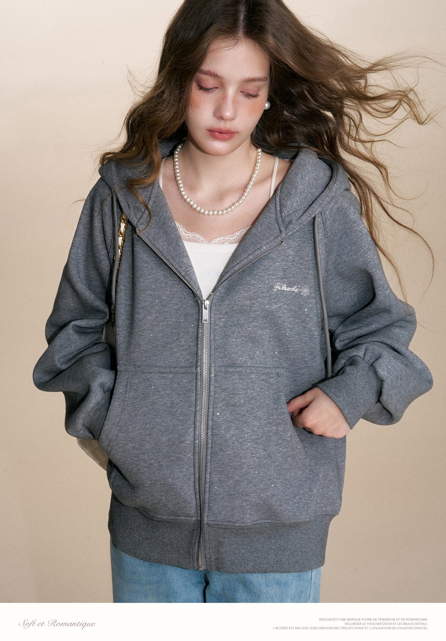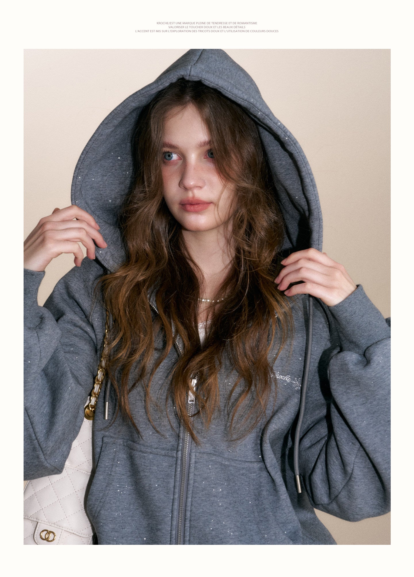 Kroche 2602 细闪复合绒 雪花刺绣宽松连帽卫衣