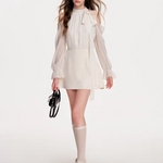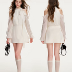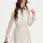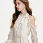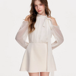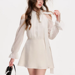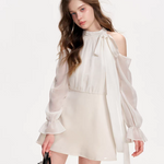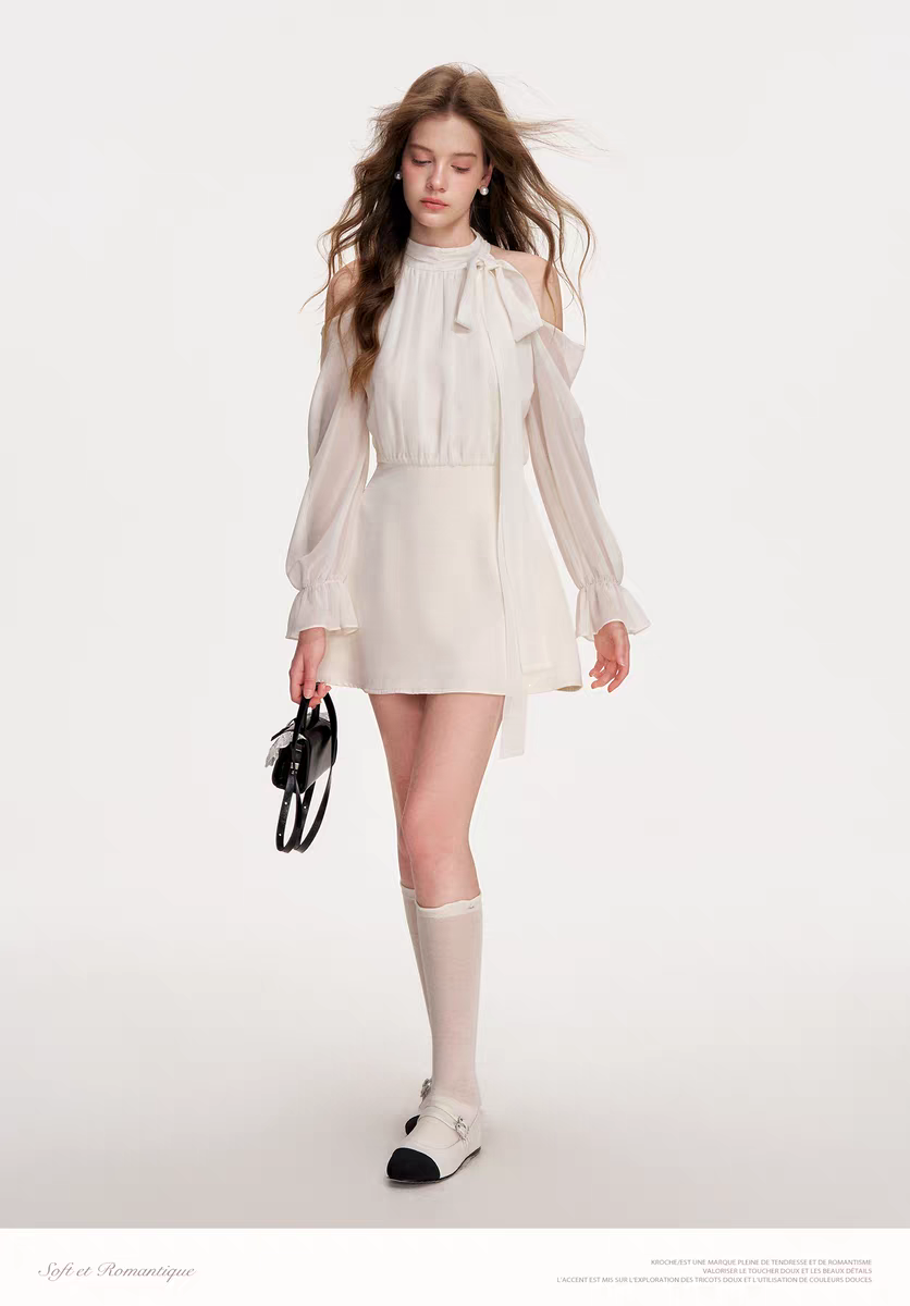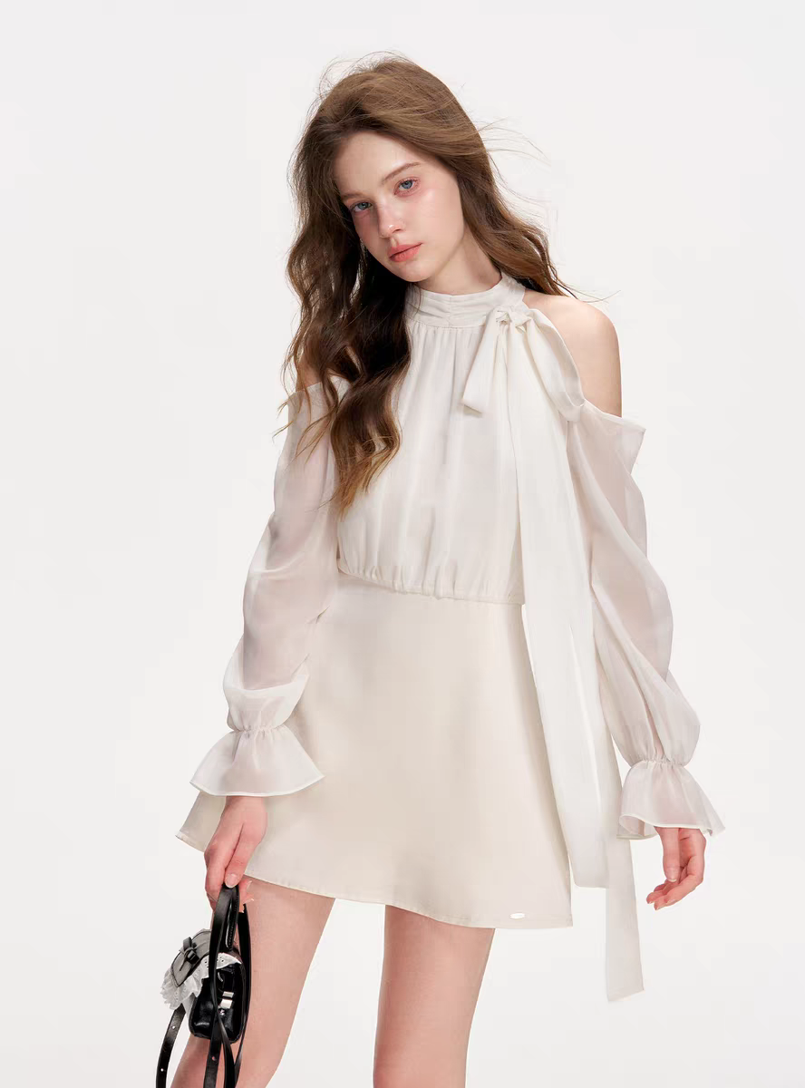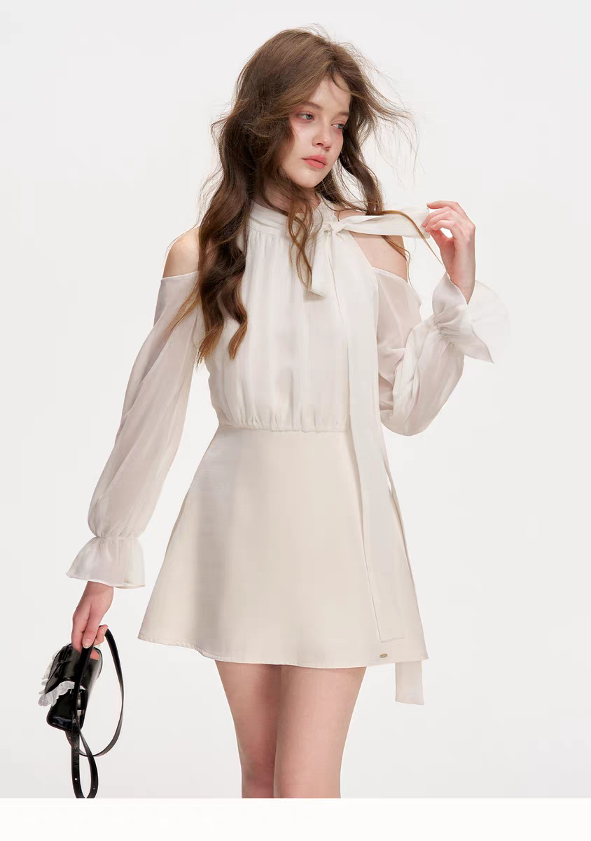 Kroche 2604 缎面拼接露肩收腰连衣裙