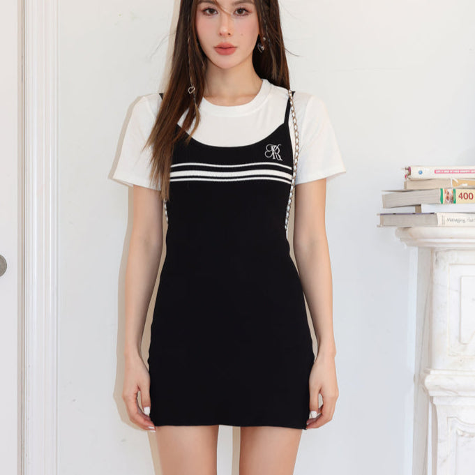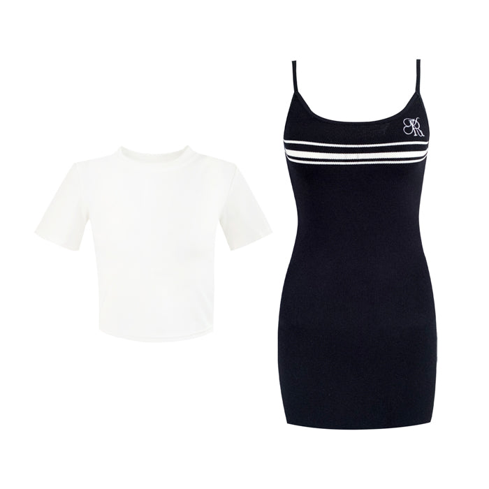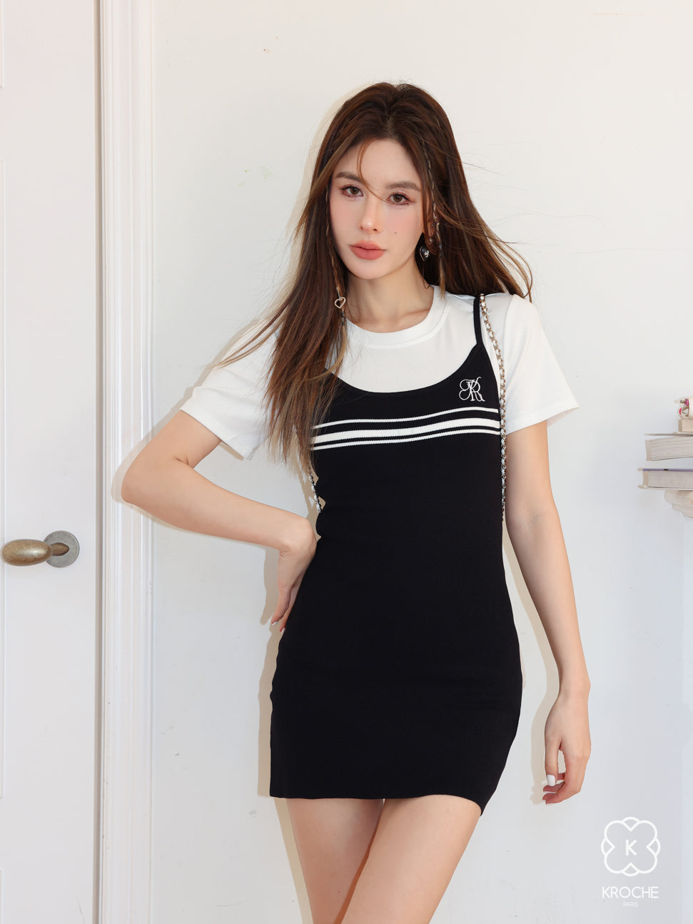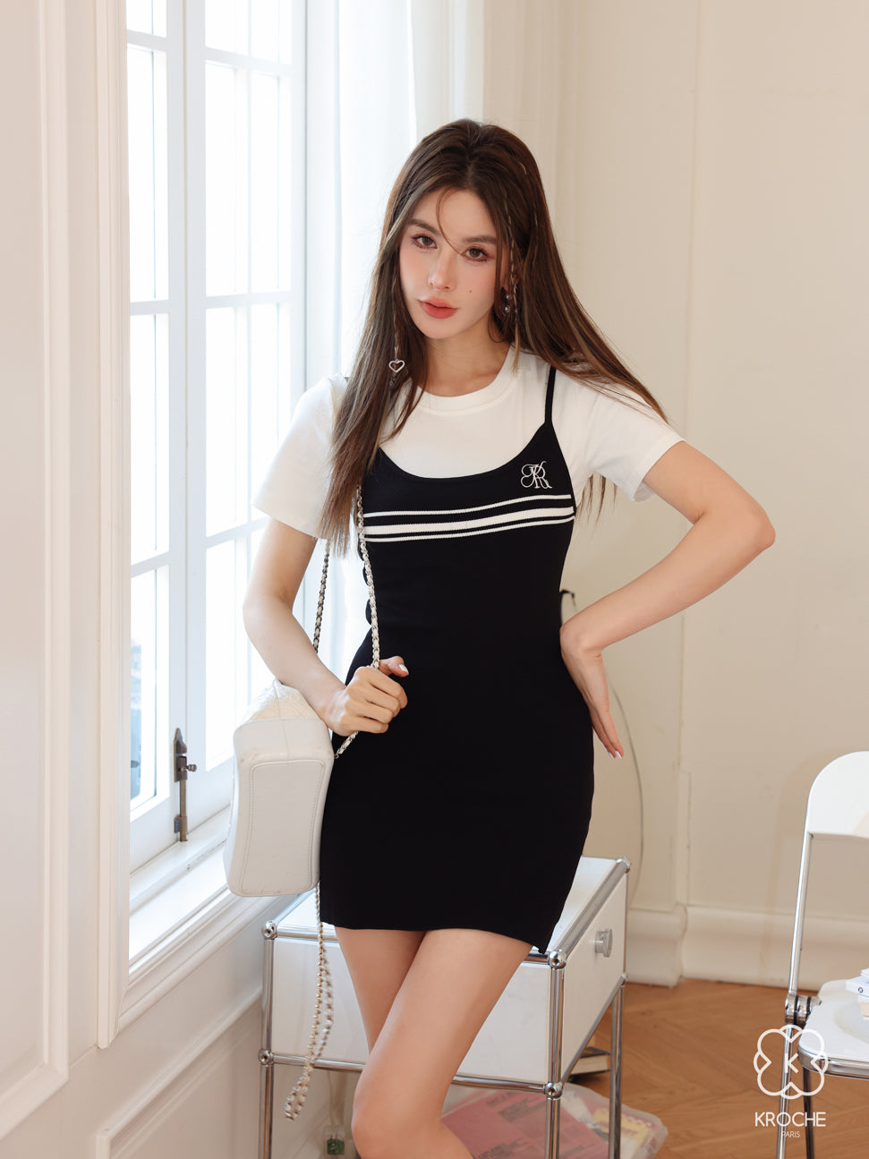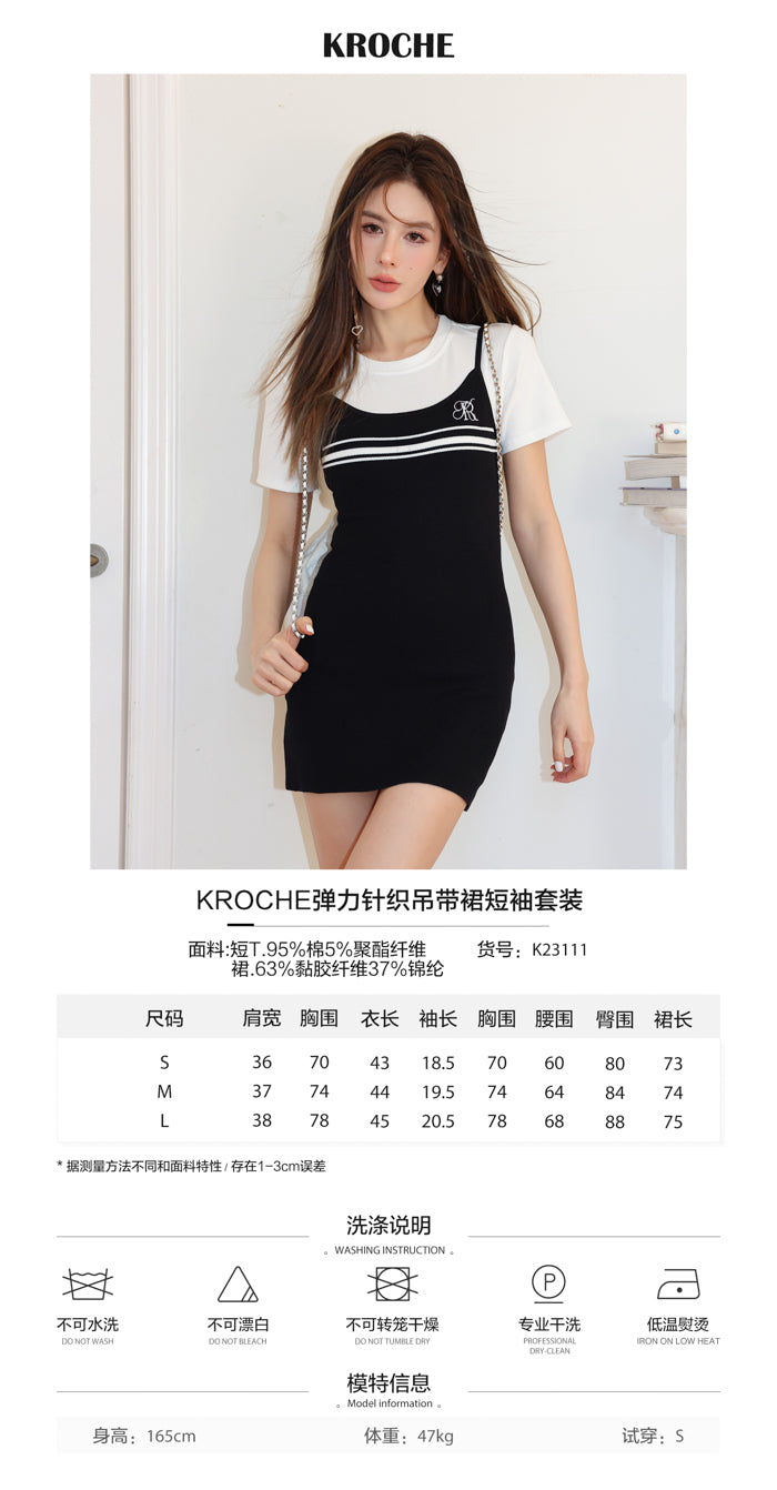 Kroche SS2304 弹力针织吊带裙短袖套装