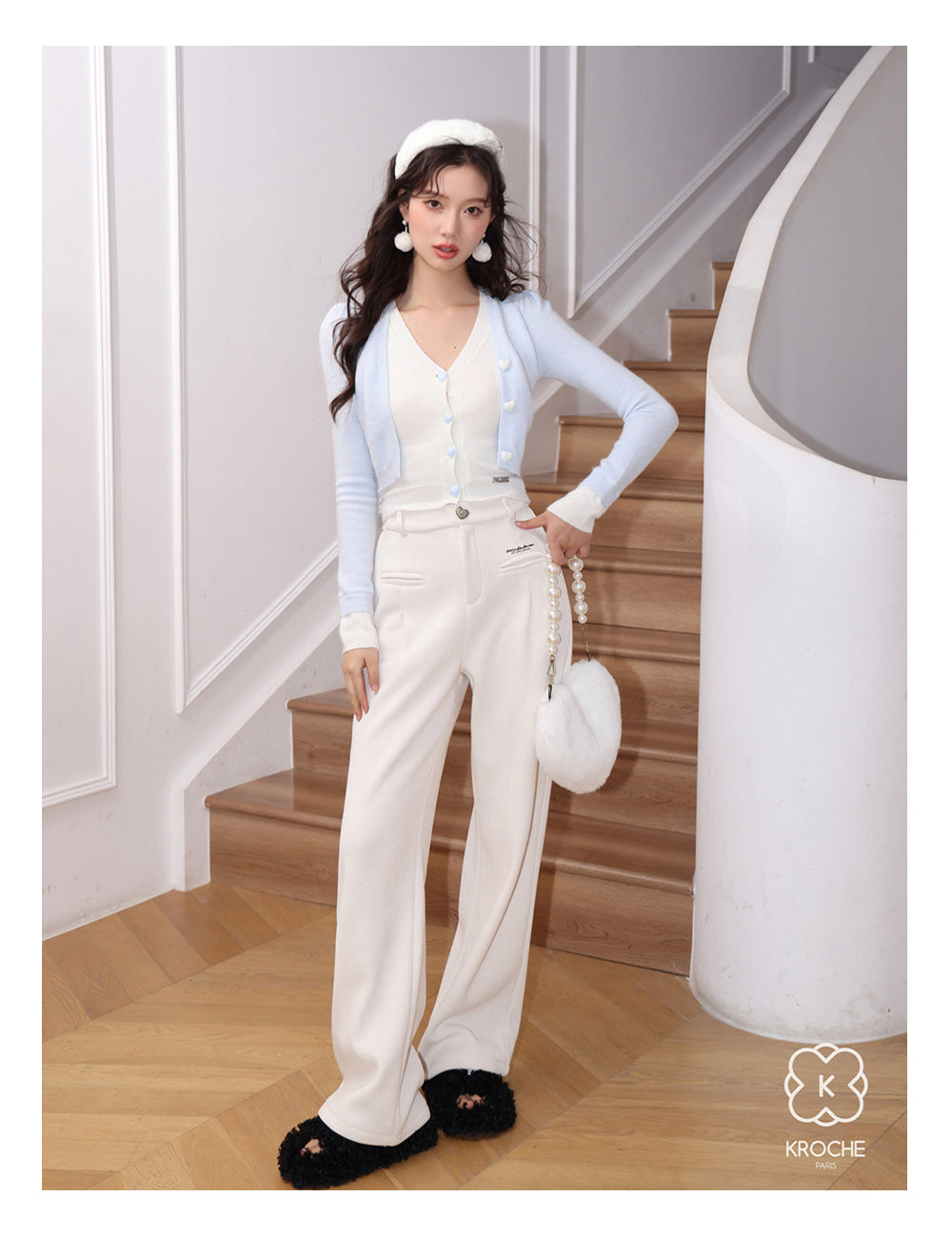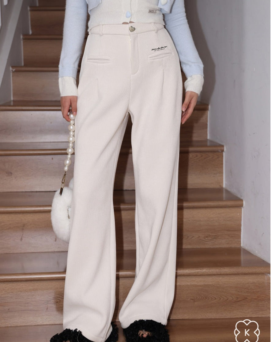 Kroche SS2305 刺绣灯芯绒高腰阔腿裤