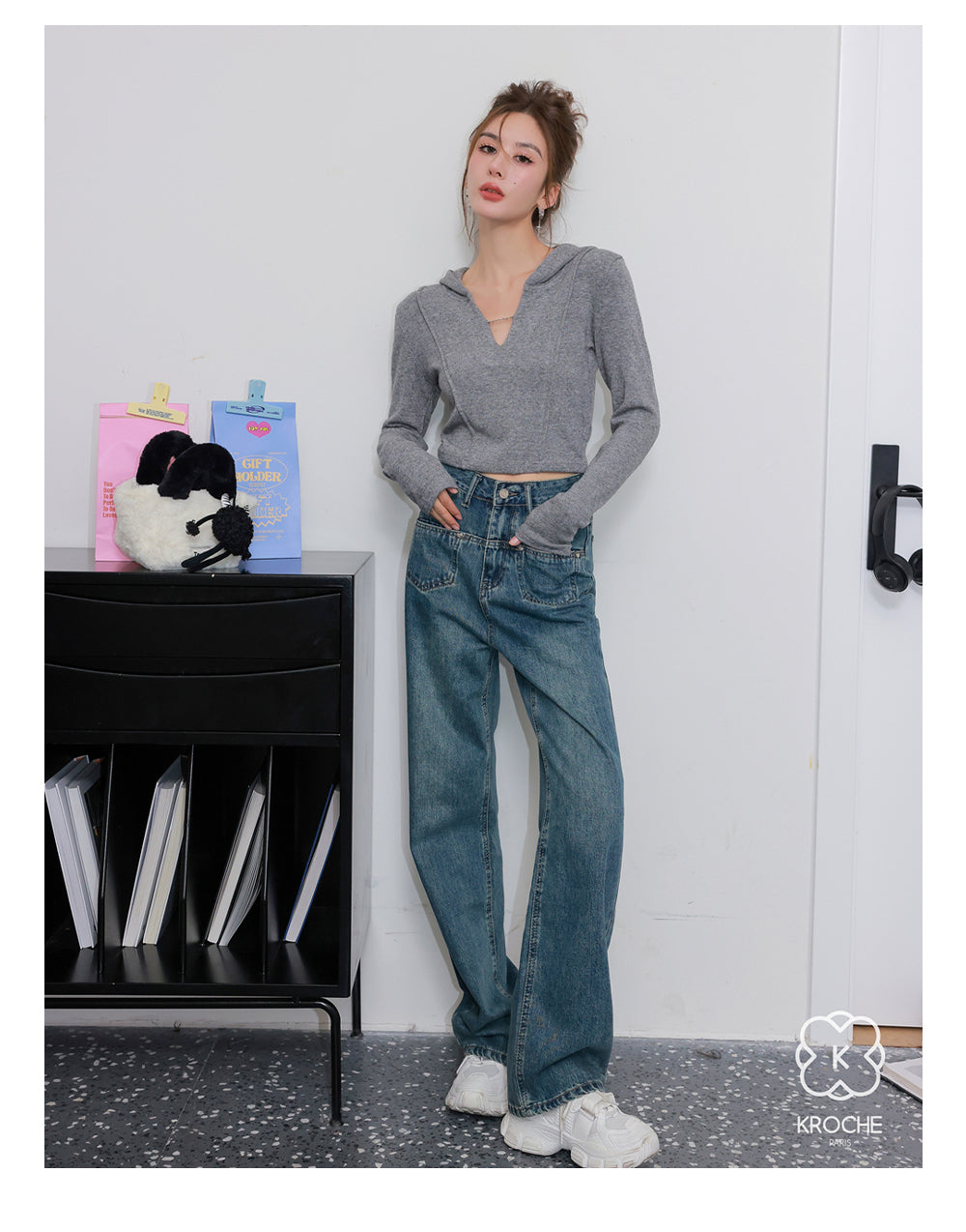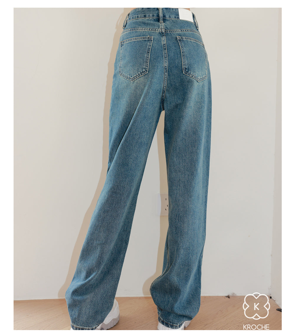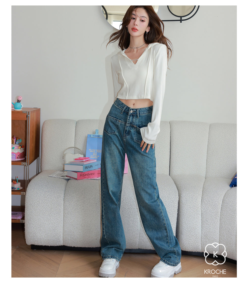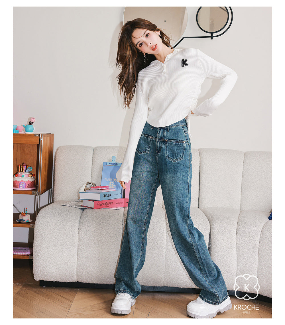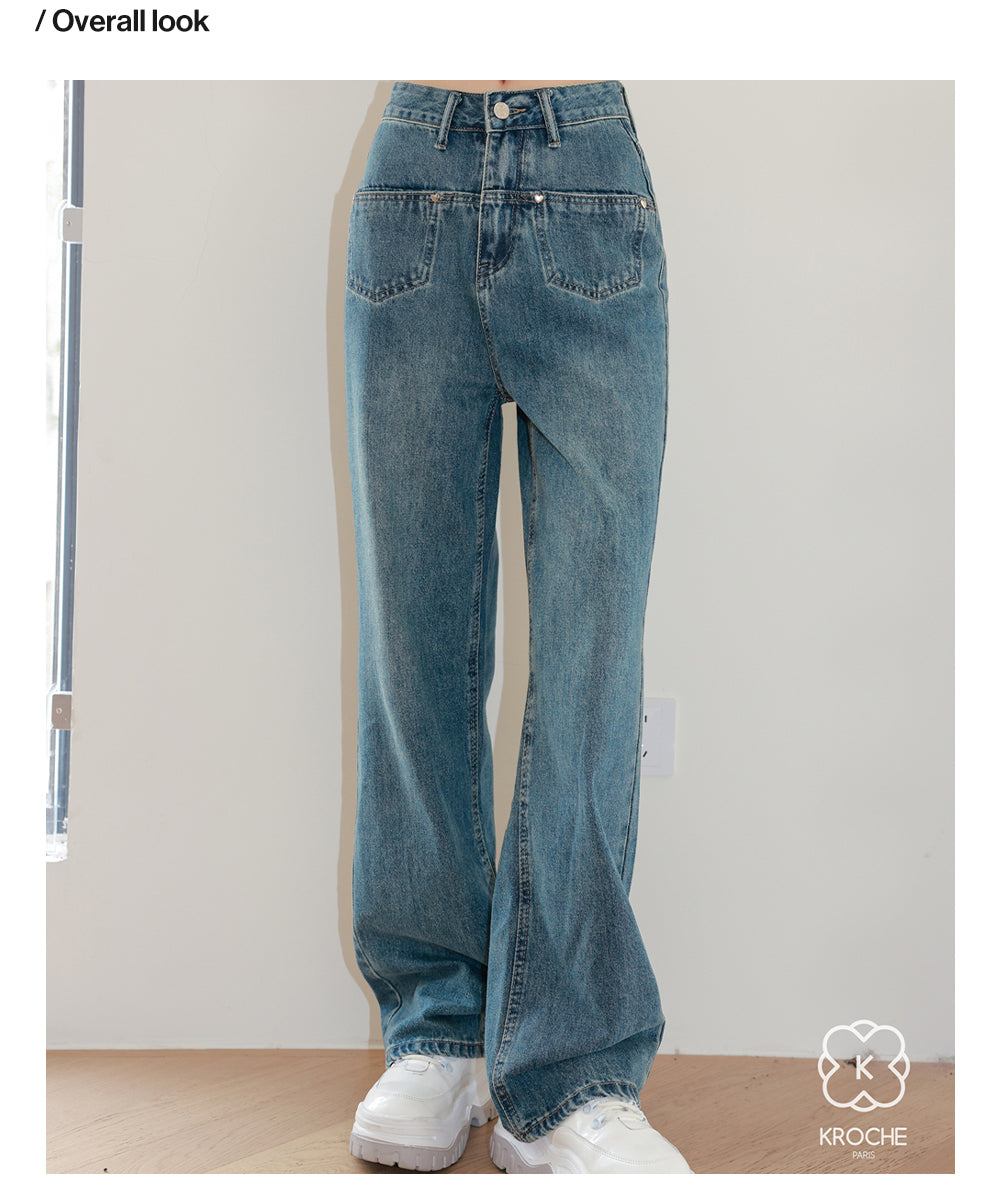 Kroche SS2306 高腰前袋盖式爱心铆钉牛仔裤