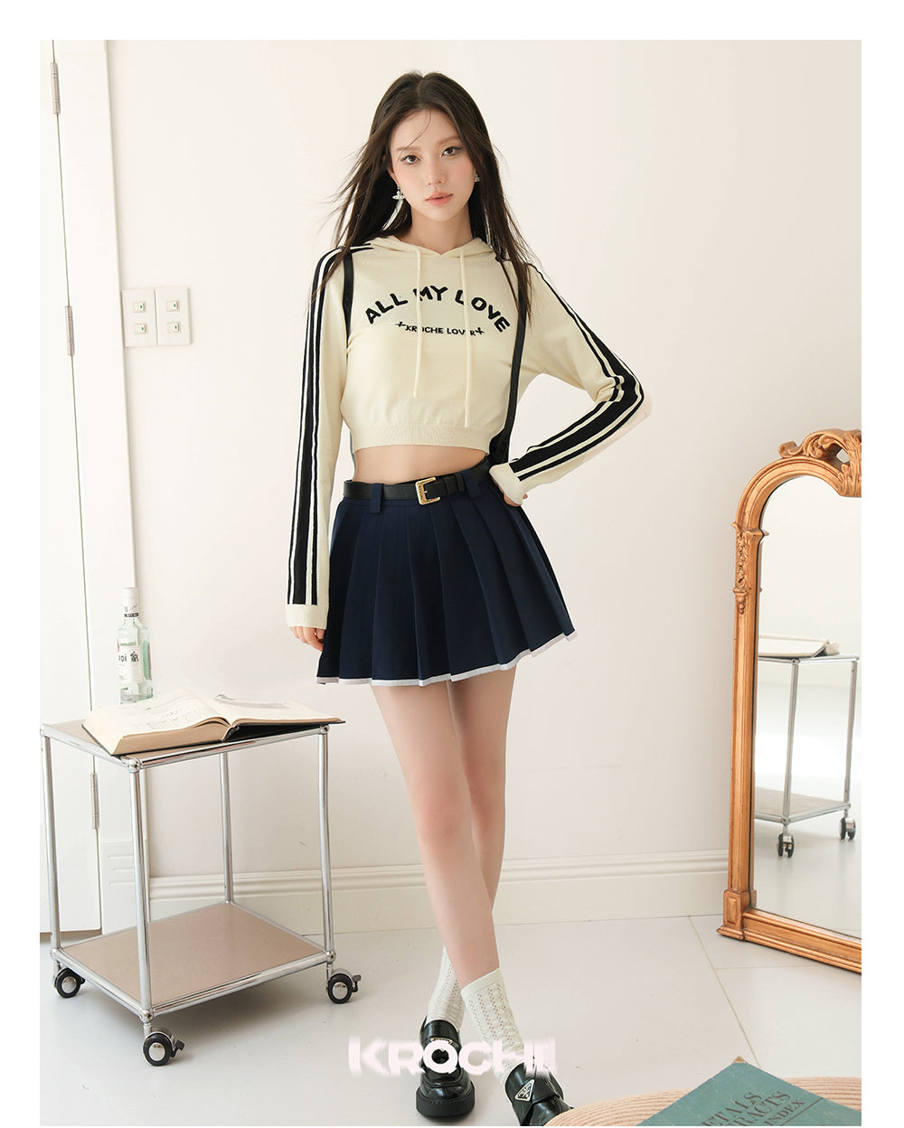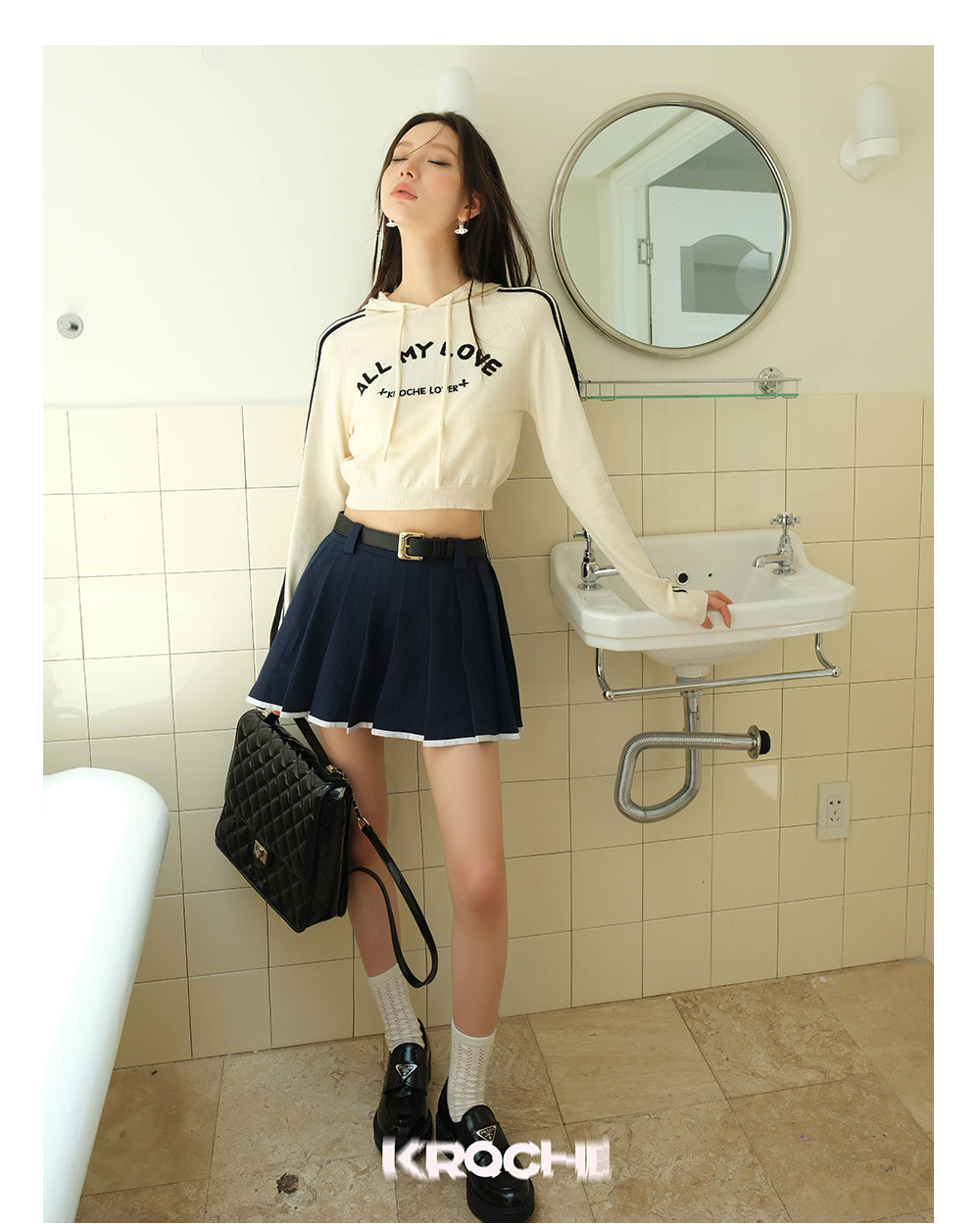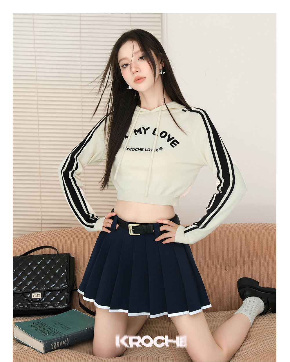 Kroche SS2309 休闲连帽短款长袖针织衫 杏
