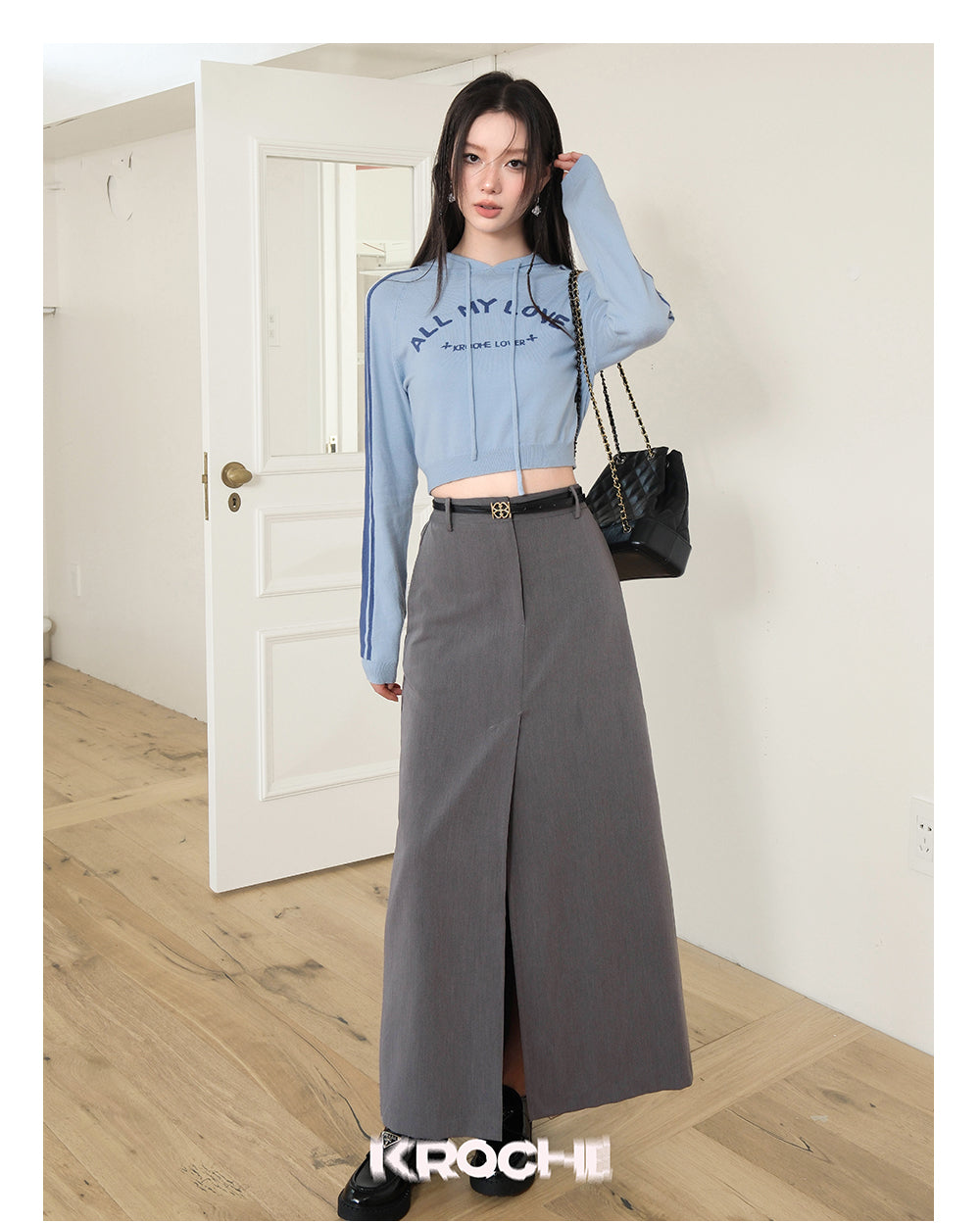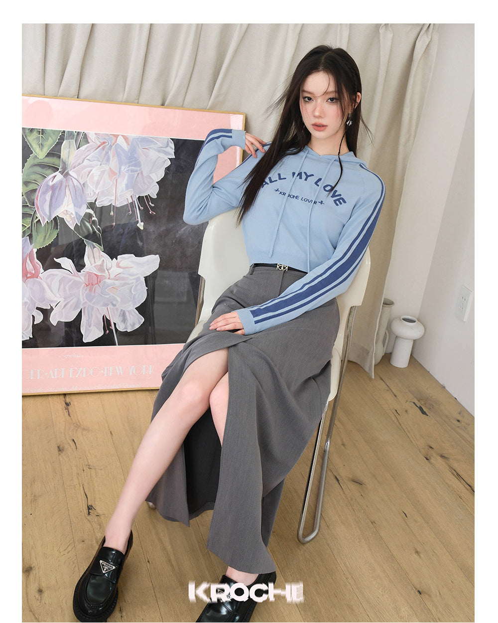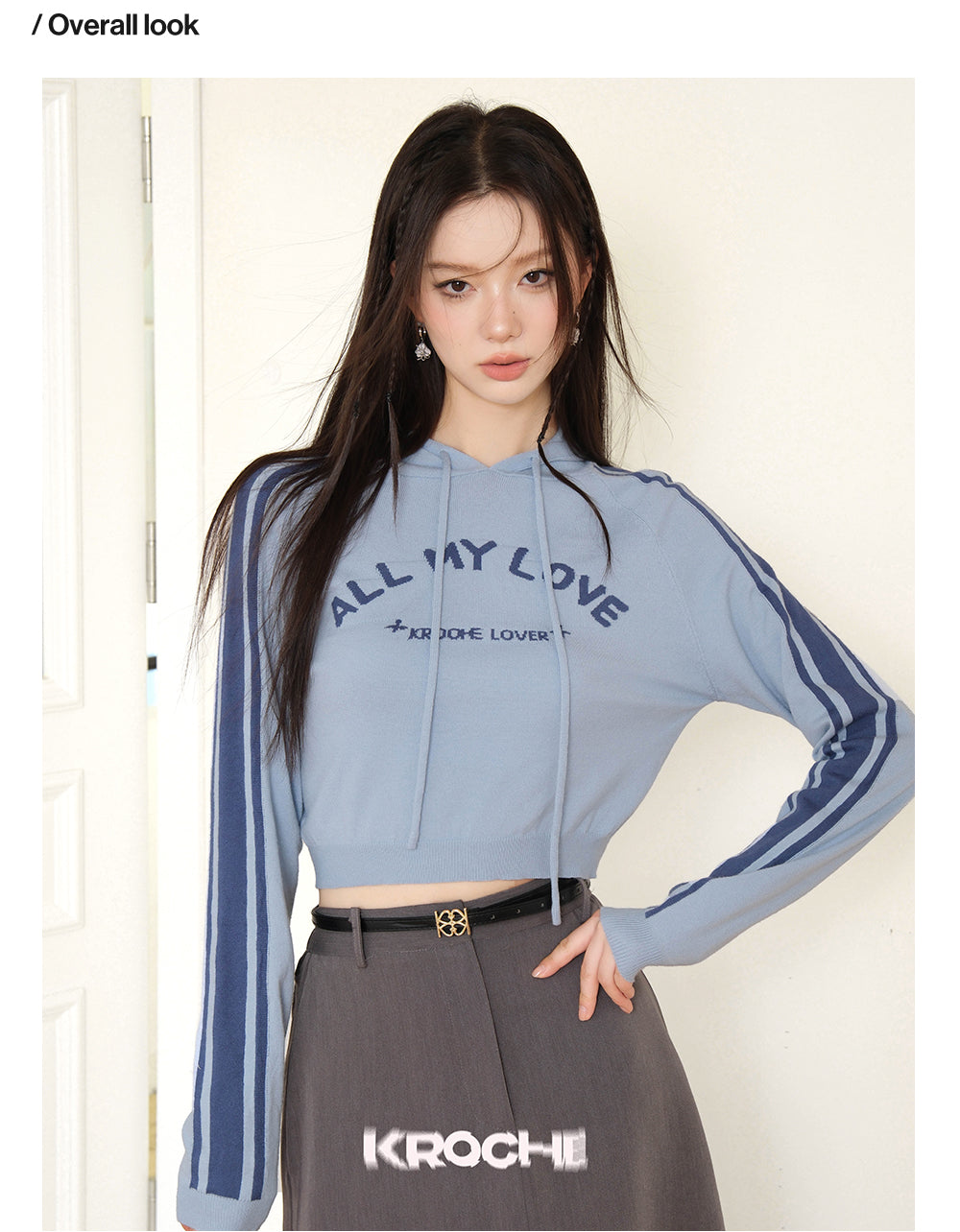 Kroche SS2309 休闲连帽短款长袖针织衫 蓝