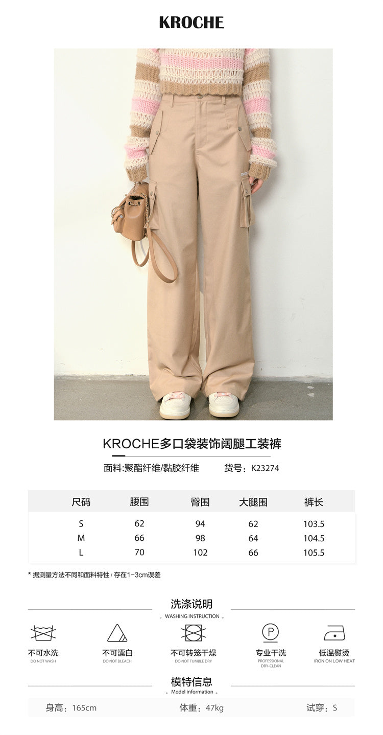 Kroche SS2309 多口袋复古宽松阔腿工装裤