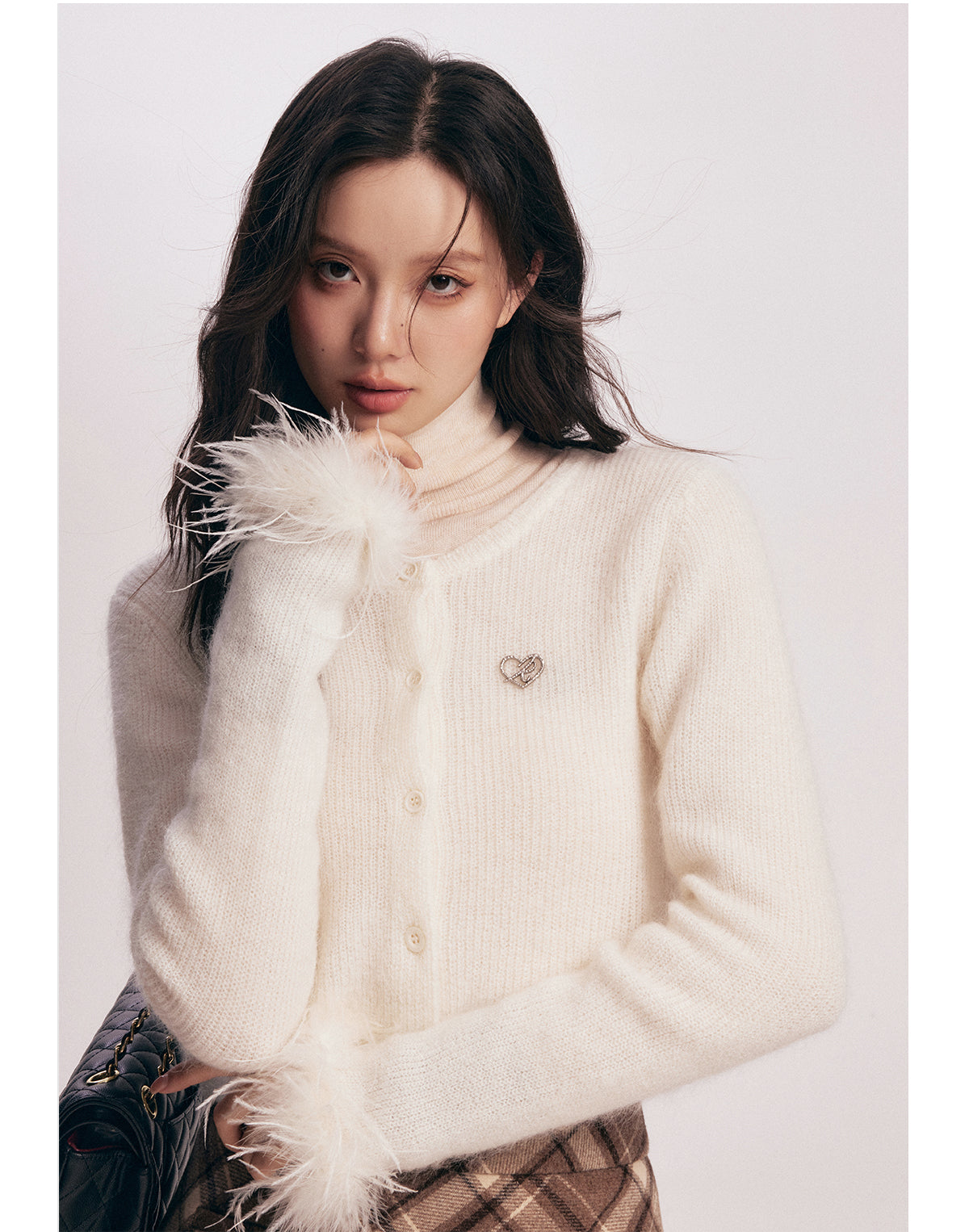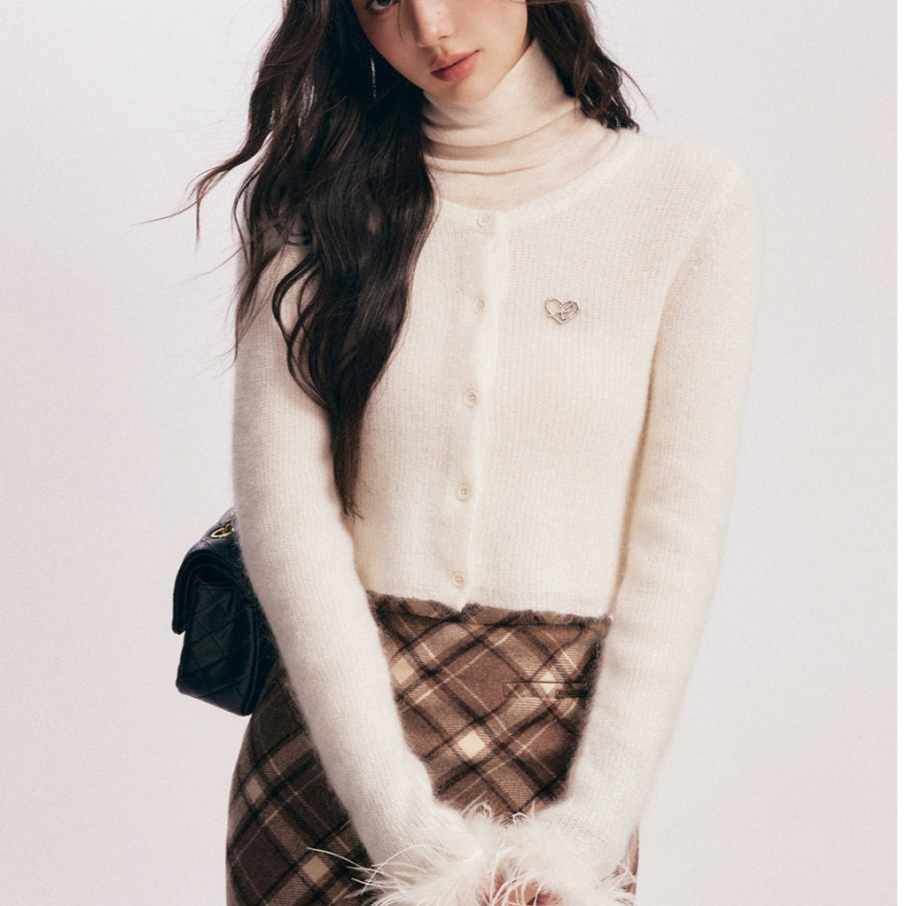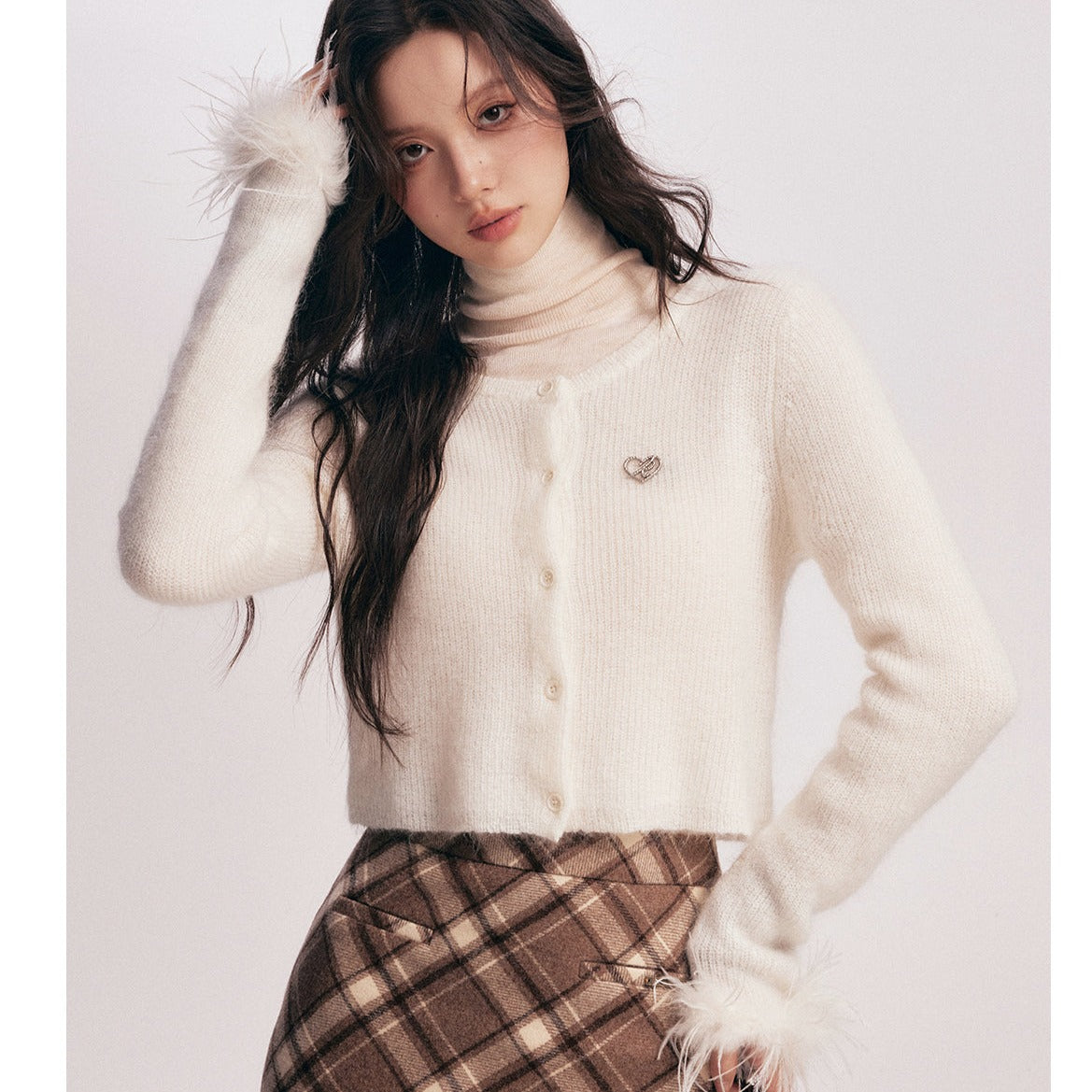 Kroche SS2312 马海毛圆领短款长袖针织衫 白